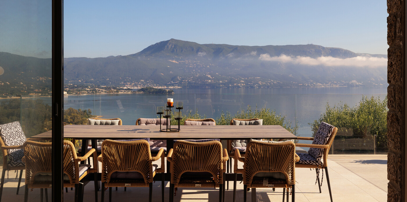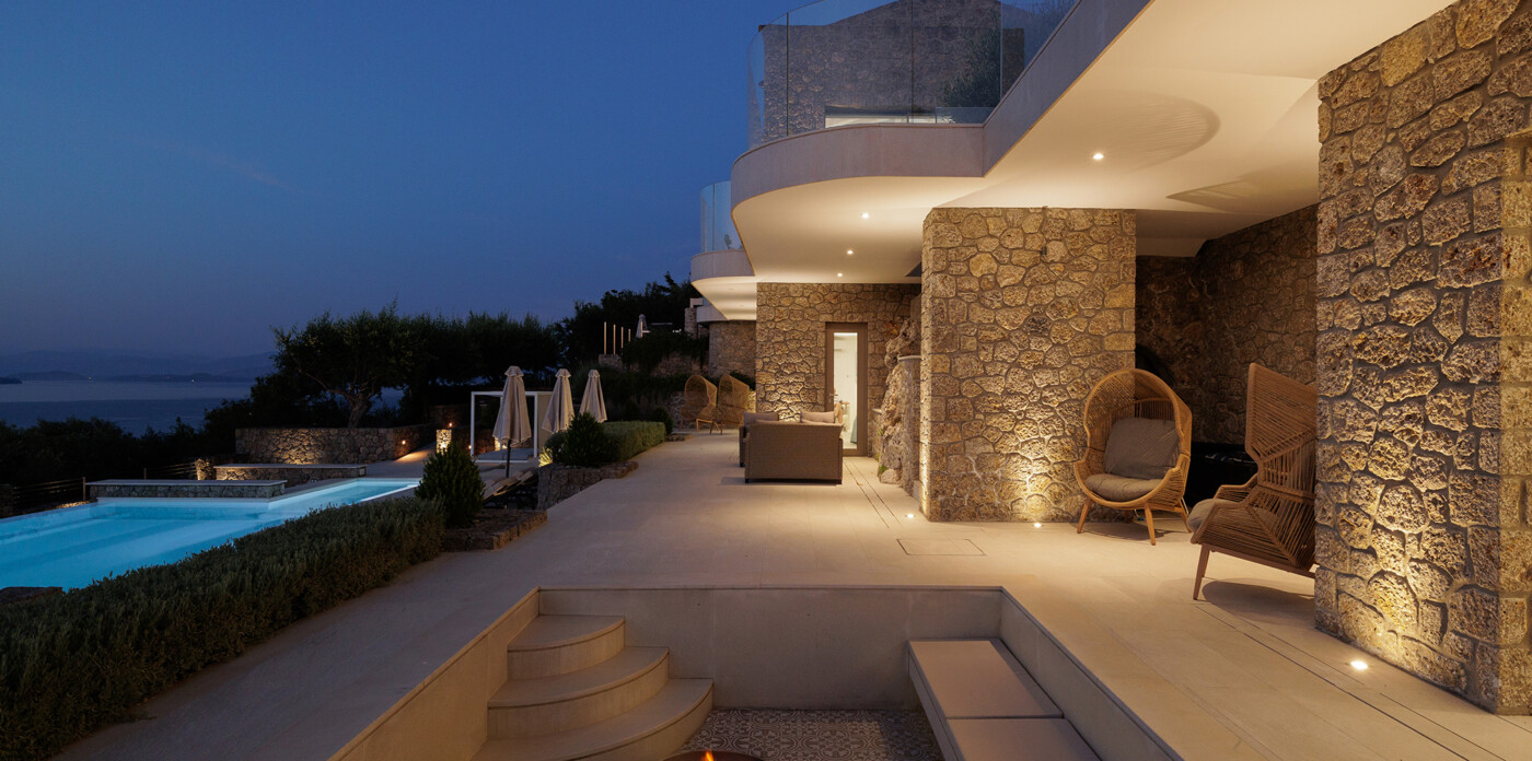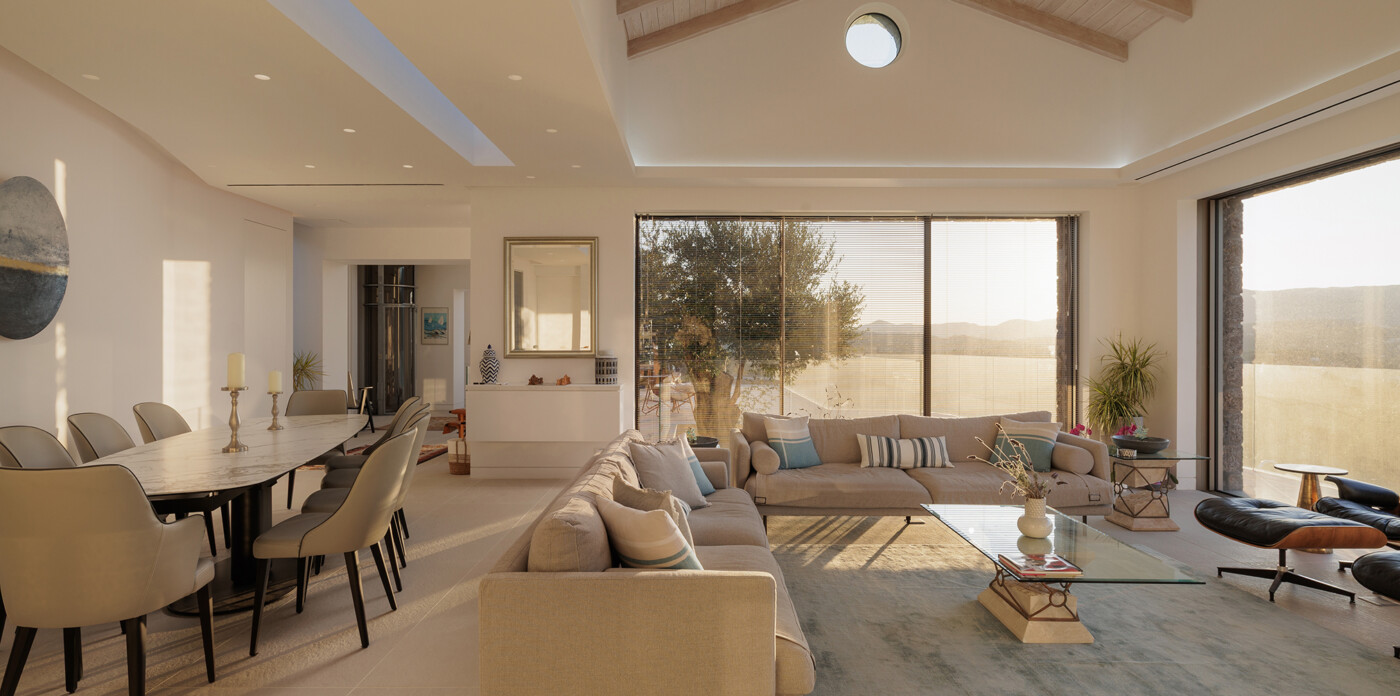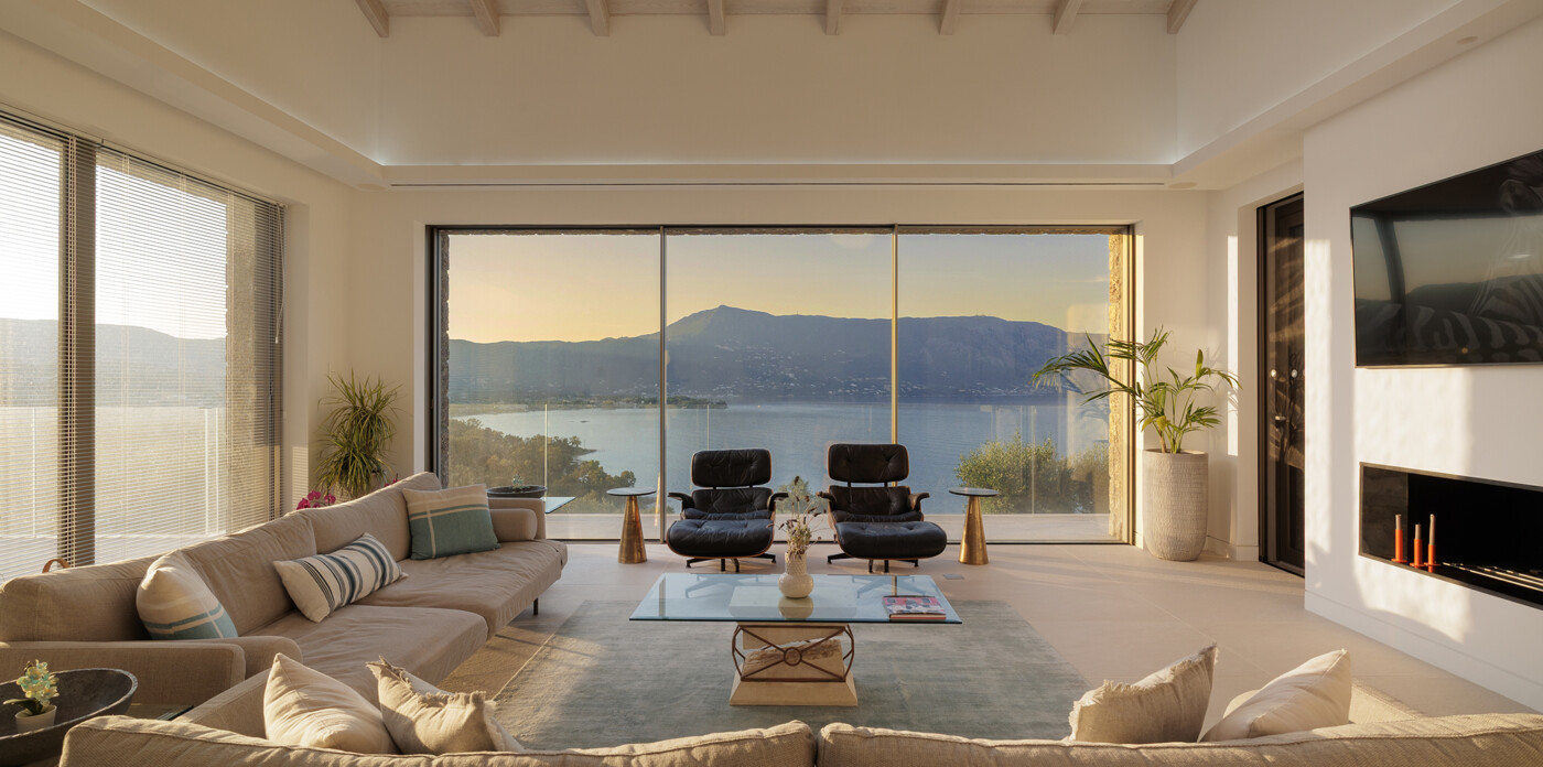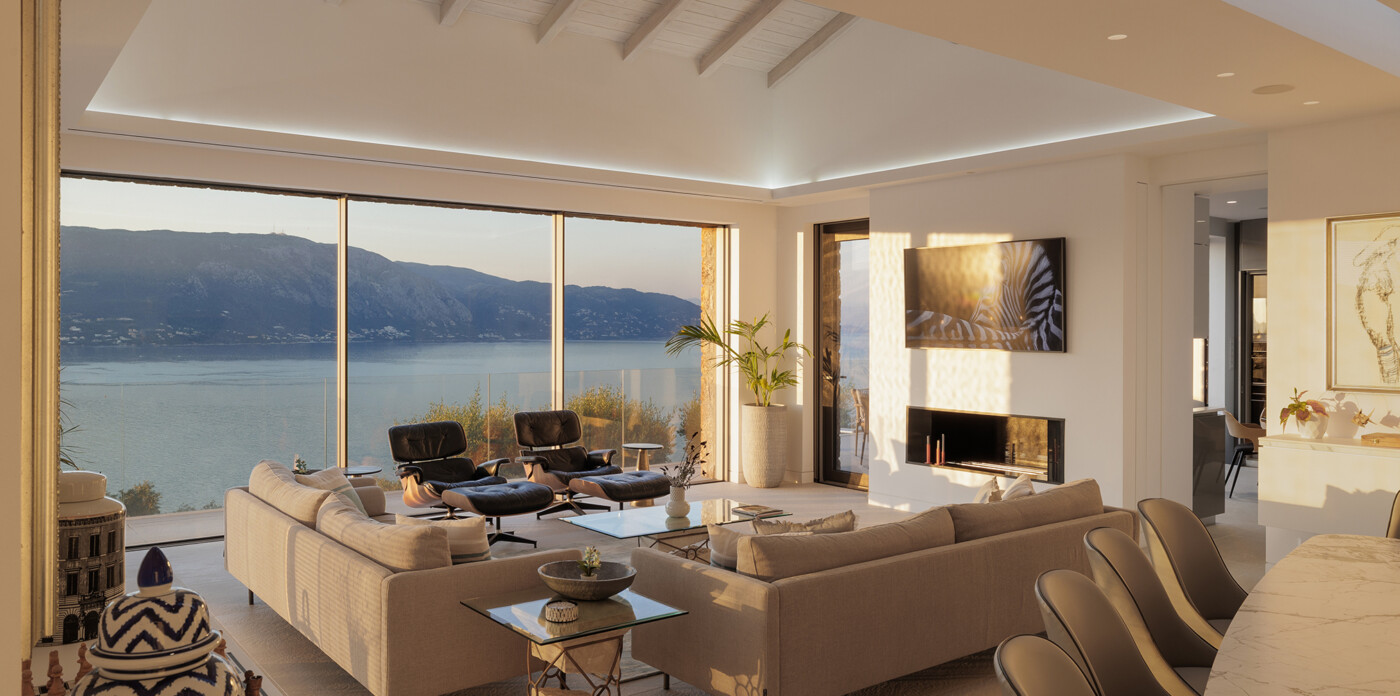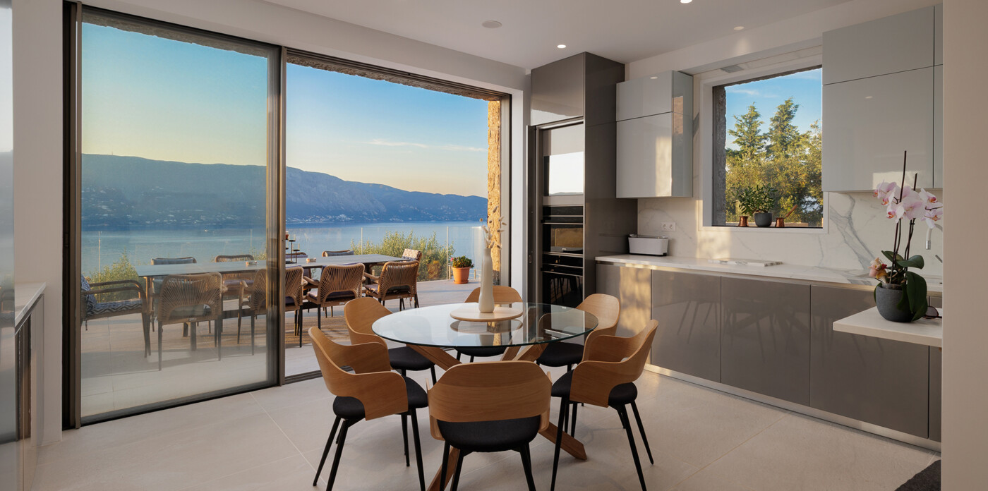 Designed to maximize natural light and capture the Ionian sea, expansive glass windows bring breathtaking panoramas into nearly every room.