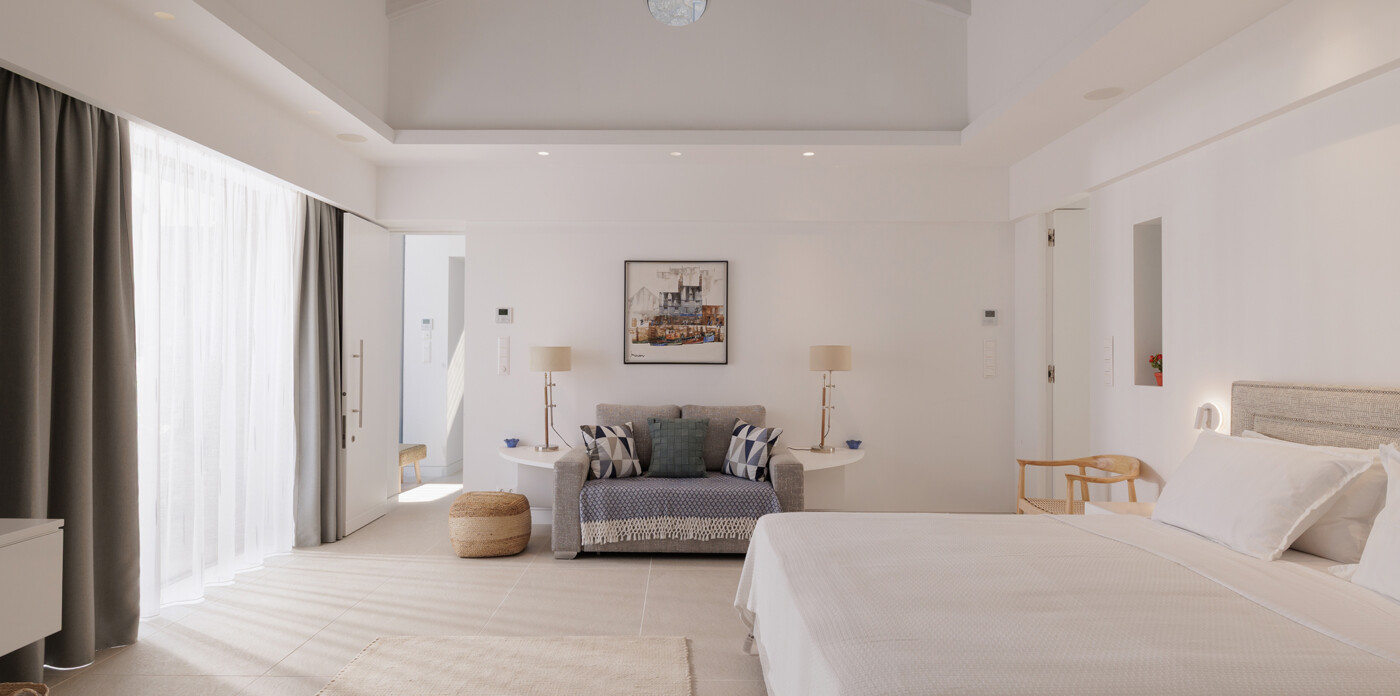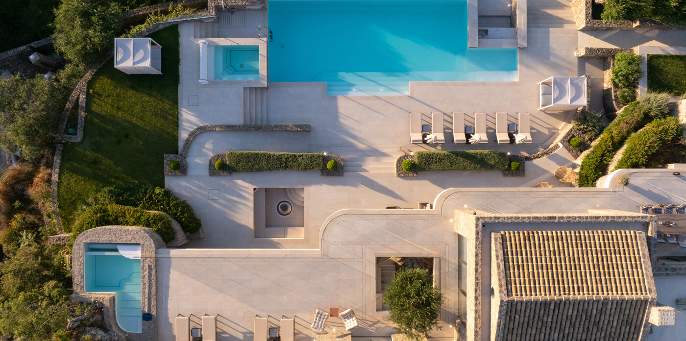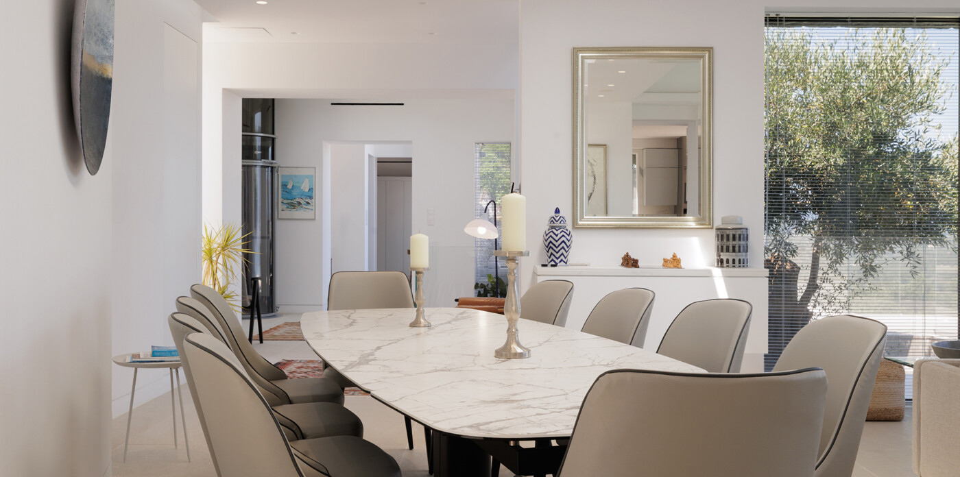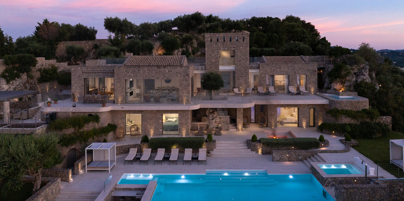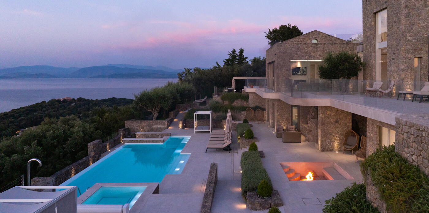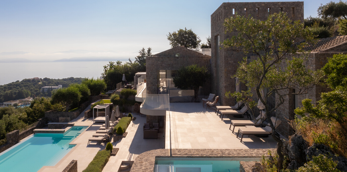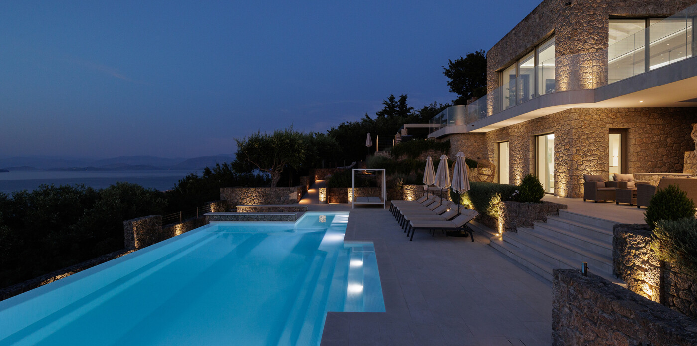 Designed to maximize natural light and capture the Ionian sea, expansive glass windows bring breathtaking panoramas into nearly every room.