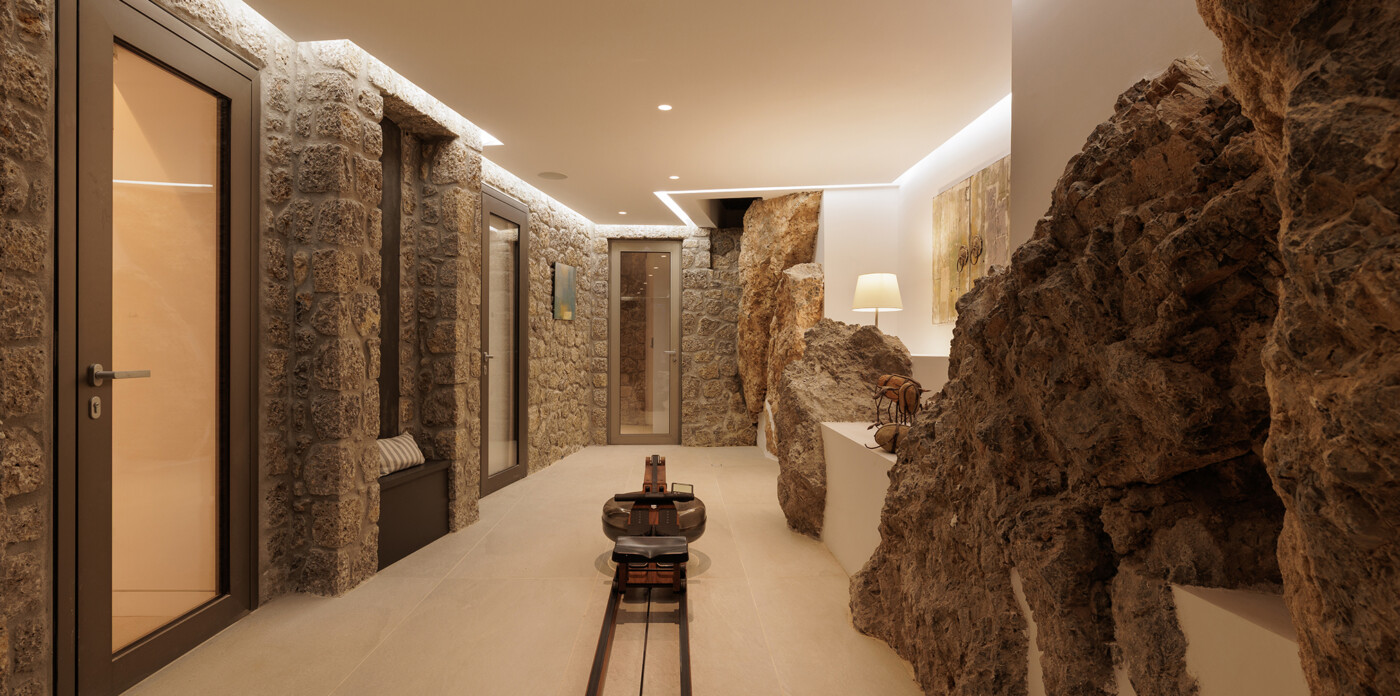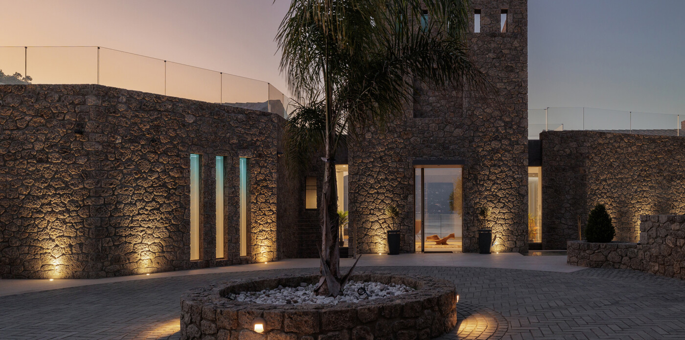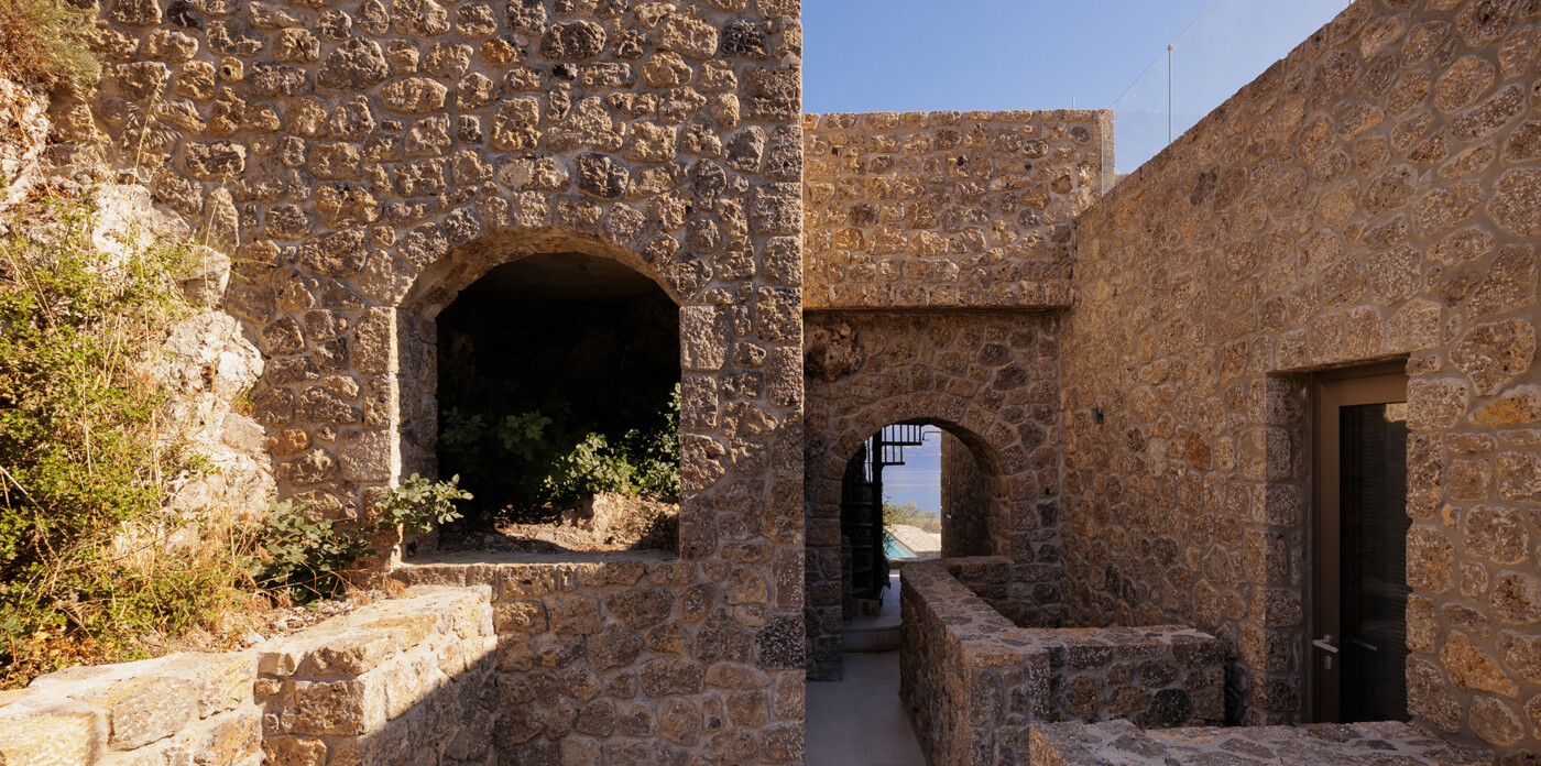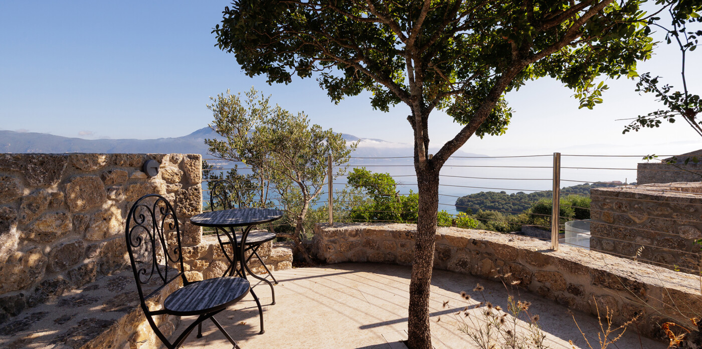 Discover a unique connection to nature with this stunning seafront villa, situated along the beautiful coastline of Kommeno. Designed with exceptional sensitivity to the nature of the surroundings, the Tower House integrates seamlessly into the rugged terrain; natural stone has been preserved and incorporated into the villa’s design, showcasing the architects’ deep respect for the land.