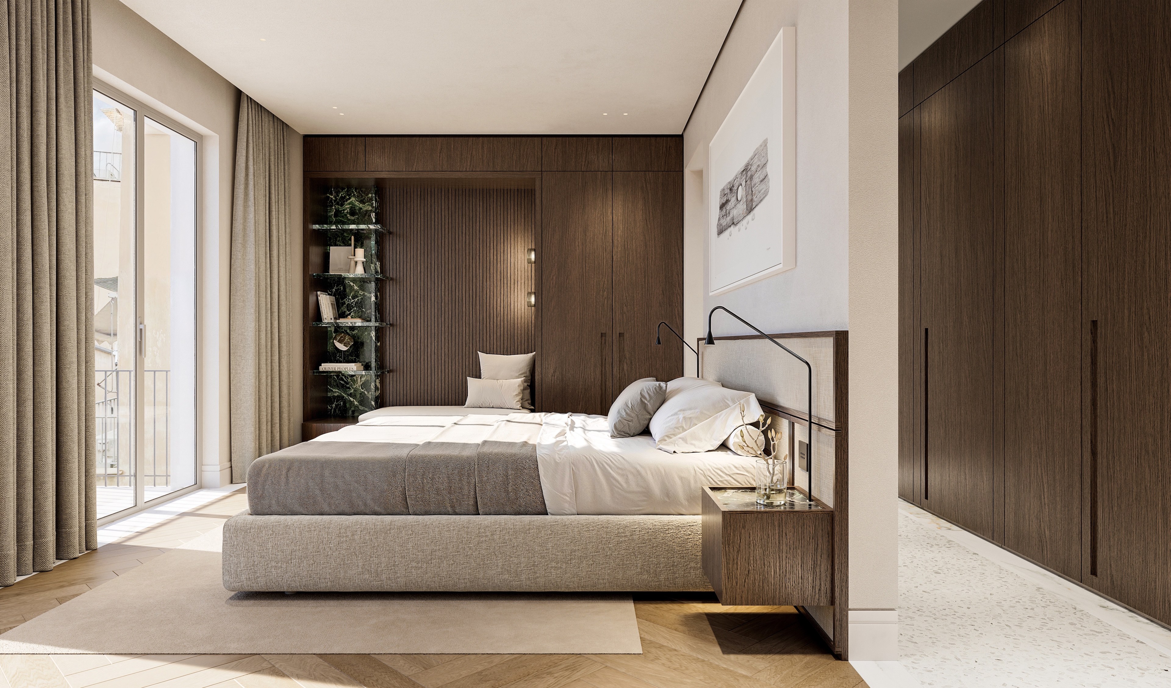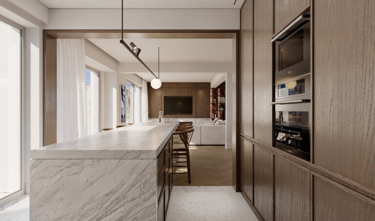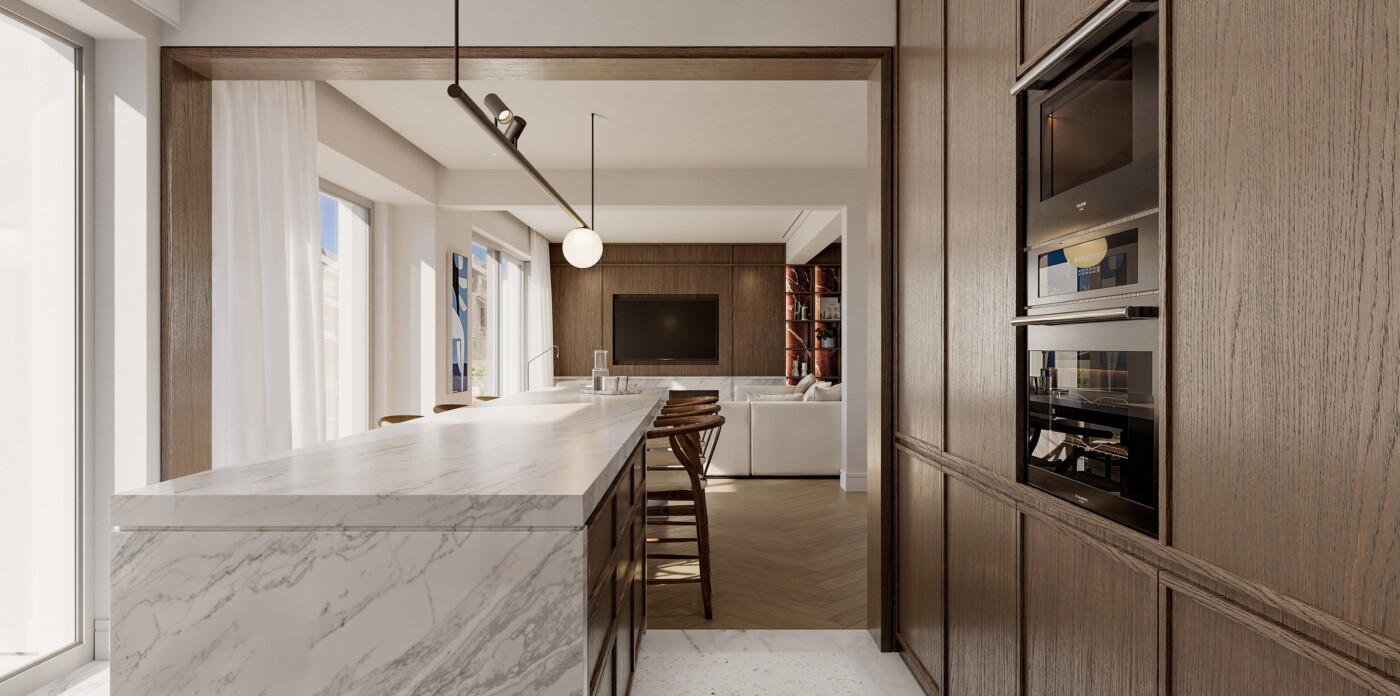 Currently undergoing a meticulous renovation to high standards, the apartment is being transformed to balance contemporary comfort with timeless design, with expected completion in June 2026. A welcoming entrance hall will lead into the main living areas, where the layout creates a sense of light, openness, and calm.