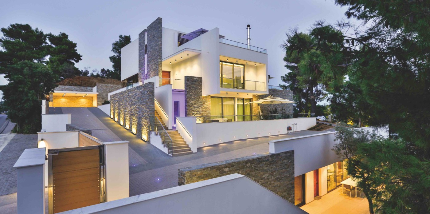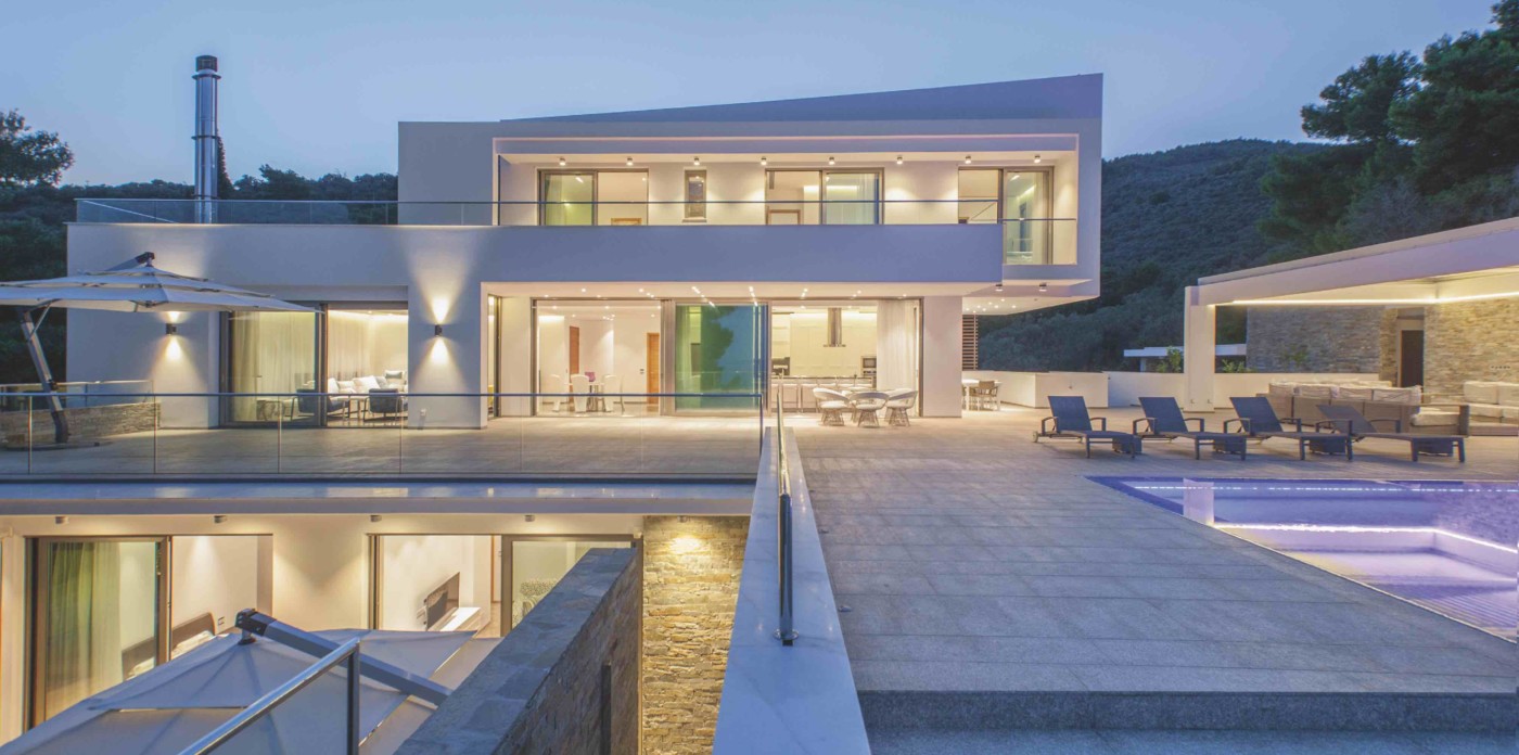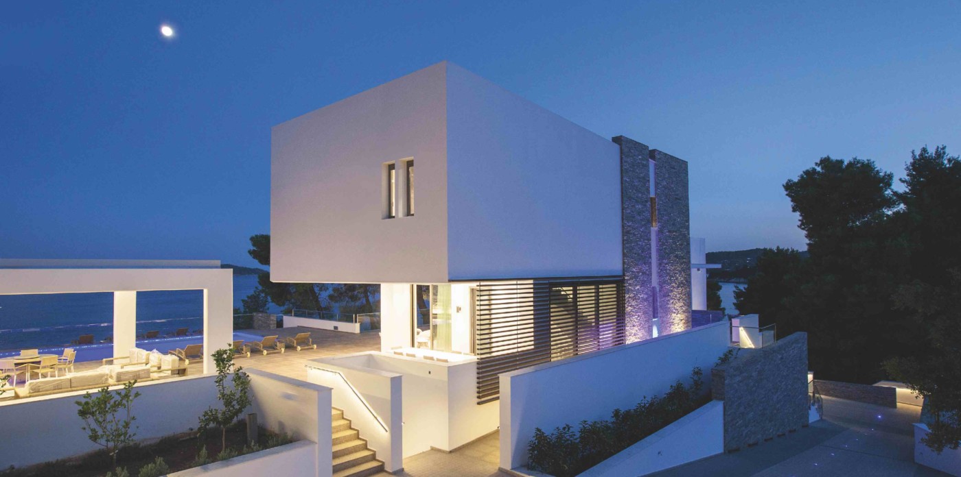 Its sleek minimalistic design along with its spacious interior and large terraces on all three levels adhere for its renowned reputation on the island.