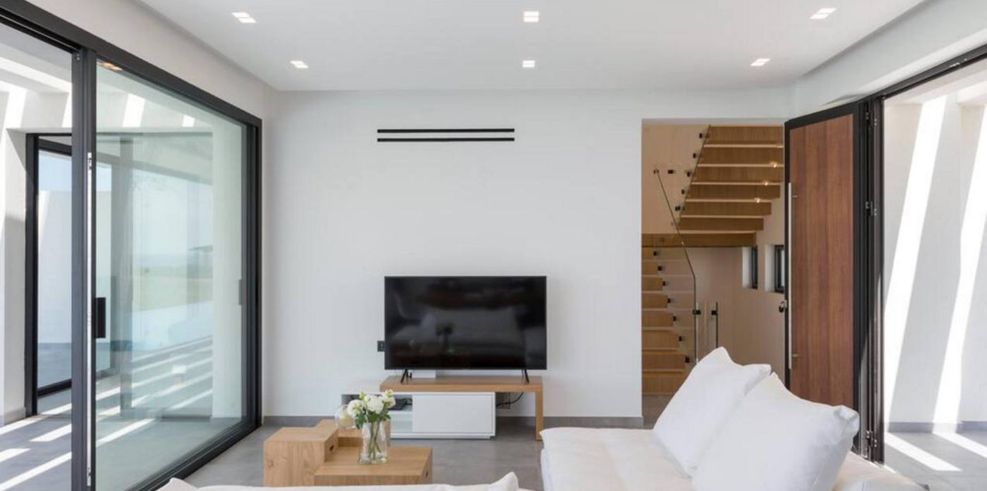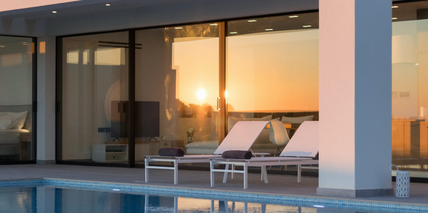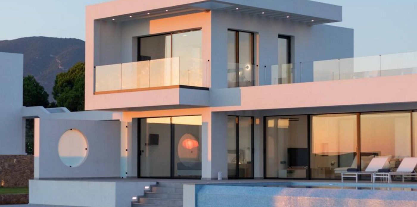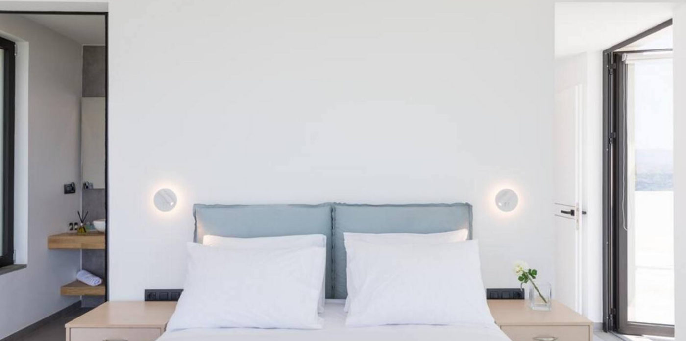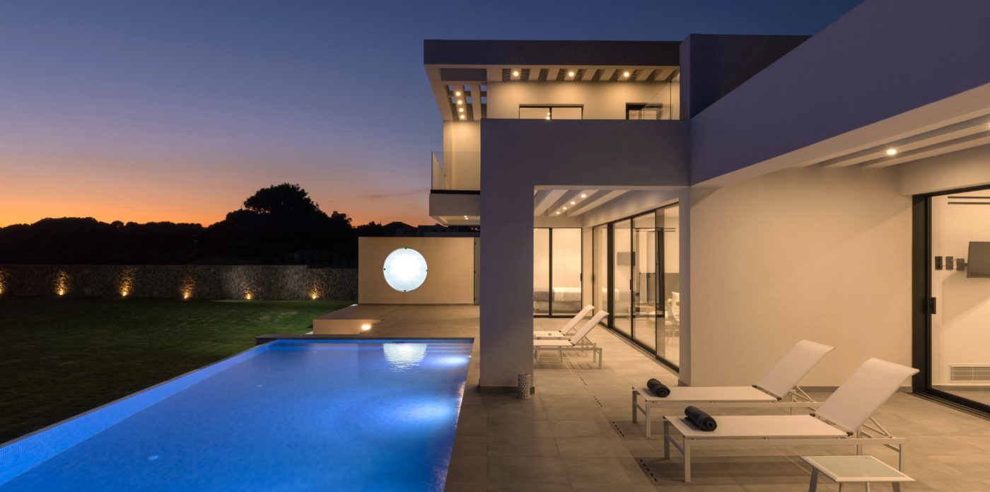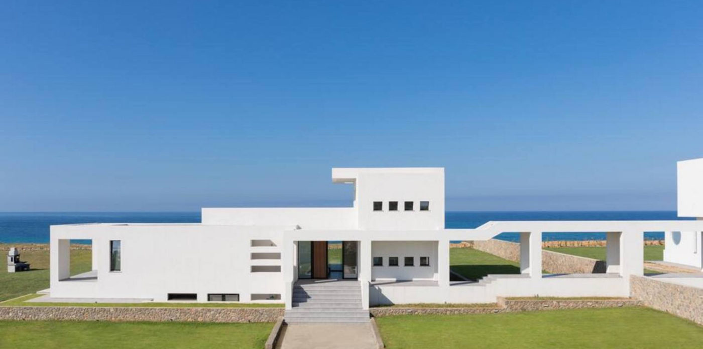 Contemporary style villa with incredible, unobstructed sea views. Located on the seafront, in the a private and peaceful area in Halikounas with direct access to the beach, and very close to the lake of Halikounas. It offers contemporary and functional architecture and design with a careful selection of high-quality materials and finishes.