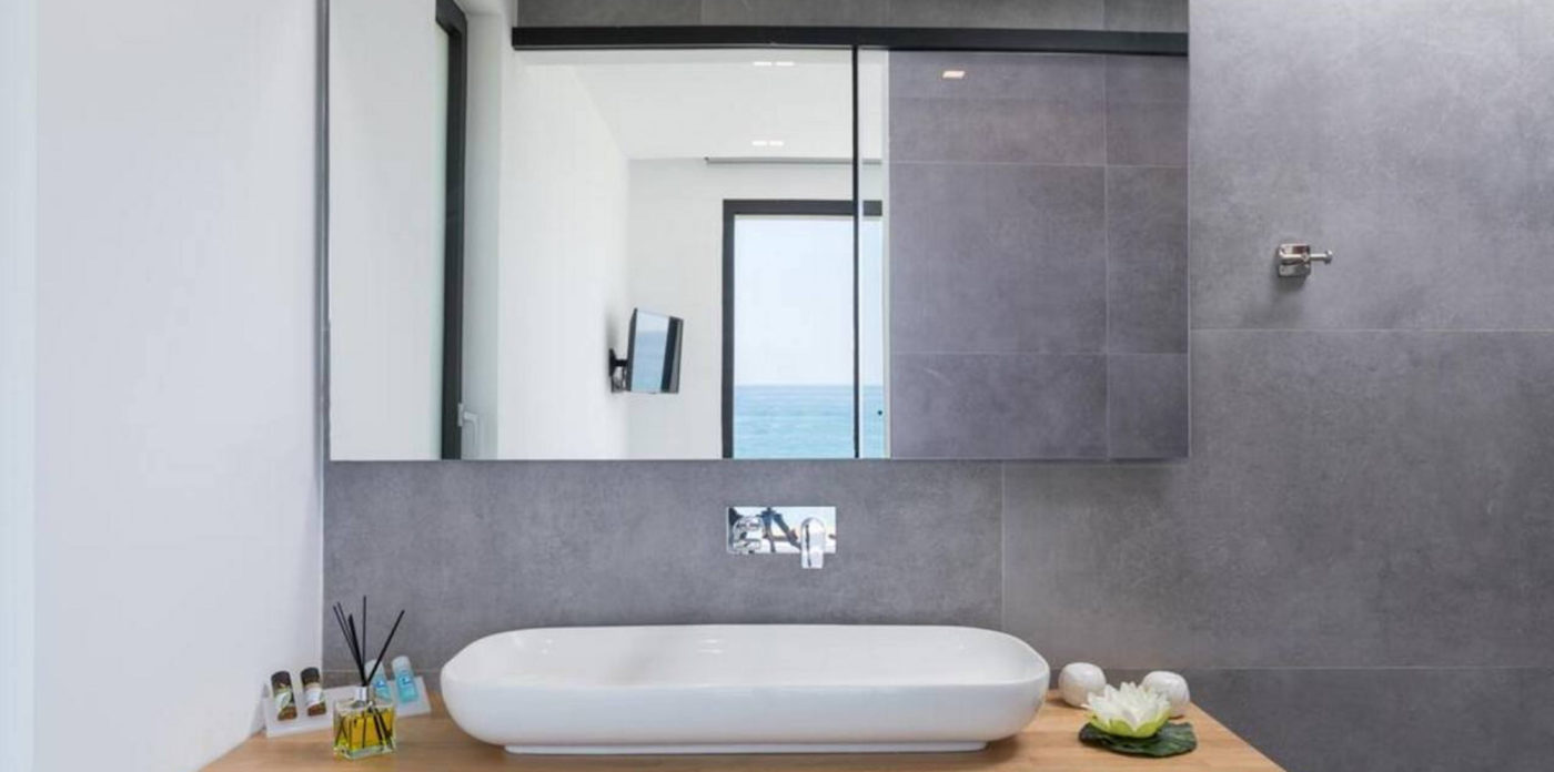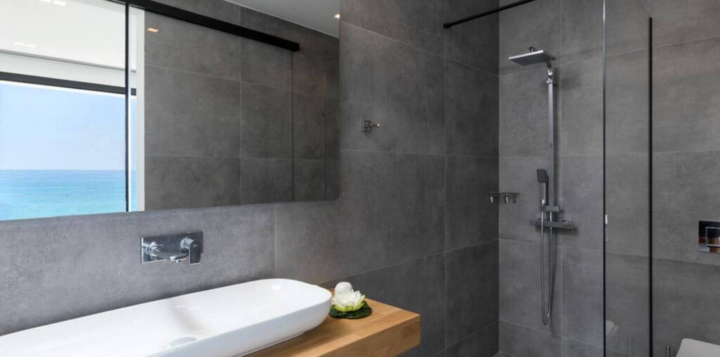 It consists of 4 bedrooms and 4 bathrooms as well as a spacious and elegant living room with huge windows allowing the natural light to flow through all spaces. On this level there is a beautiful garden and a large infinity pool overlooking the sea. The kitchen is integrated into the living room and perfectly equipped with state-of-the-art appliances. On this same level there are 2 en-suite bedrooms and with large windows that both enjoy clean and clear ocean panoramas and allow direct access to the pool.