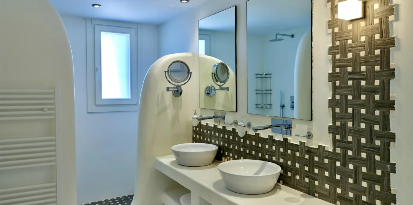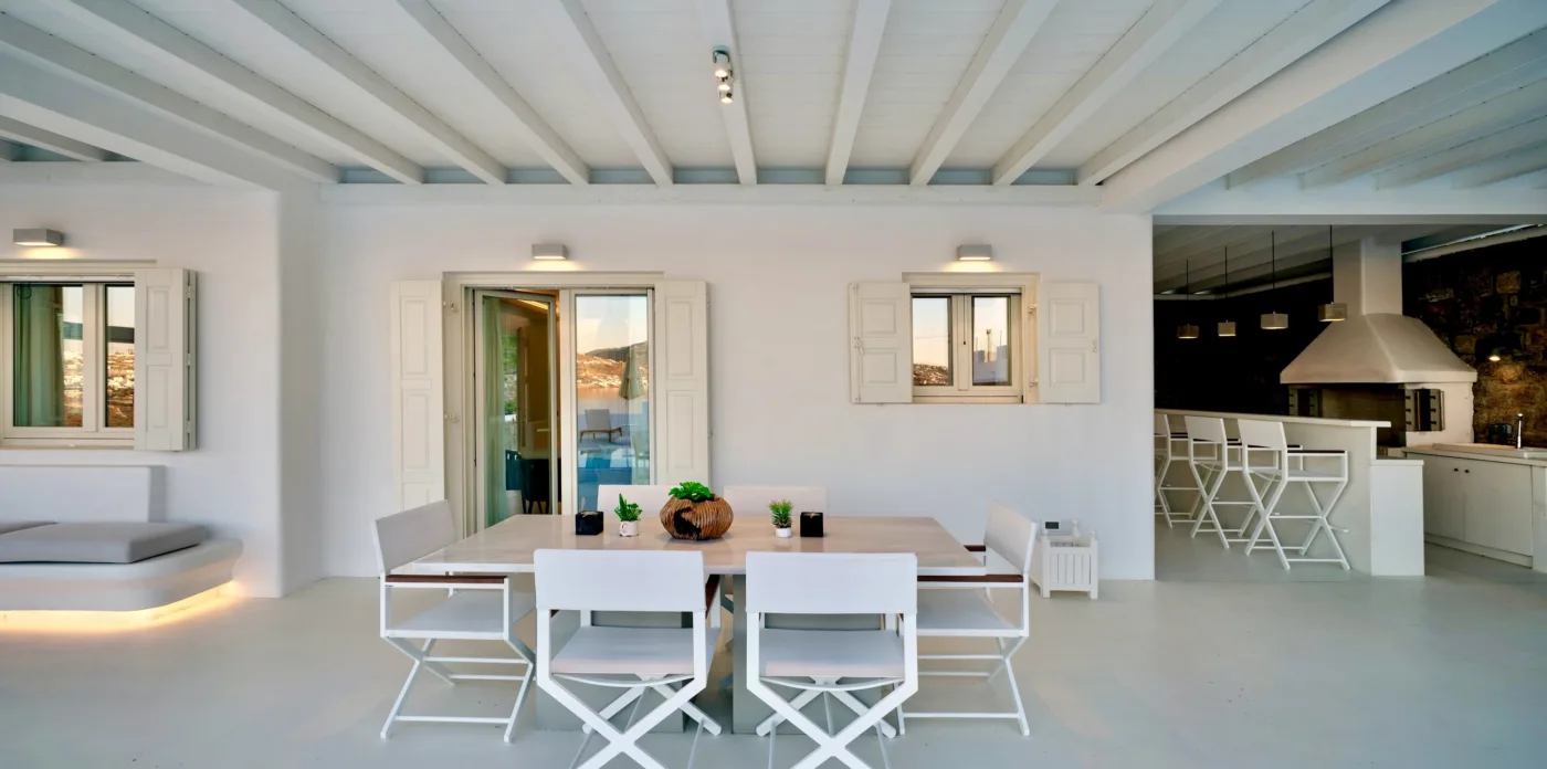 For those who love outdoor living, they are in for a treat. Each villa has two independent terraces, with the upper-level terrace being an extension of the living room. Boasting a private swimming pool, a bar, and a BBQ corner, Virtuoso creates the perfect space for savoring the beautiful sunsets and soaking up the sun while admiring the magnificent views of the Aegean Sea.