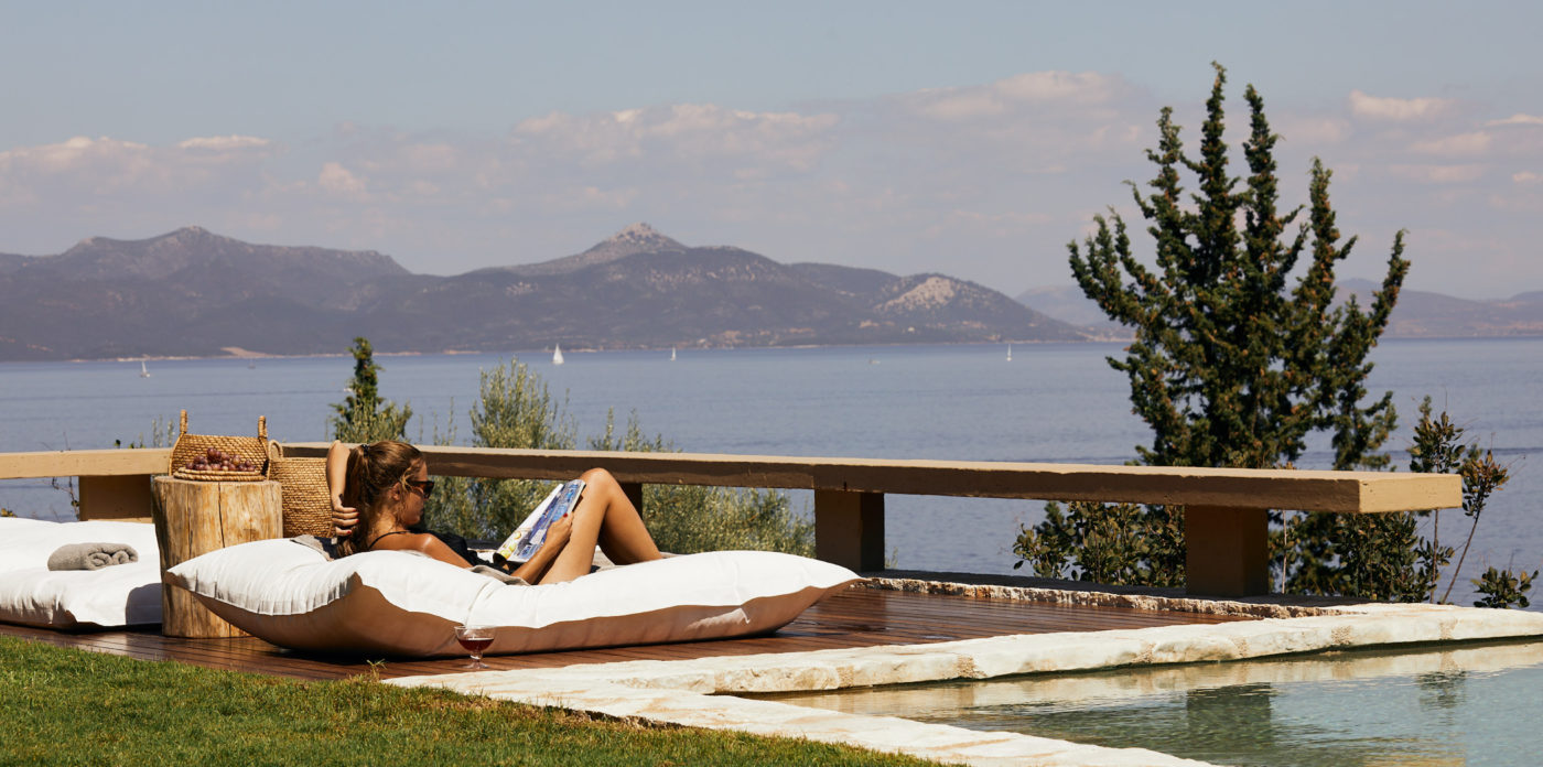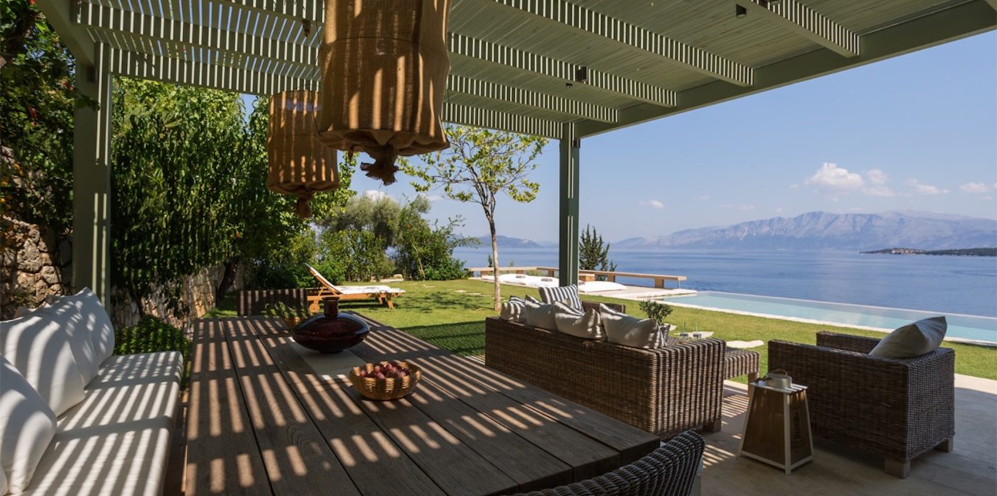 Its beautiful exterior areas and garden are shaded by mature trees, glorious wildflowers and fragrant herbs ensuring that guests have privacy whilst enjoying the superb views across the delightful satellite islands of Scorpios and Madouri, and beyond to the sister island of Lefkada. The views from here are panoramic and so breathtaking that you just want to sit amongst the beauty, around the pool and garden to relax and unwind.