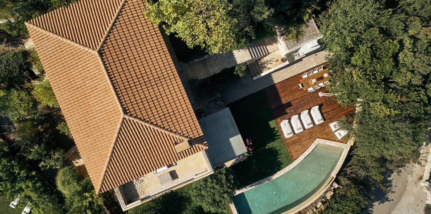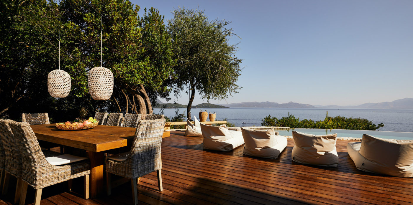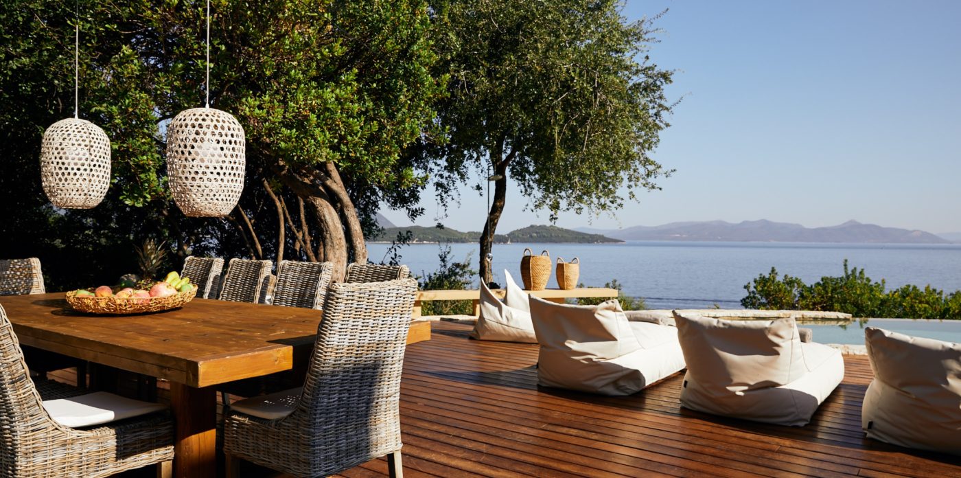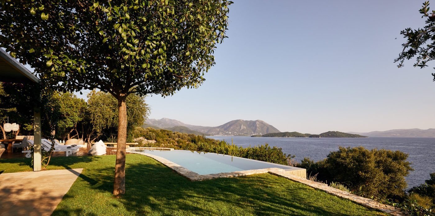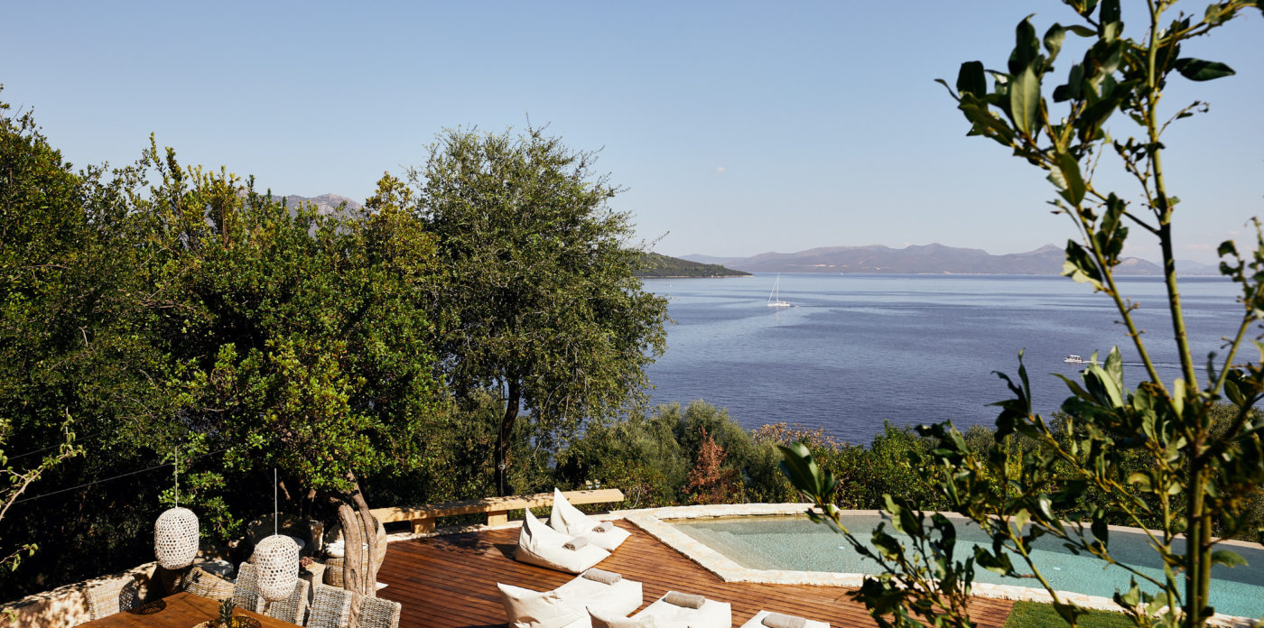 Adette is situated on the North-West of Meganisi, a breathtaking island of the Ionian Sea, located 4 nautical miles southeast of Lefkada ( the largest island of nearby Scorpios, Thilia, Kythros and more. ) Its location, scenery and natural beauty of the area could not be more majestic. Set on a fabulous verdant plot with astonishing views to the Ionian sea and amidst lush vegetation, the villa is harmoniously integrated into the environment, combining traditional local architecture with innovative modern style.