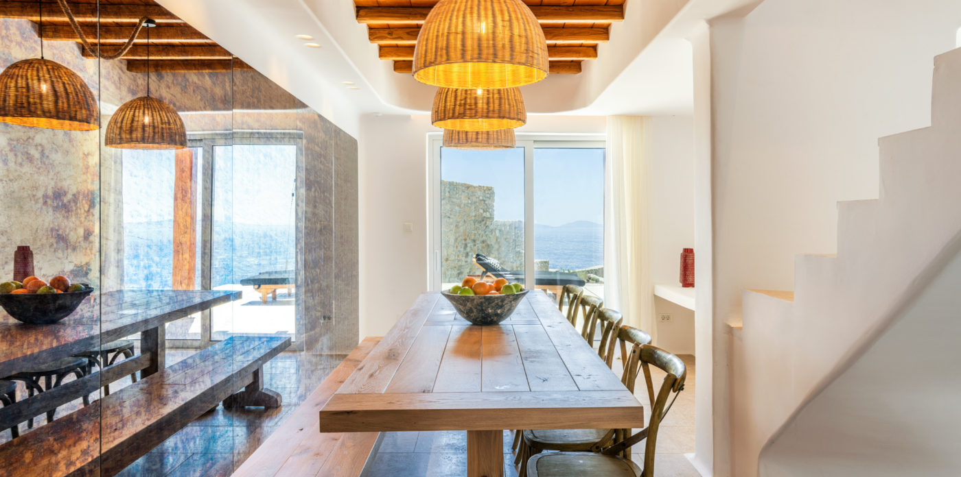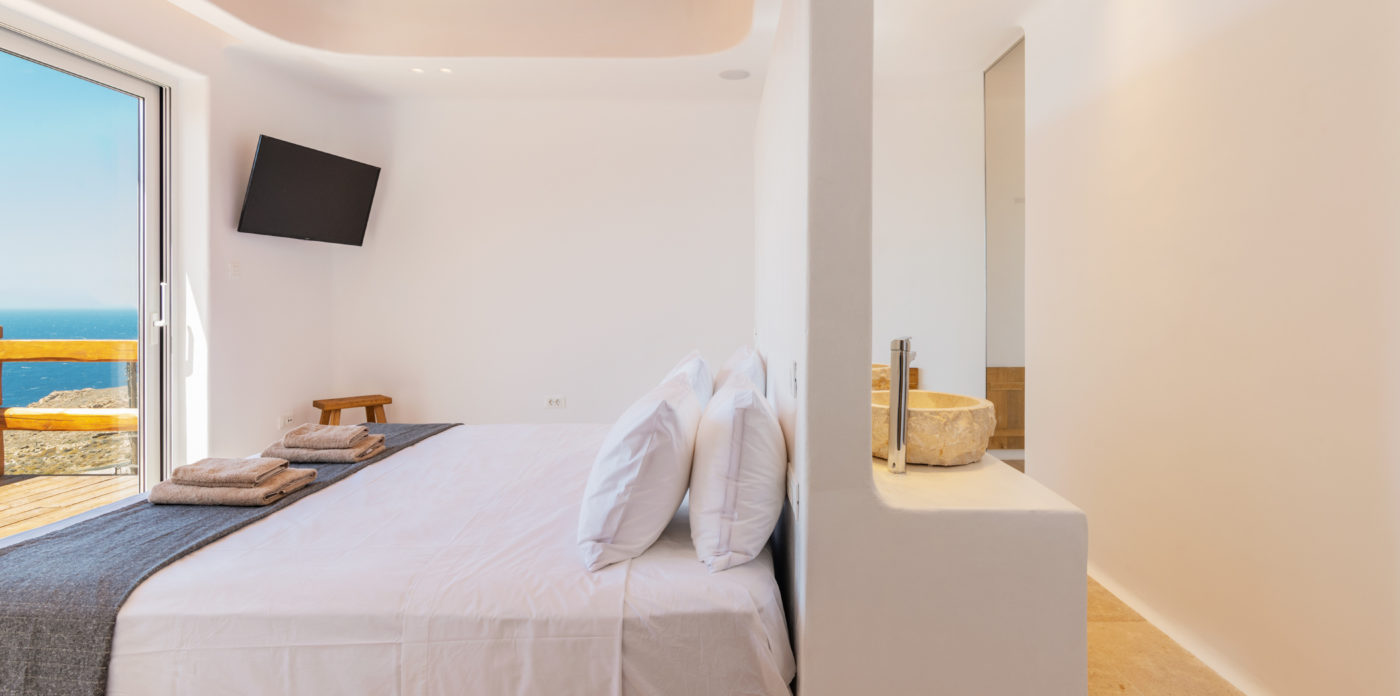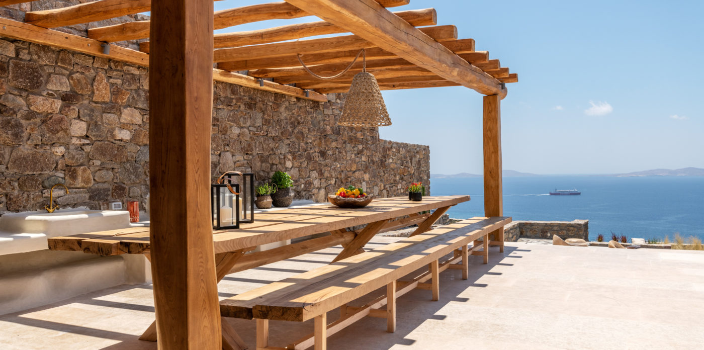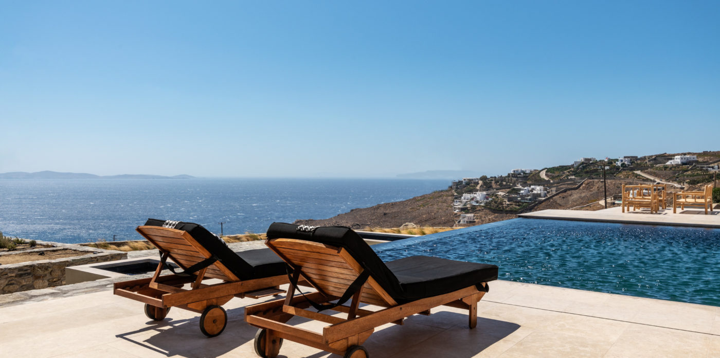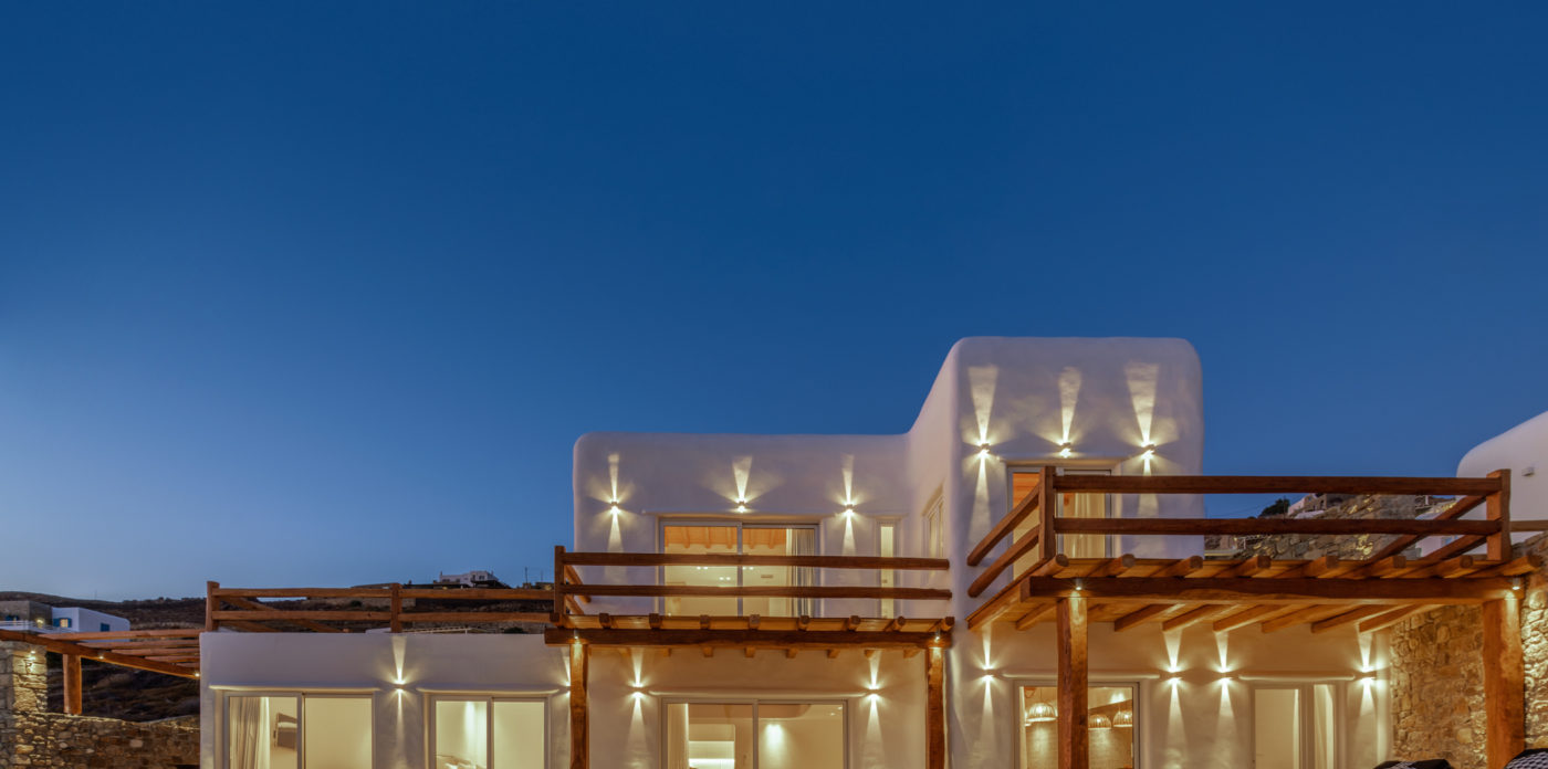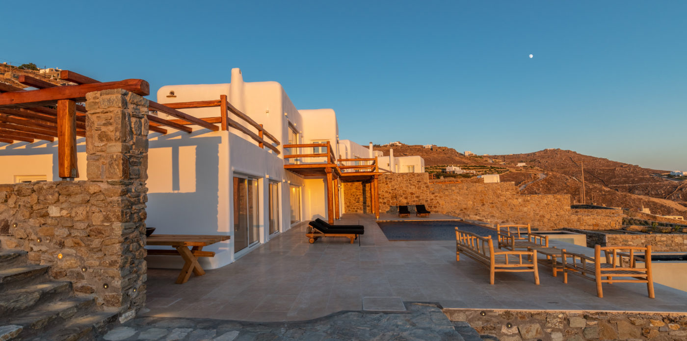 Ainia is a brand new villa situated on the hill above Houlakia bay, offering views of the Aegean Sea and amazing sunset. This spectacular vacation rental is conveniently located 5 minute drive from the island’s town center and just 800m from Agios Stefanos, the nearest beach.