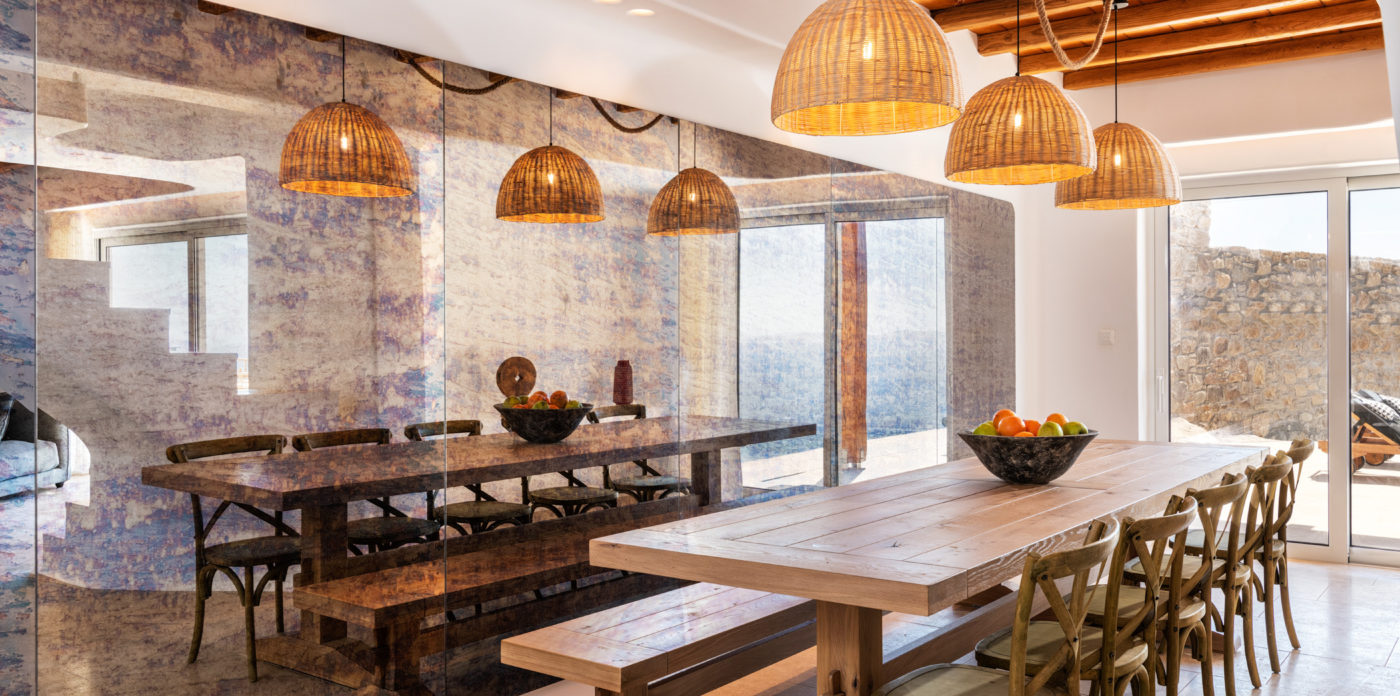 Its architecture has a distinct character of traditional Cycladic and minimalist chic, offering a 52-square meter infinity swimming pool surrounded by Egyptian marble paved terrace. Some of its highlights are the 22-square meter Jacuzzi, the underground Hammam (steam room) featuring a cave like experience and the 70- square meter fire pit and seating area where everyone can enjoy the sunset and views of the Aegean Sea, over a fire.The pool/jacuzzi area, offers sunbeds, shower, pergola, built-in couches and a dining table. Ainia can also host private functions upon request.