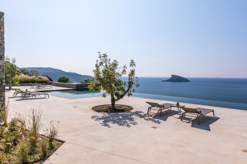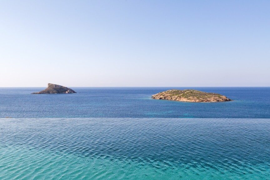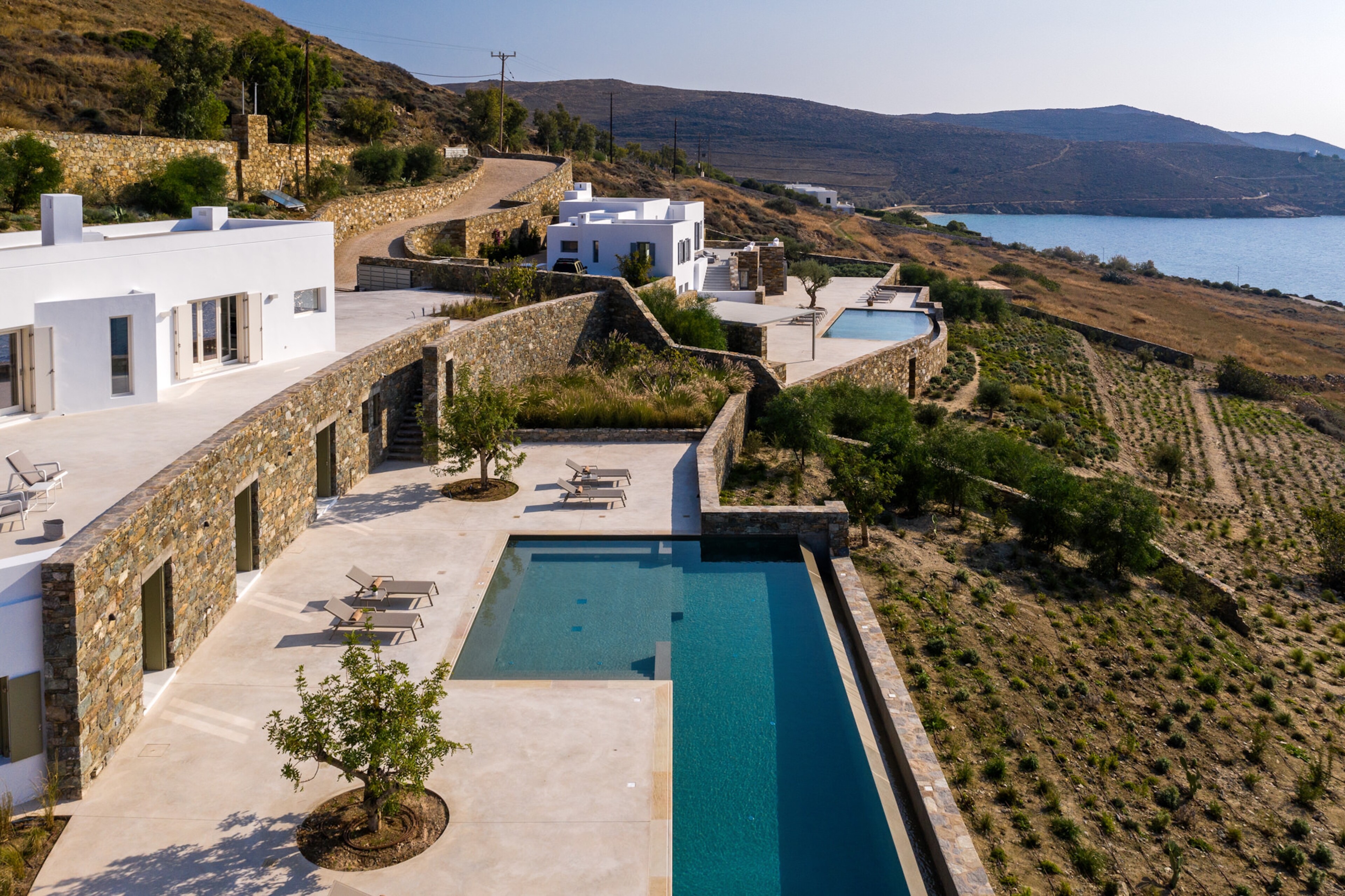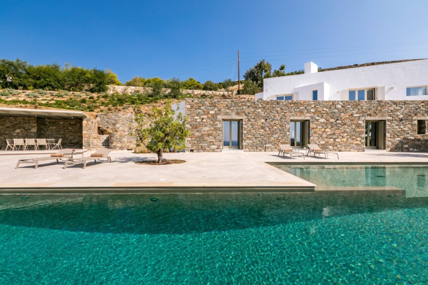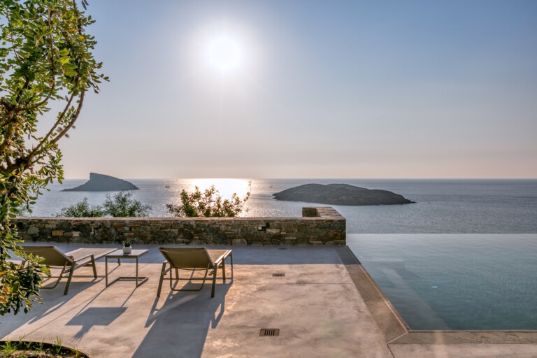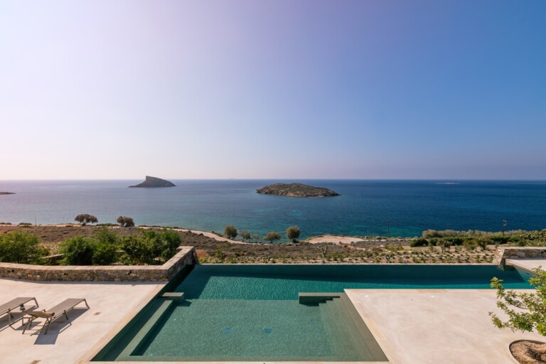 Villa Amarante is a serene retreat on the island of Syros, thoughtfully designed to blend contemporary comfort with the island’s natural beauty. Set on a private 1.7-acre estate, the villa offers breathtaking, unobstructed views of the Aegean Sea and the small islands of Schinoniso and Stroggyli, creating a spectacular backdrop for sunrise and sunset. It may be rented along with its sister property Eclat.
