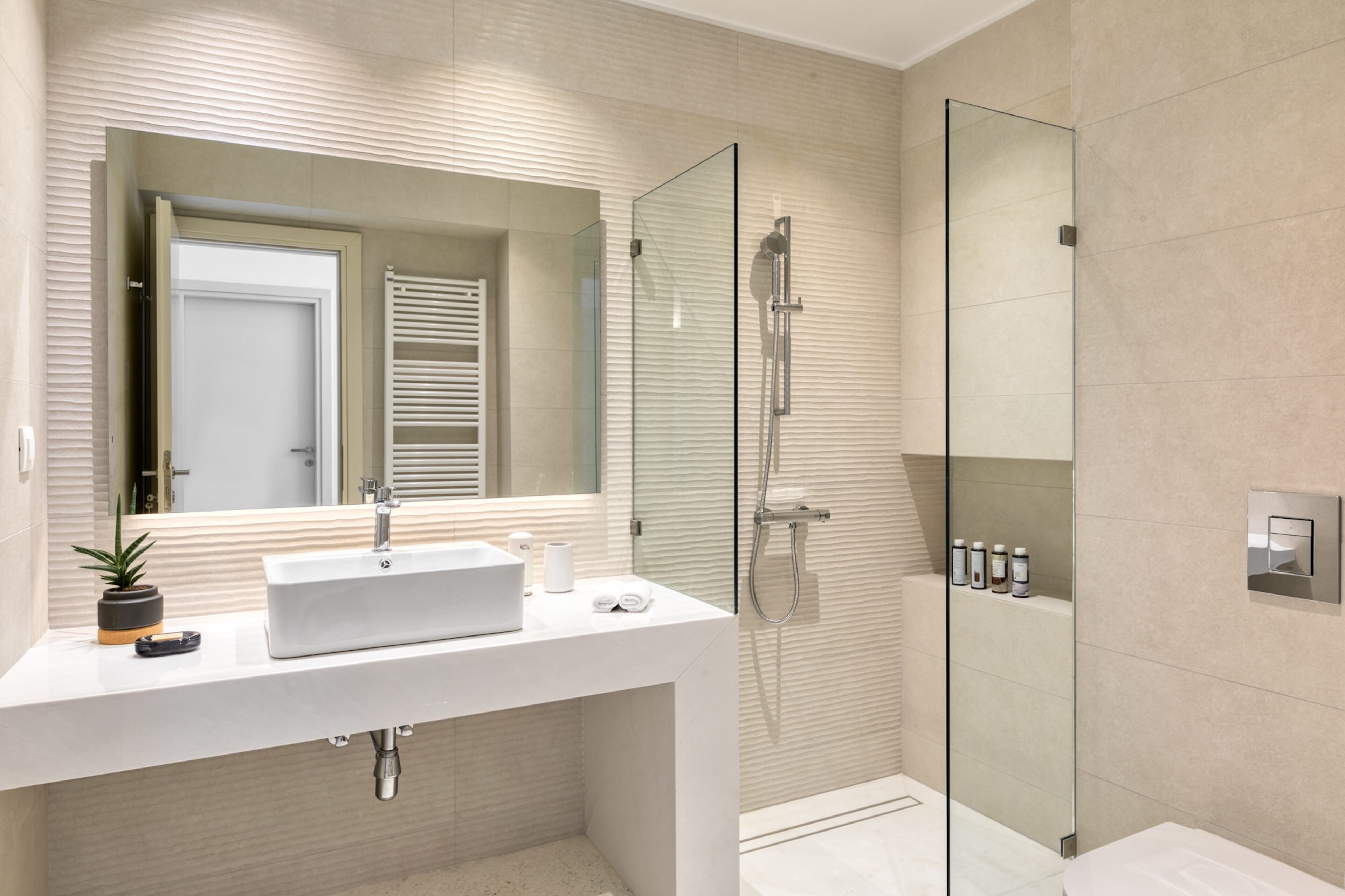 Outdoor living is at the heart of Amarante. An impressive 111 m² infinity pool stretches toward the horizon, featuring both a lap-swimming section and a shallow area with jet sprays for lounging. Around the pool, guests can enjoy sun loungers, shaded pergolas, a BBQ area, and an outdoor dining table — perfect for long summer meals. A dedicated yoga space offers a quiet corner for morning meditation. A footpath winds through the property, leading down to the seafront for moments of reflection by the water.