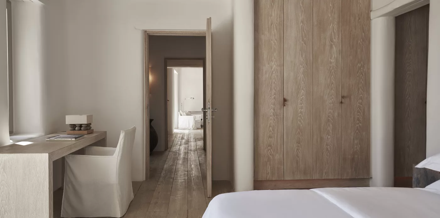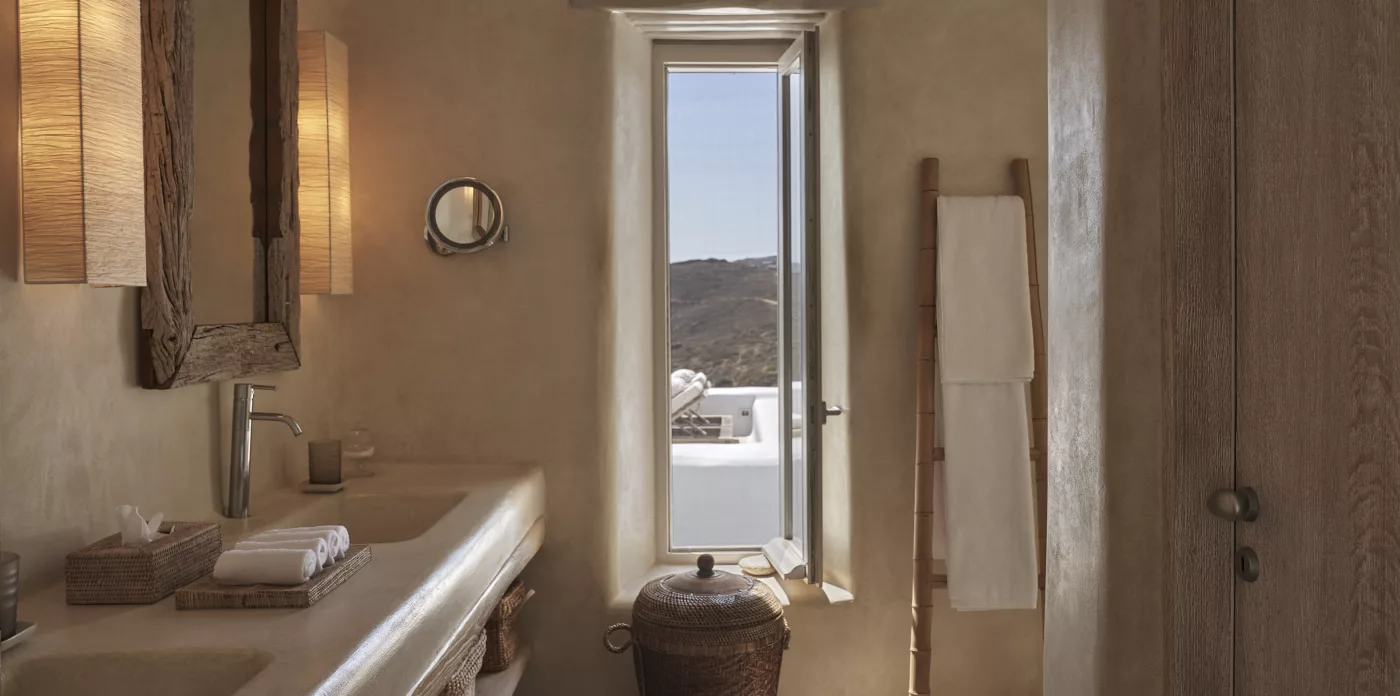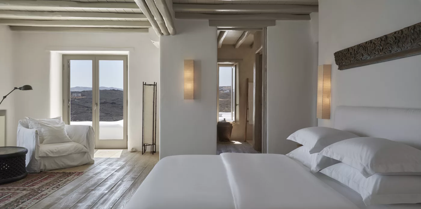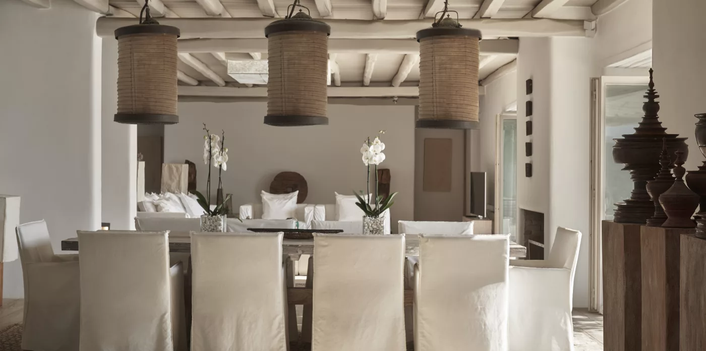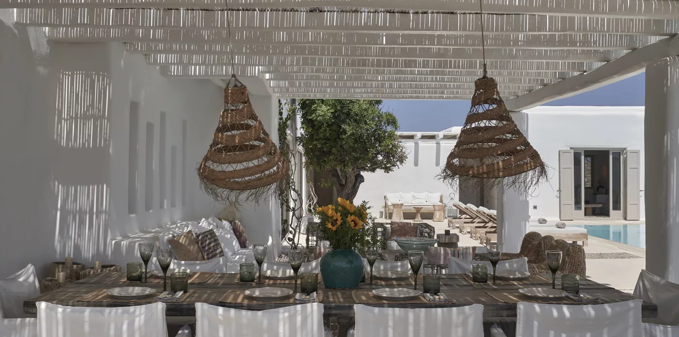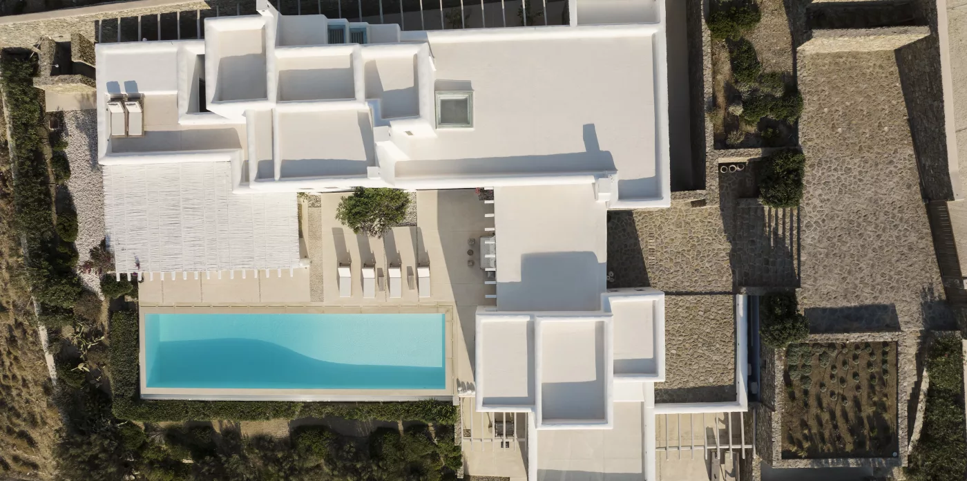 Villa Amirah offers both character and classic Mykonian style at its best; airy, easy spaces and a happy atmosphere. Aghios Sostis beach with its church and little taverna is only 5 minute walk below while Panormos beach is only a short drive away. The family friendly home enjoys a sheltered position from the north wind and a lovely outlook over Panormos, home to one of Mykonos’s best beach restaurants and clubs.