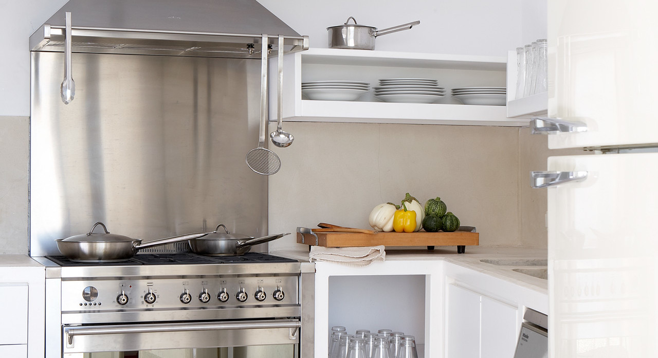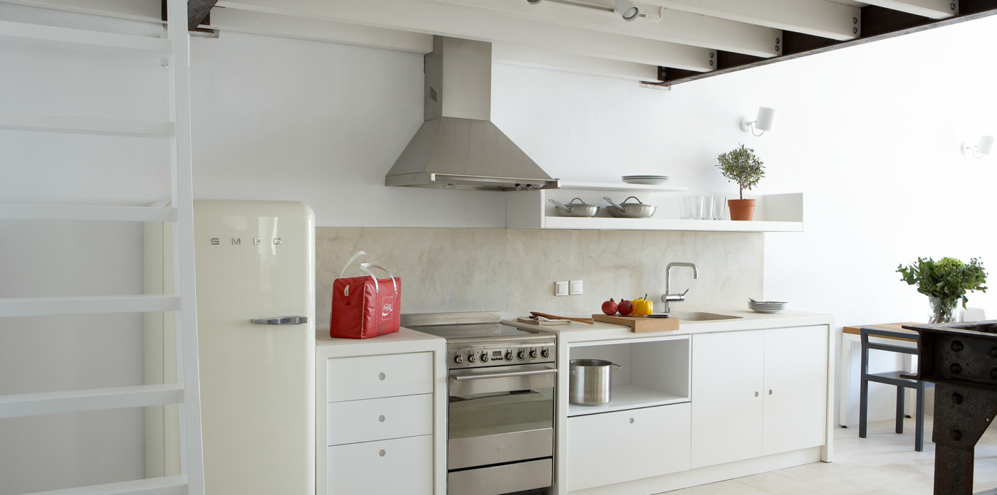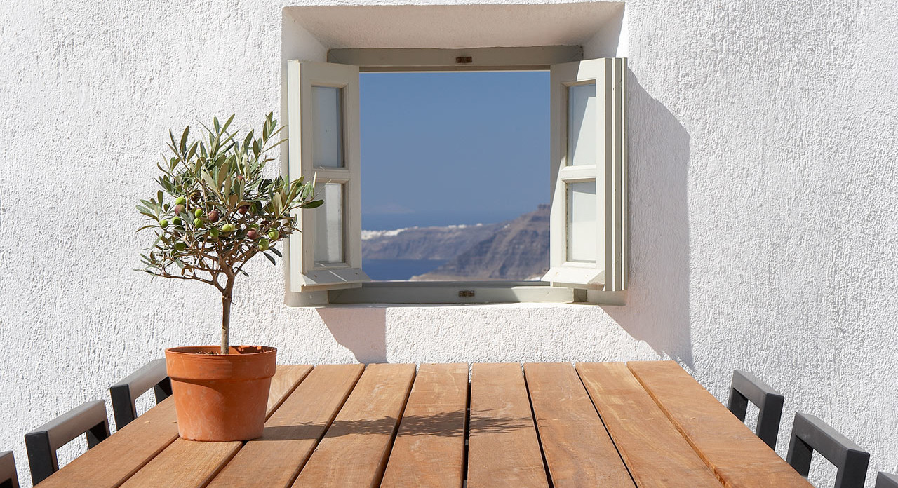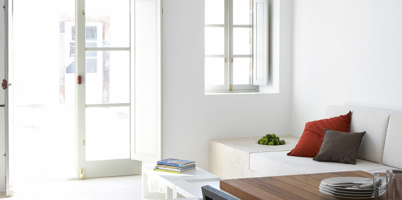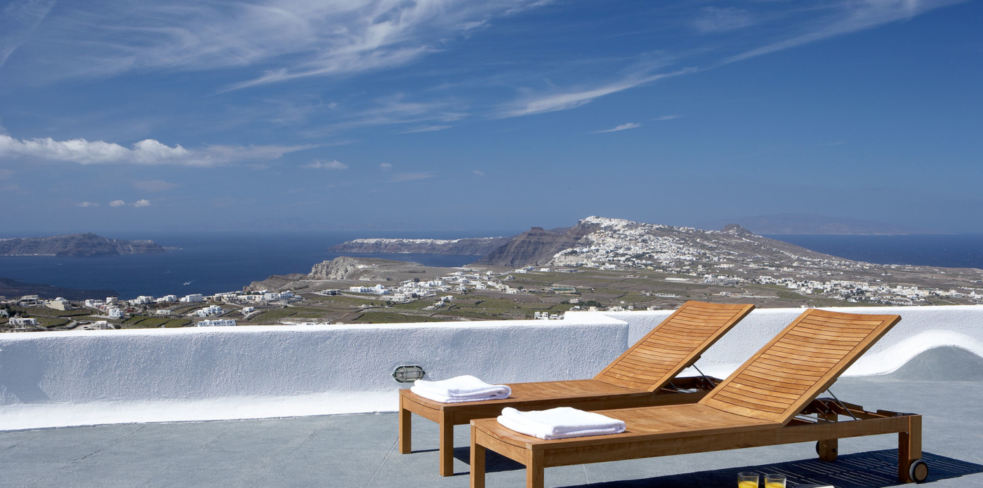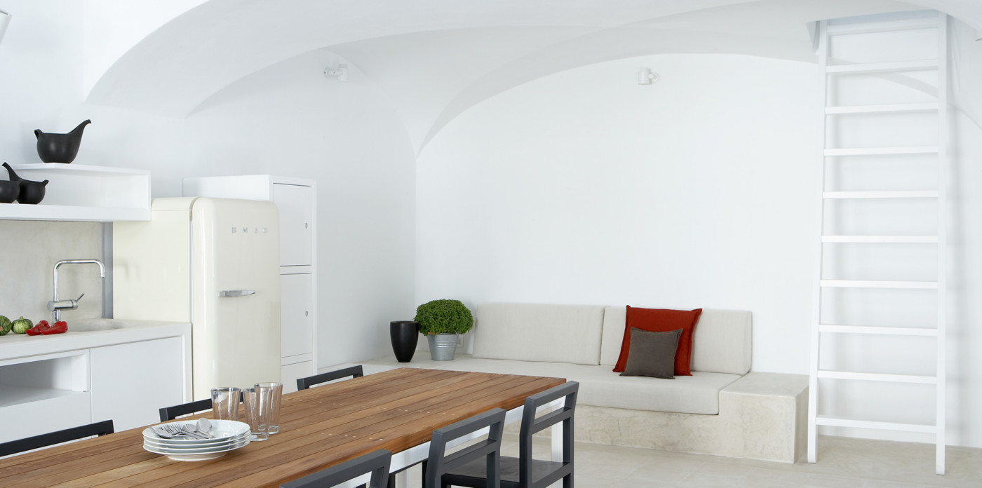 Anais has a very sleek and minimal loft–style design, and has been restored with a deep understanding for its traditional Santorini architecture using the old style of polished cement and eco–friendly materials. Elements of the factory have been incorporated into the design, and a huge piece of machinery stands like a magnificent sculpture as the centerpiece of one of the numerous living spaces.