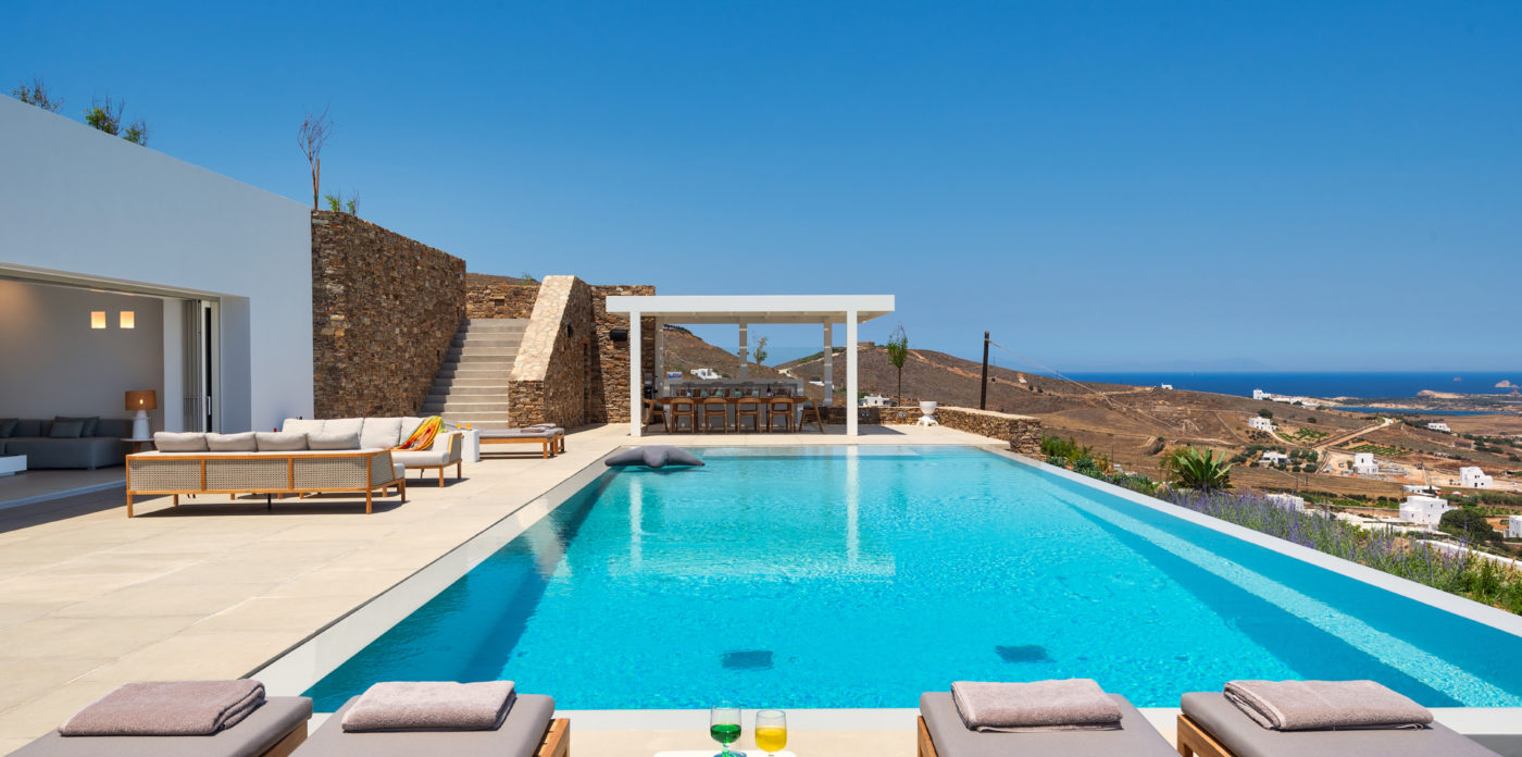 Anima is a luxurious cave villa on the island of Antiparos, located on a hill-side offering breathtaking views of Paros, the Aegean sea and the surrounding islands.