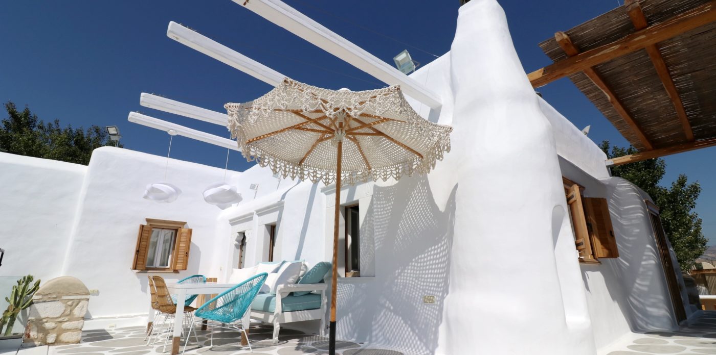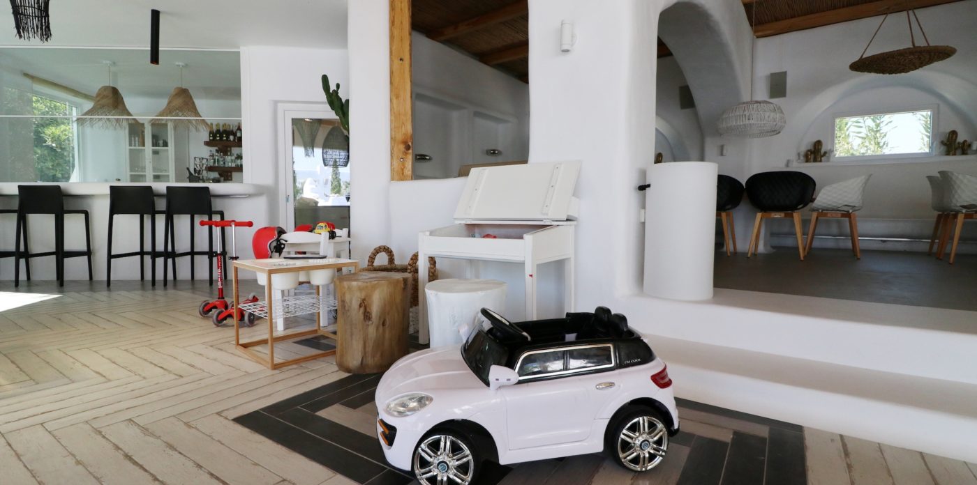 Most important the centre of Chora and St George beach – an awarded family-friendly beach with excellent restaurants nearby, are only 5 minutes away on foot.