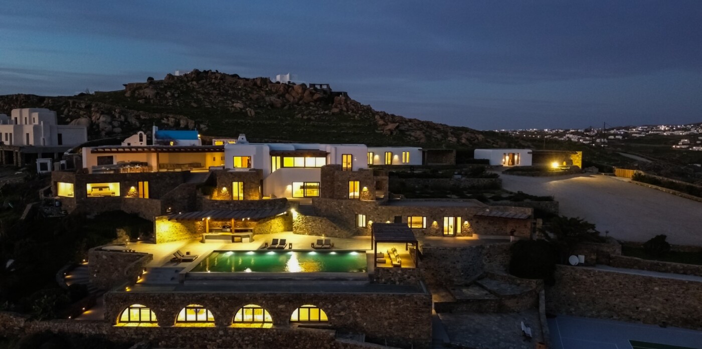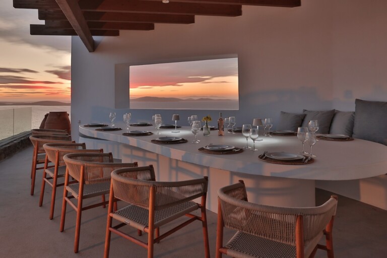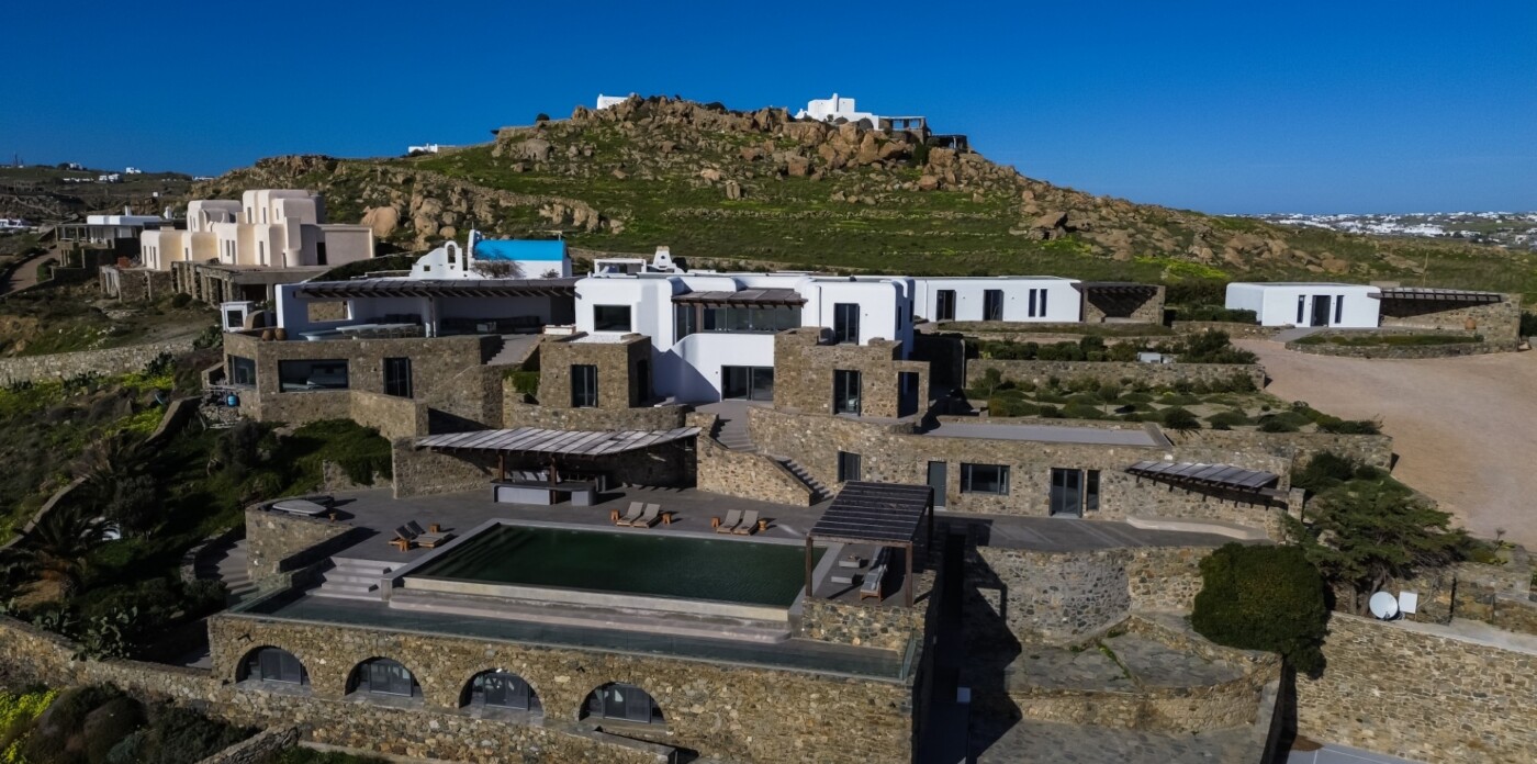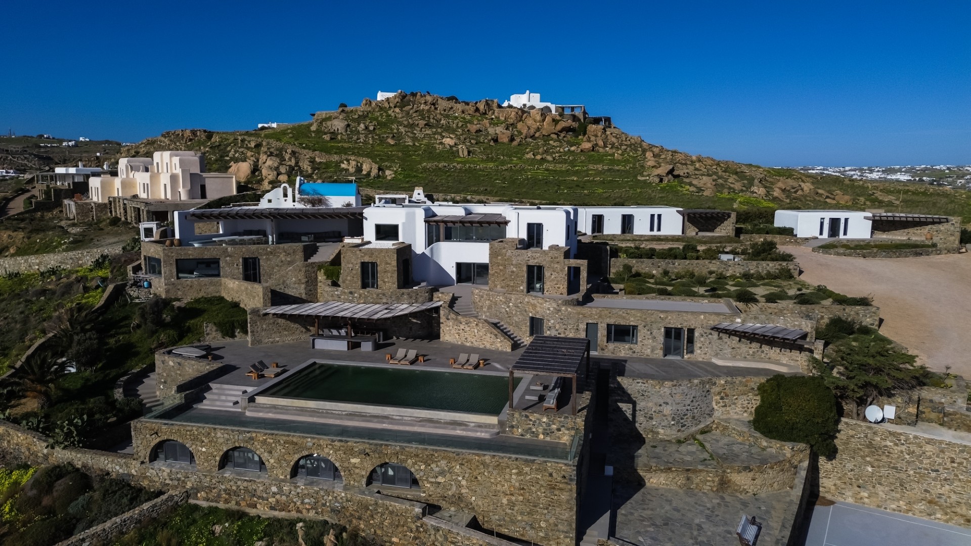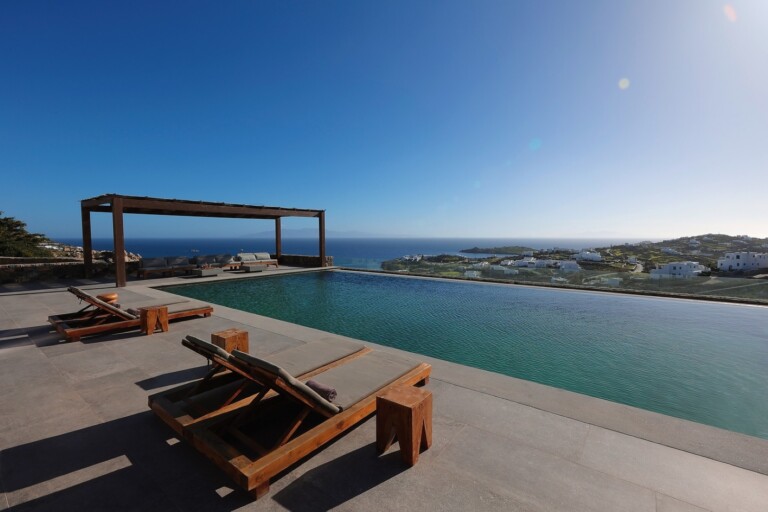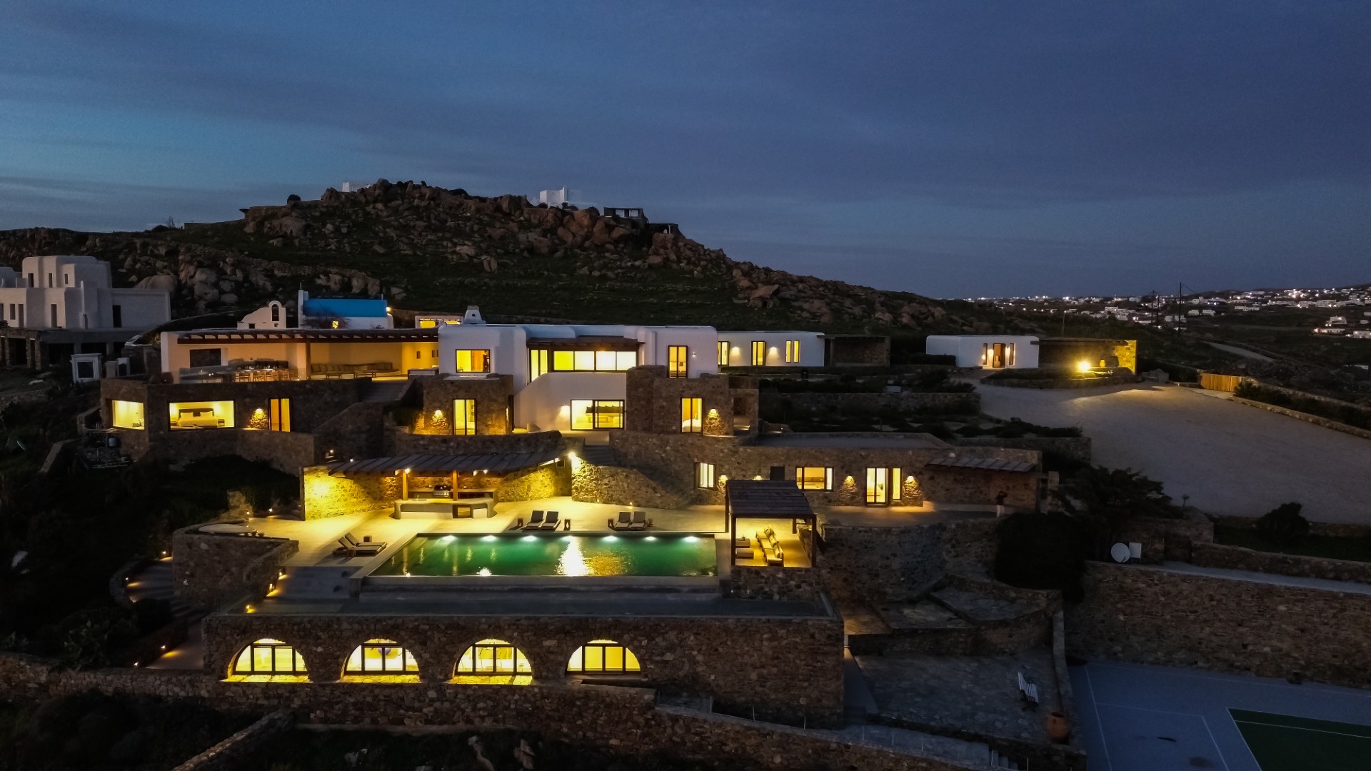 Fully serviced and designed for large groups, the villa combines privacy with proximity to Mykonos Town and its celebrated beaches — an ideal base for a sophisticated summer escape.