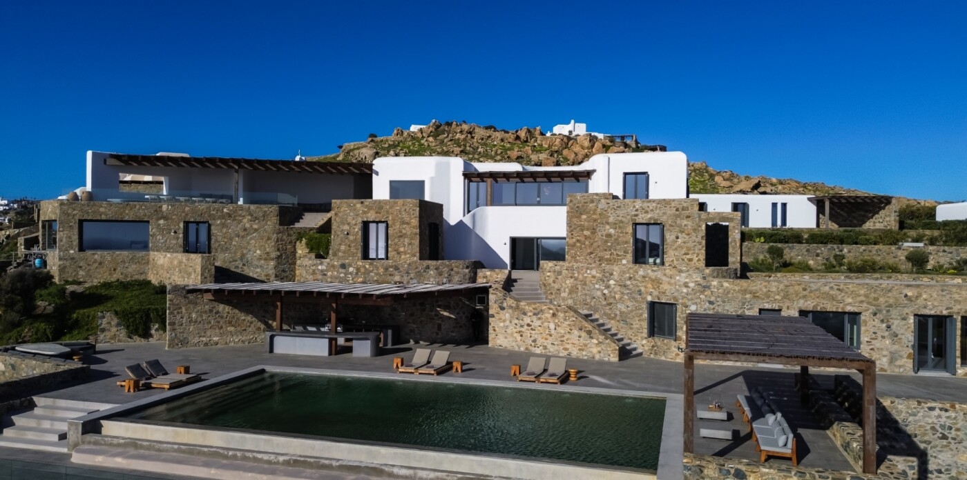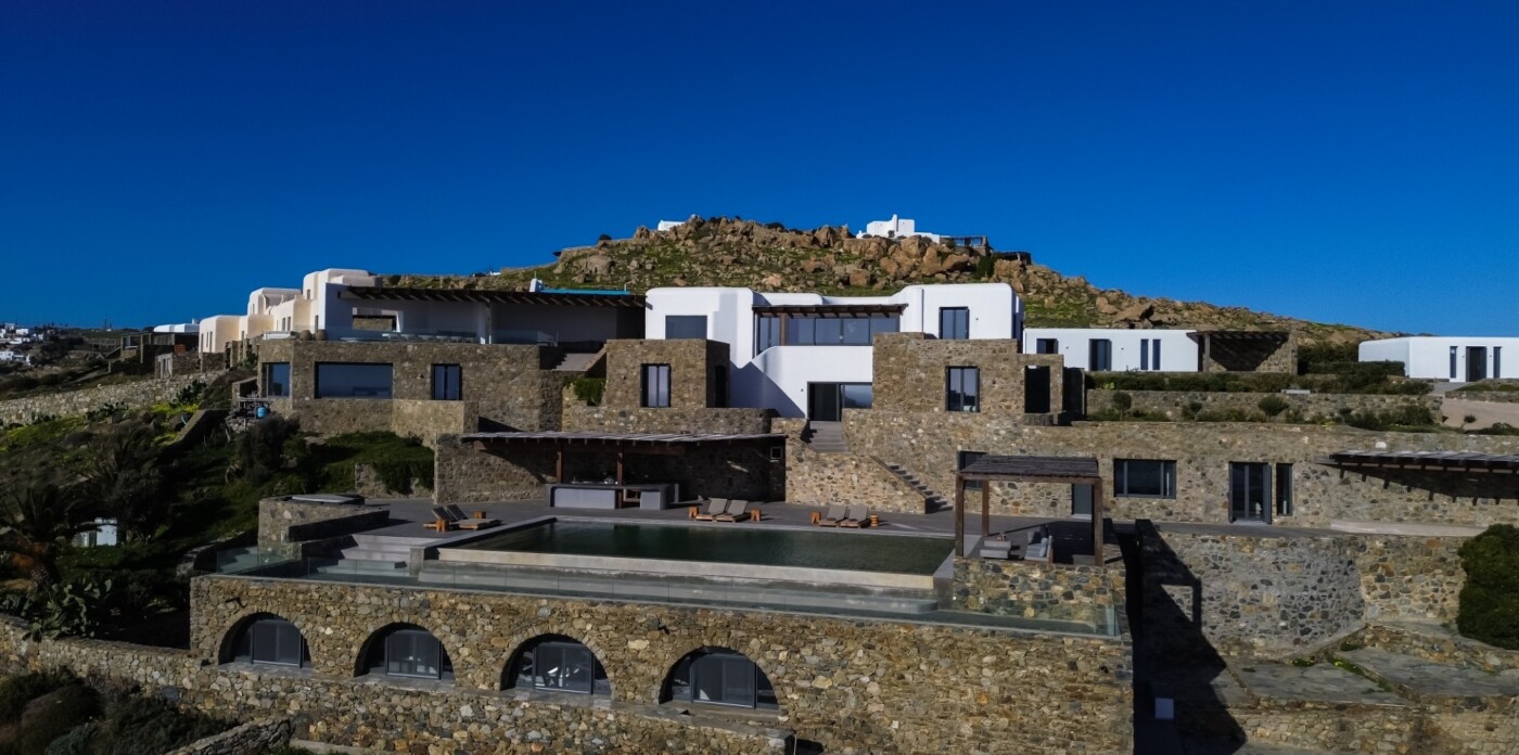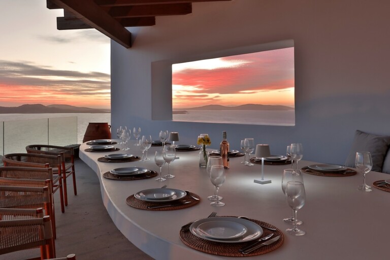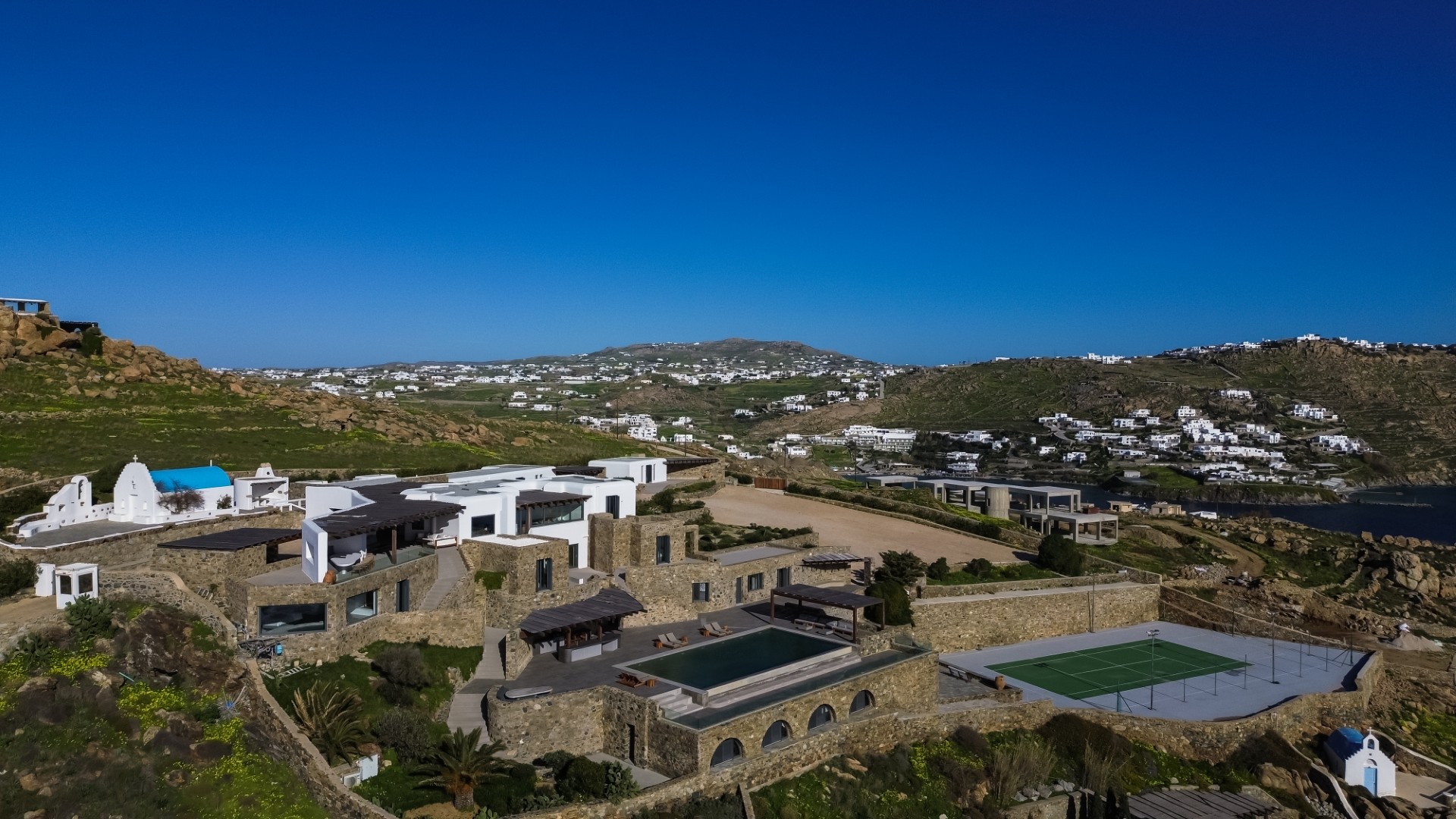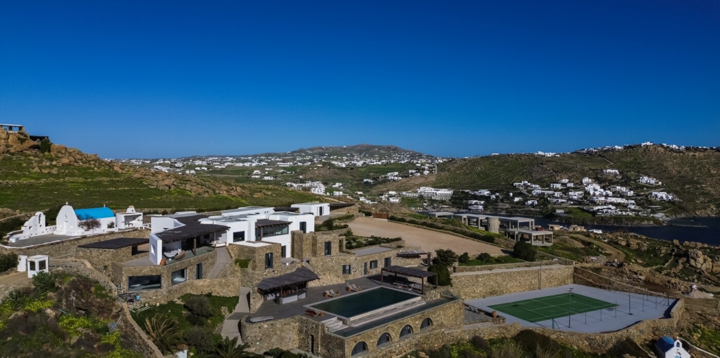 Fully serviced and designed for large groups, the villa combines privacy with proximity to Mykonos Town and its celebrated beaches — an ideal base for a sophisticated summer escape.