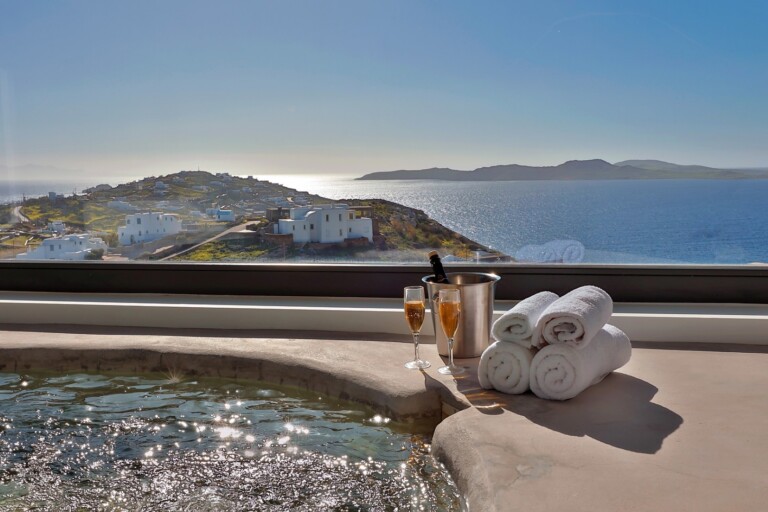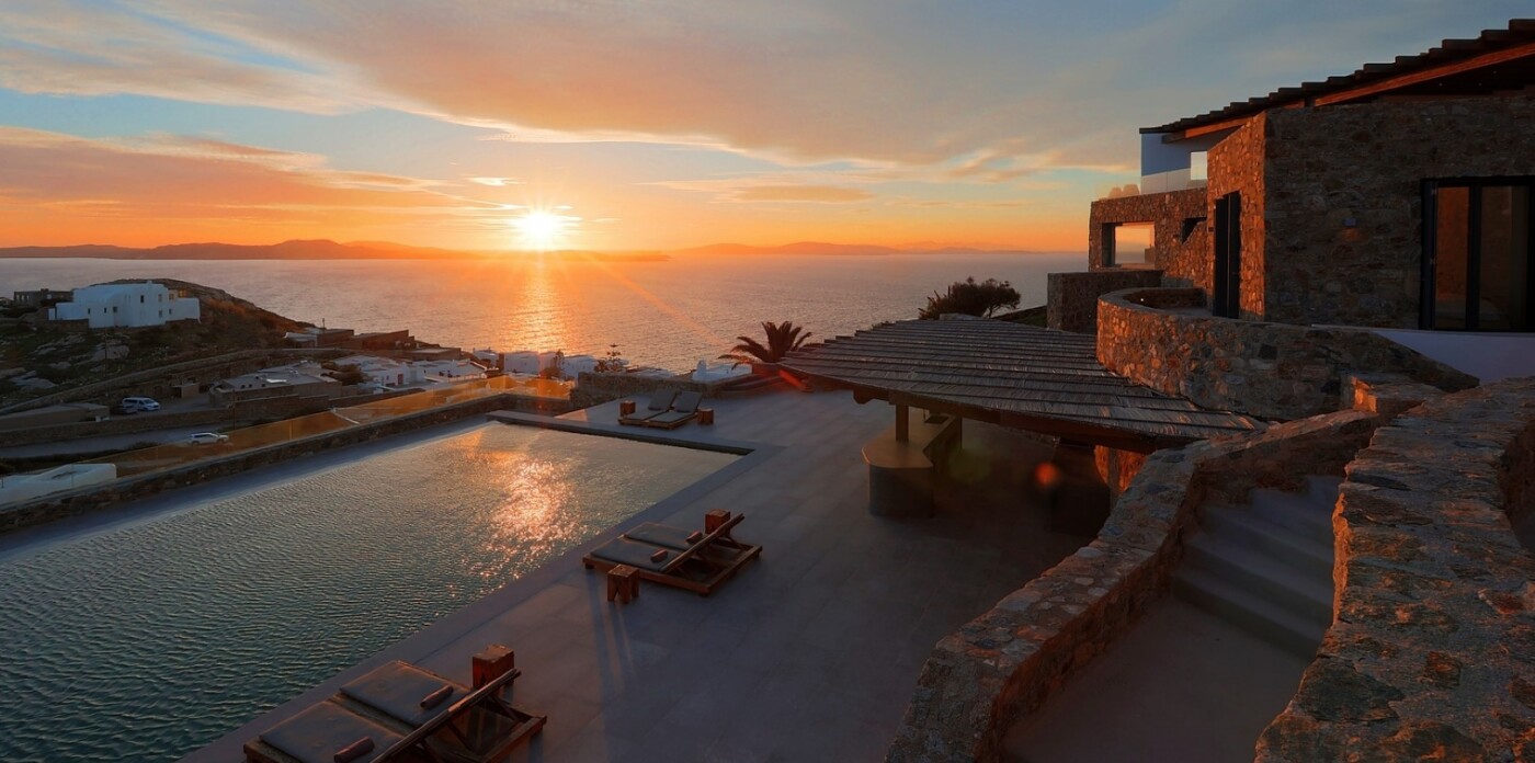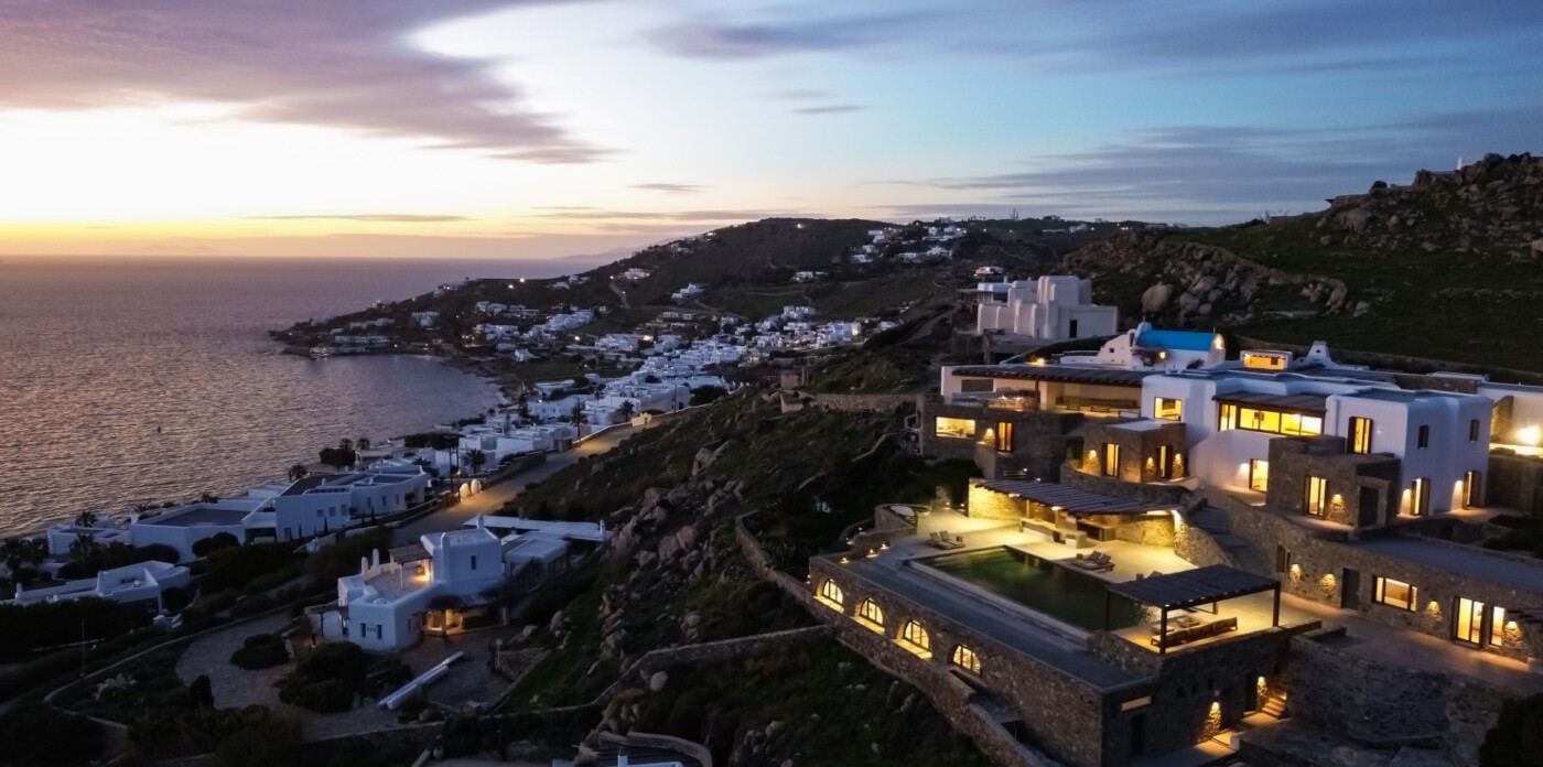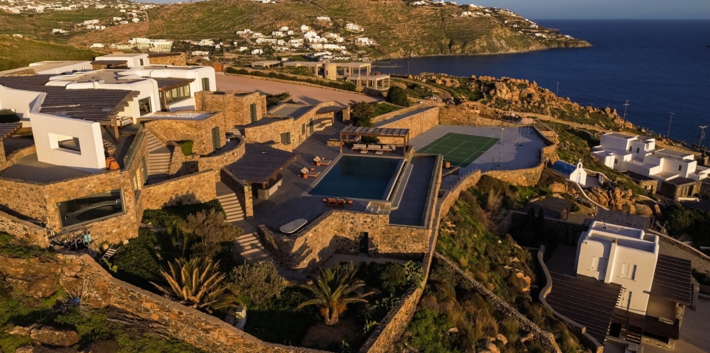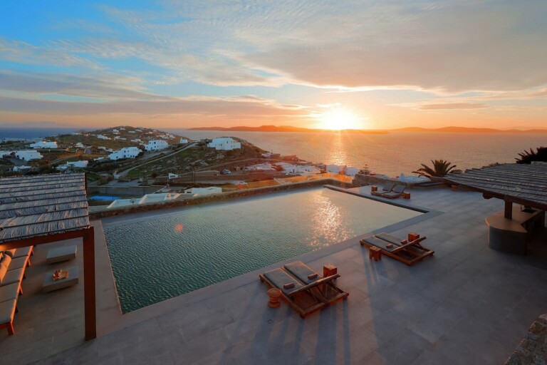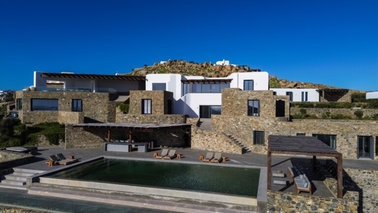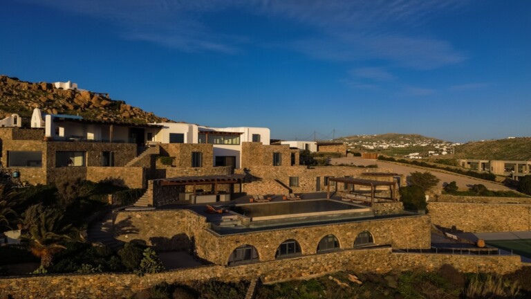 Fully serviced and designed for large groups, the villa combines privacy with proximity to Mykonos Town and its celebrated beaches — an ideal base for a sophisticated summer escape.