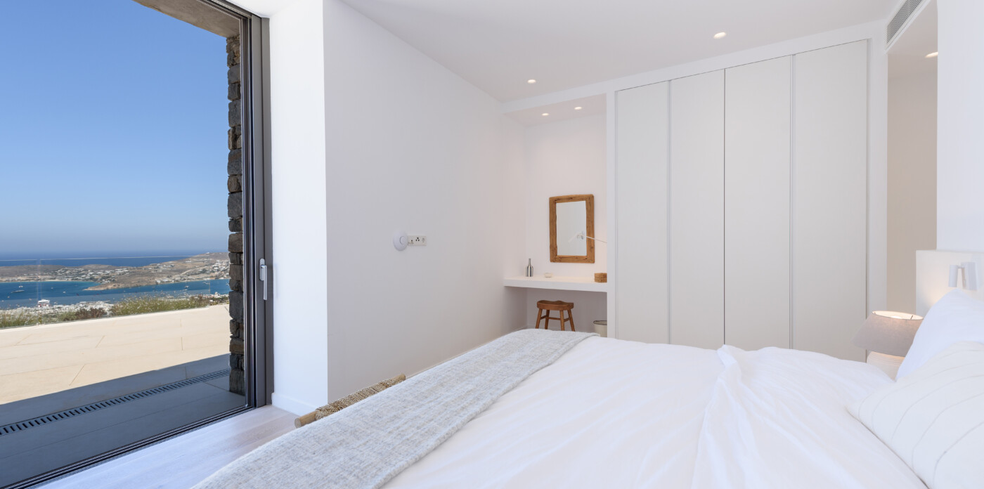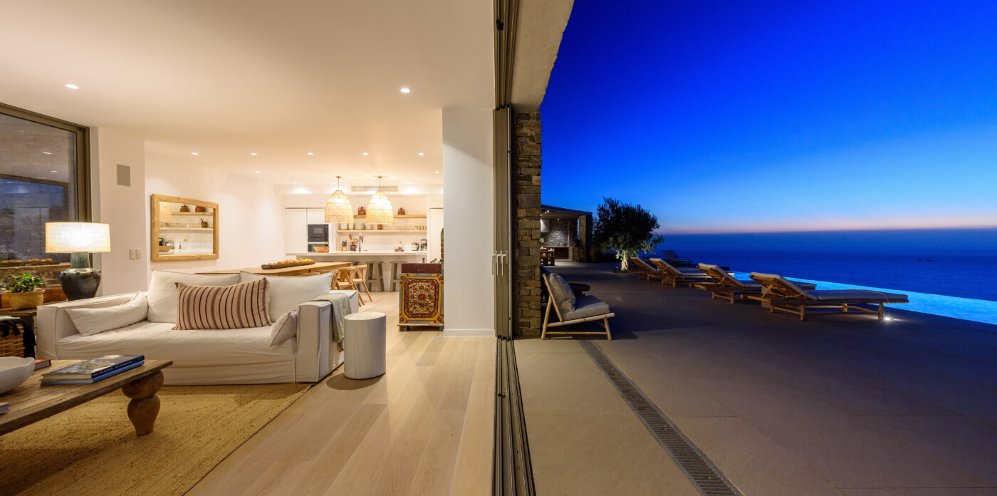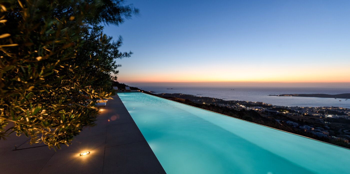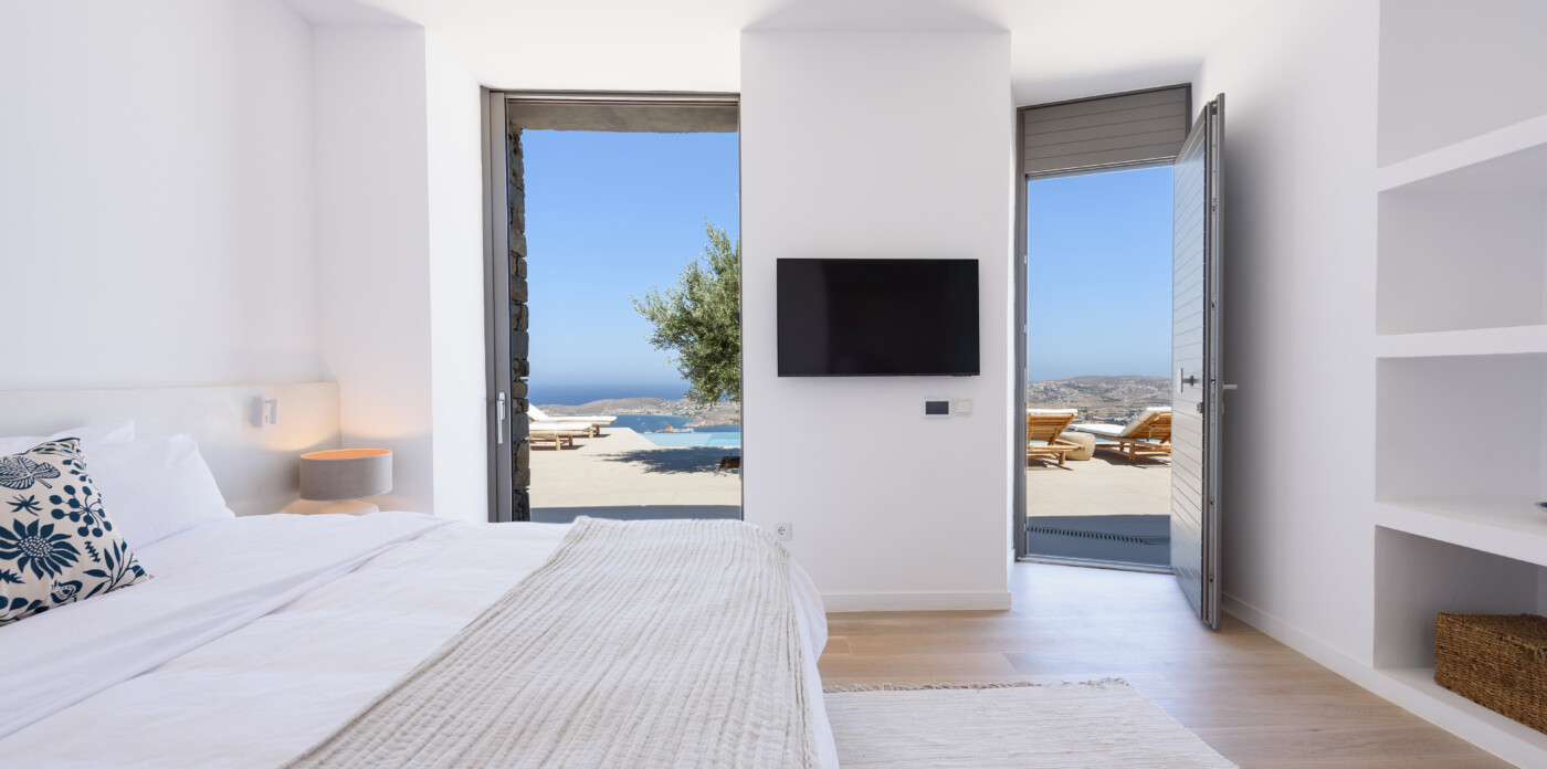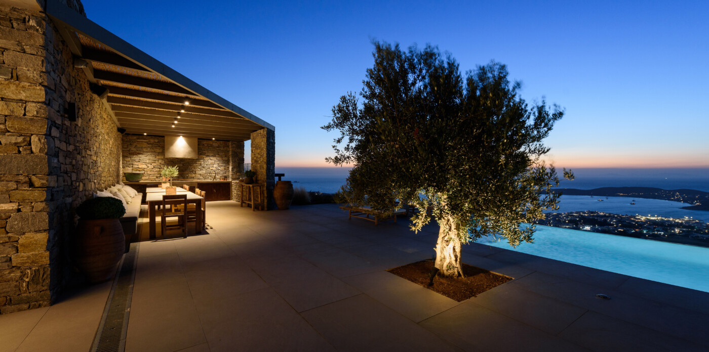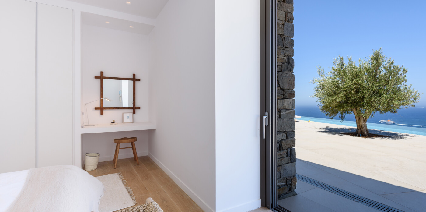 Crystalline, is a magnificent 6-bedroom brand new villa that offers breathtaking panoramic views of the Aegean Sea and the islands of Mykonos, Syros and Serifos. Situated on an elevated plot, the villa combines modern luxury with the desirable Cycladic charm, featuring sleek architectural lines and natural stone elements. Its crystal clear views of the endless sea and sky will just enchant you at first sight. Here you may enjoy the most astonishing sunsets and breathtaking views all day long.