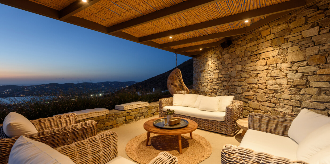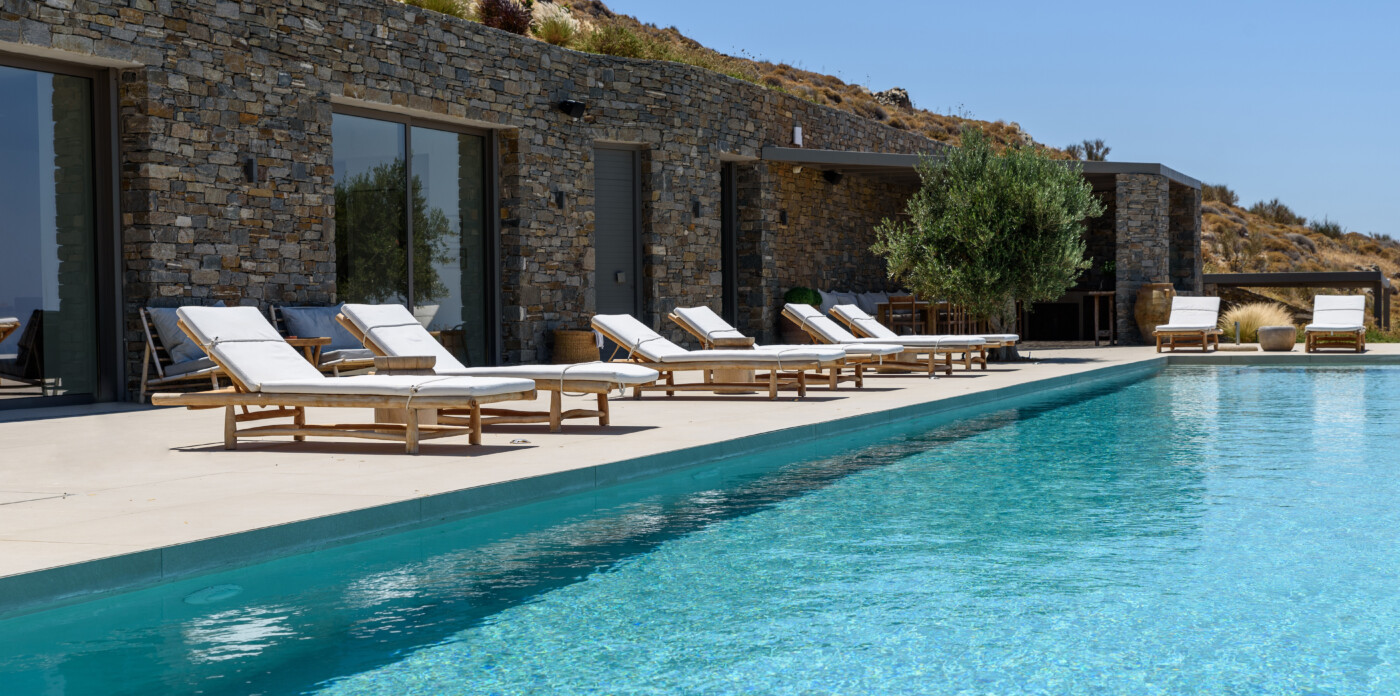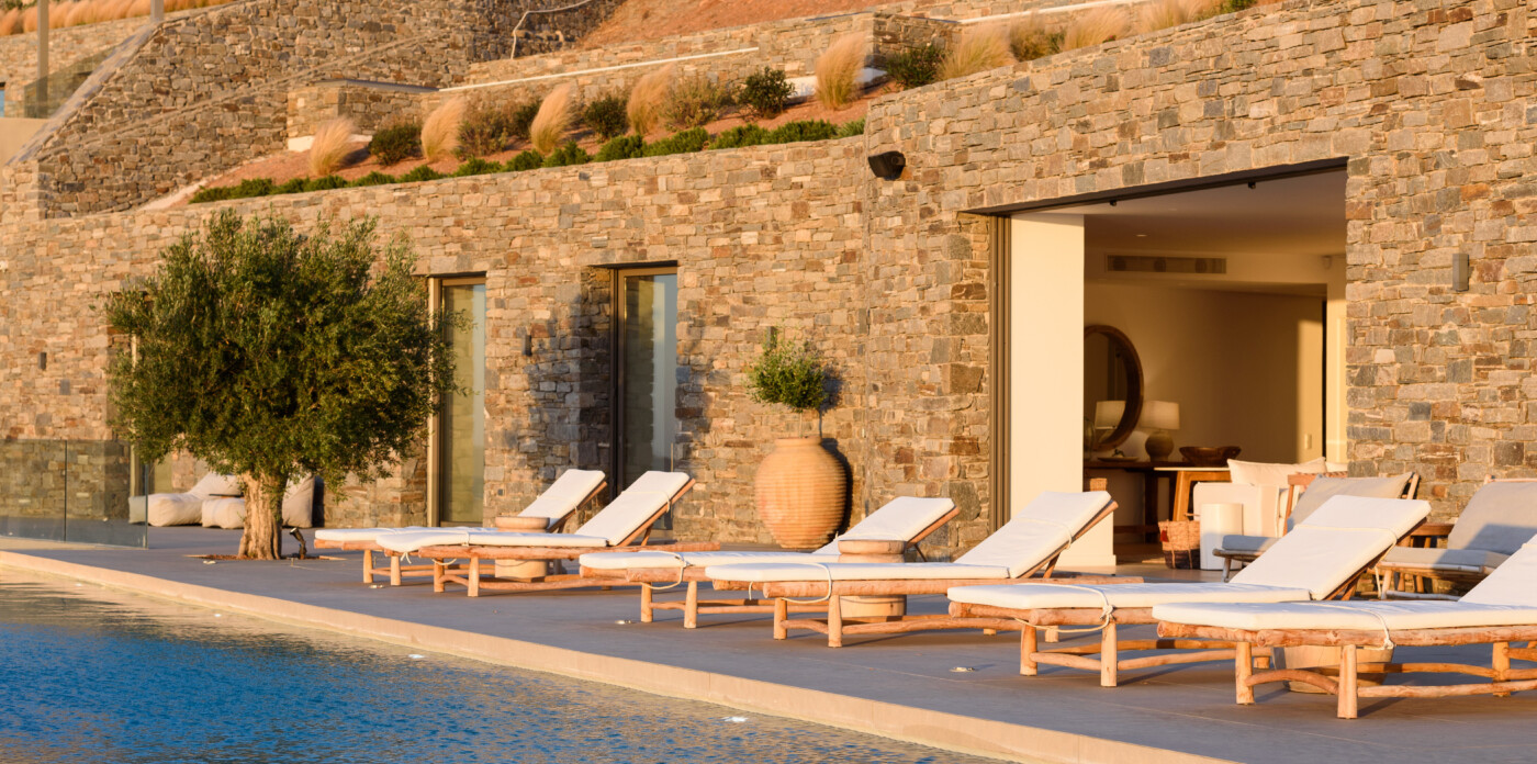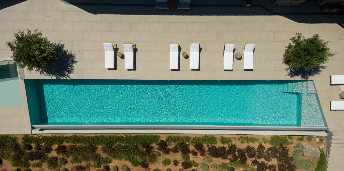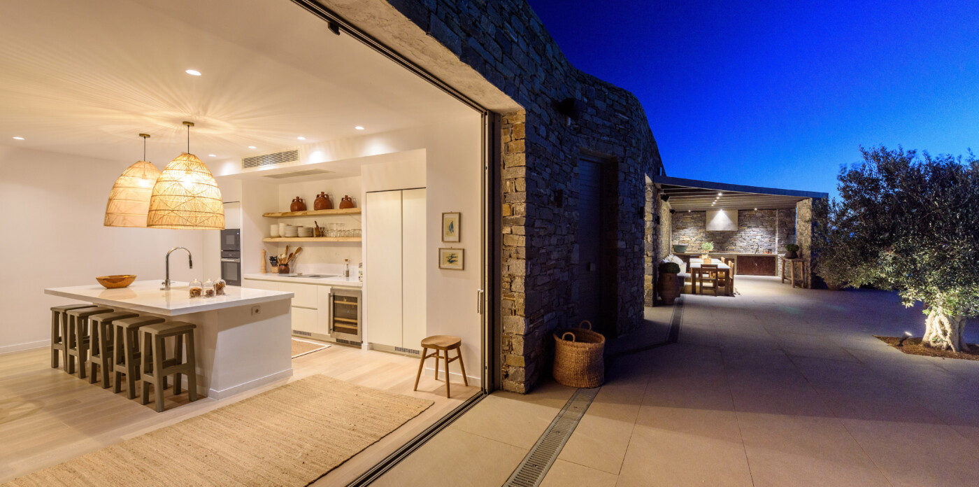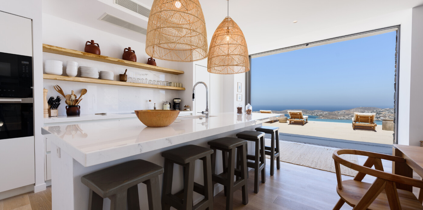 Crystalline, is a magnificent 6-bedroom brand new villa that offers breathtaking panoramic views of the Aegean Sea and the islands of Mykonos, Syros and Serifos. Situated on an elevated plot, the villa combines modern luxury with the desirable Cycladic charm, featuring sleek architectural lines and natural stone elements. Its crystal clear views of the endless sea and sky will just enchant you at first sight. Here you may enjoy the most astonishing sunsets and breathtaking views all day long.
