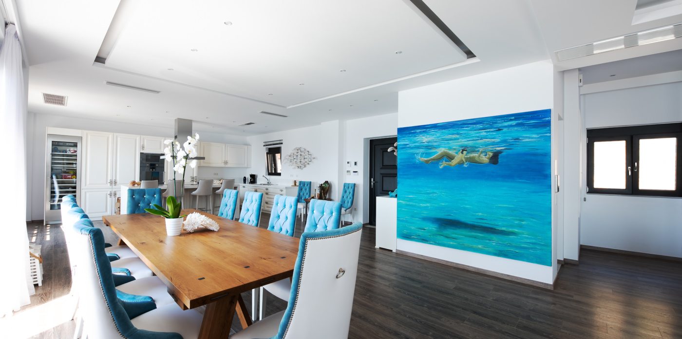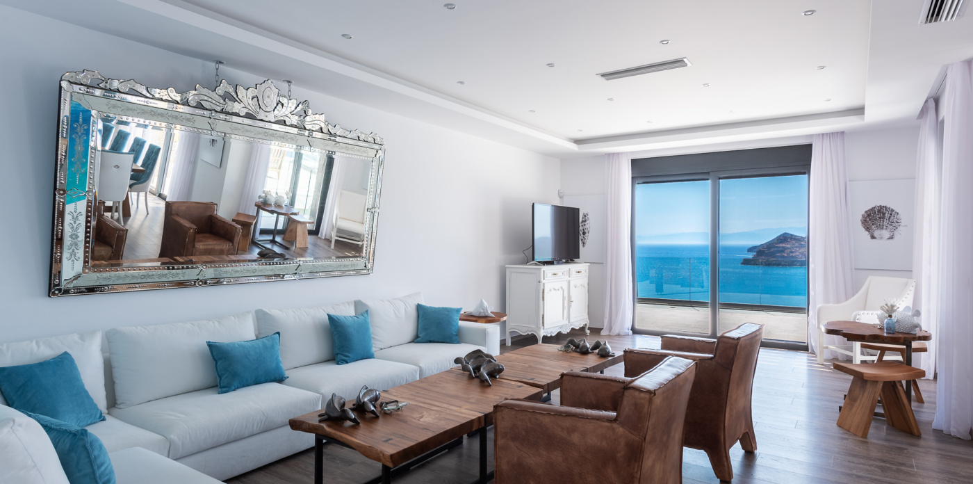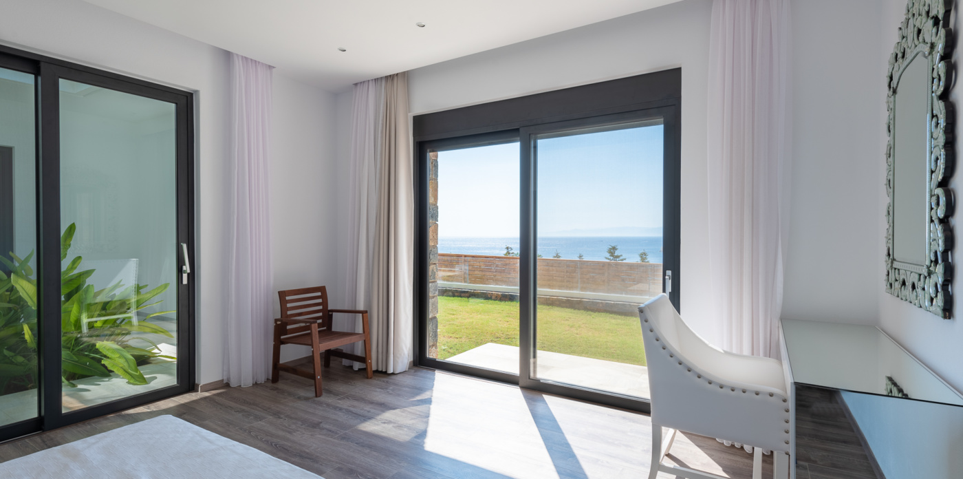 Outdoor areas consist of generous terraces and balconies with unspoilt sea views and sophisticated garden furniture that make a call on you to use them. The comfortable sofas will invite you to sit on them and the barbeque area will trigger you to enjoy meals surrounded by magical Greek ambience. Swim in the turquoise waters of the infinity pool or take a short walk towards the small beach .