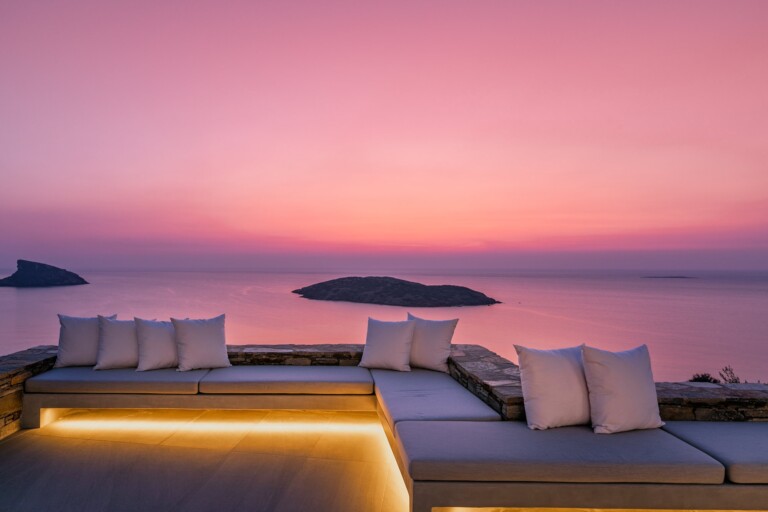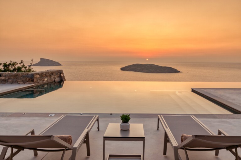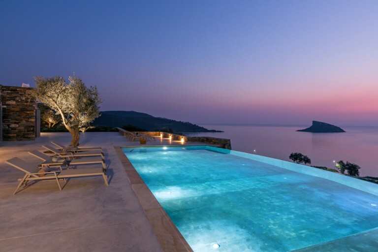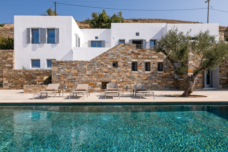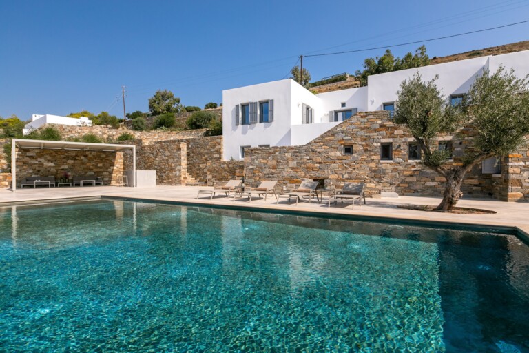 Set on an elevated hillside overlooking the infinite expanse of the Aegean Sea, Éclat is a meticulously crafted sanctuary that redefines Cycladic luxury. Designed to harmonise with the natural landscape of Syros, the property brings together whitewashed volumes, hand-carved local stone, and clean contemporary lines, forming a residence that feels both authentically rooted and elegantly modern. The villa offers breathtaking sea views of the Aegean sea and for larger groups there is the option of renting it along with Villa Eclat.