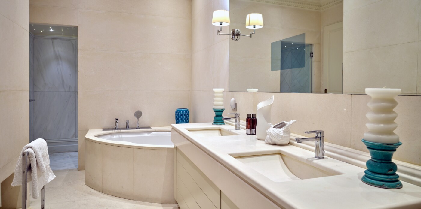 Finished to the highest of standards throughout, this beautifully interior-designed furnished home boasts impressive room sizes with high ceilings and original cornicing, an exceptional entrance hall, two vast living rooms and dining areas, marble bathrooms, and a bespoke kitchen/breakfast room.