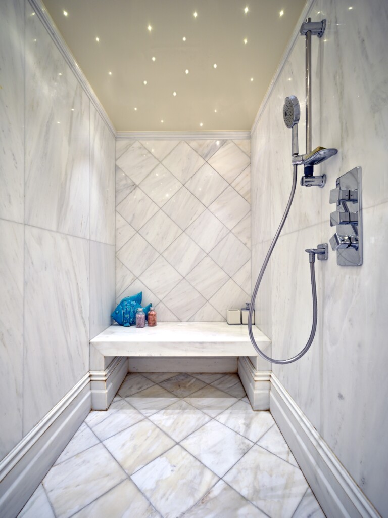 In addition, Edgar features in a total of four bedrooms. The principal bedroom suite boasts an elegant bathroom, dressing room and sitting room. There is an additional bedroom and two double kids’ bedroom areas, spread over two levels with their bathrooms and small kids’ living room/playroom.