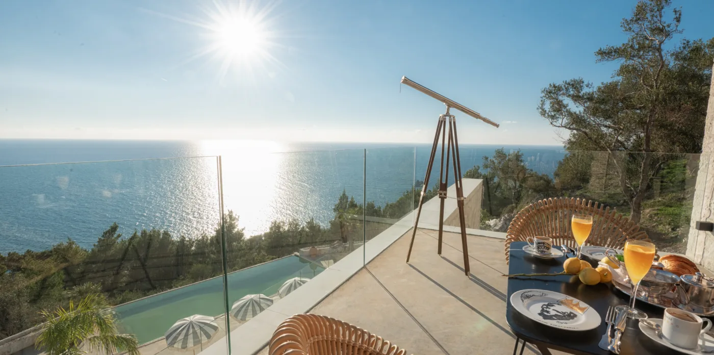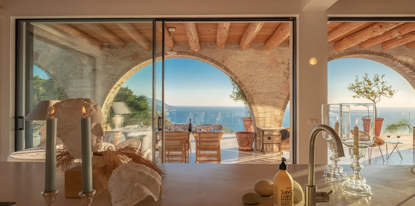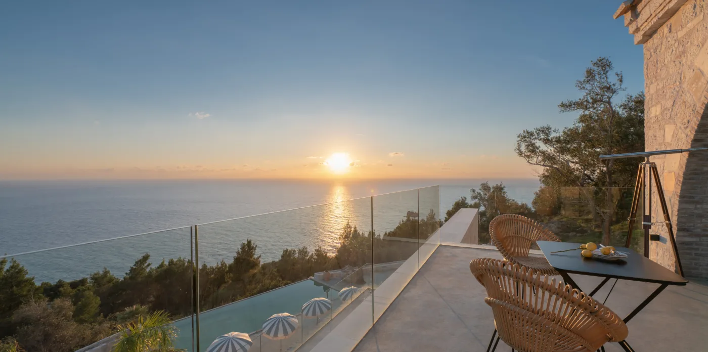 The view is a constant indulgence on the eyes; the scenery of the sea, sun and clouds, birds, and the horizon is magnificent. Feel the magic of nature in an exceptional property on this pearl island of the Ionian.