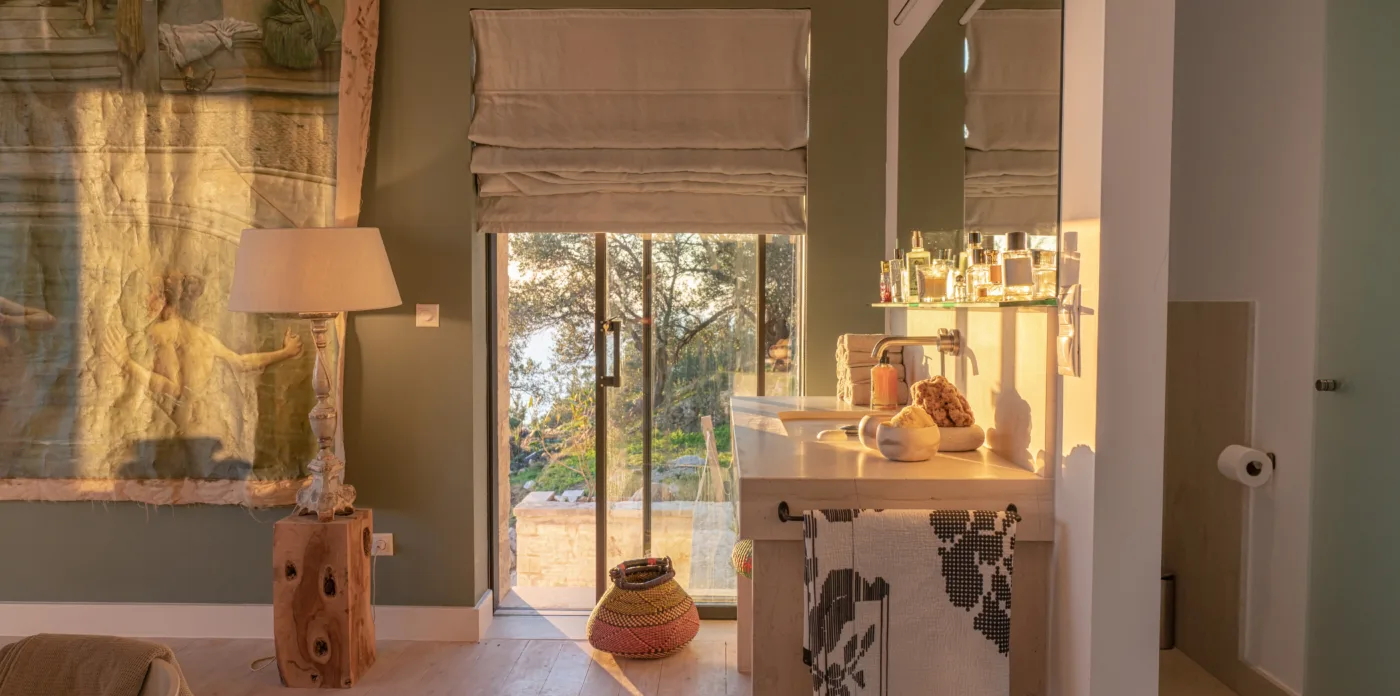 Elsa is a splendid combination of old-world romance that meets modern design and comfort.A beautiful stone house built by artists, set on a 7-acre olive grove on the west coast of Corfu Island.