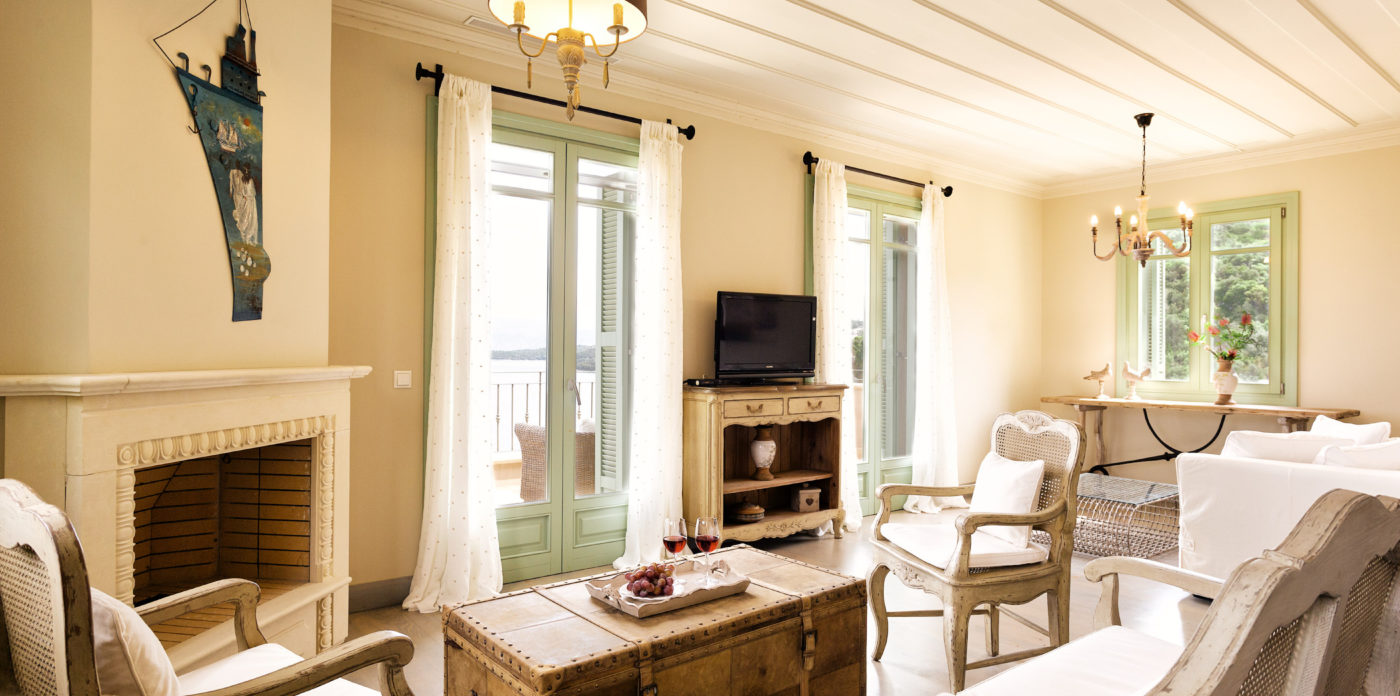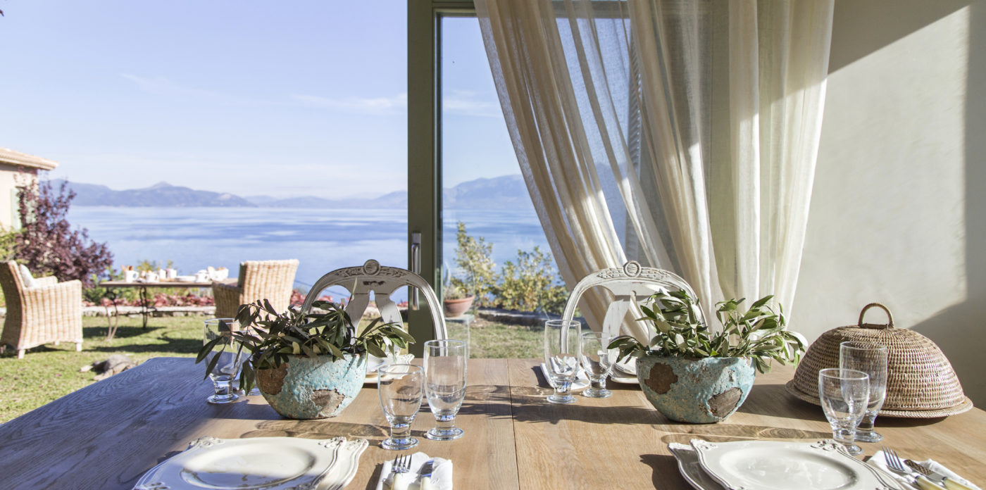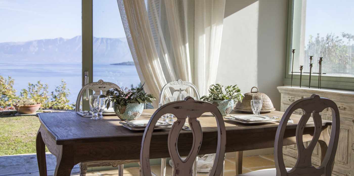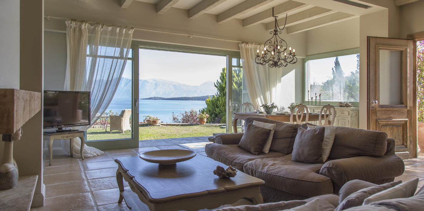 Elegantly furnished with natural materials and country style furnishings, Emilyn offers privacy, luxurious accommodation and ultimate comfort. The interior of the villa is decorated in earthy tones inspired by its natural setting being spacious and comfortable, it is designed to satisfy the demands of its guests. The open plan living room with fireplace is bright and airy and its fully equipped kitchen and dining area on the ground floor offer superb views of its beautiful garden and Ionian sea. The second lounge on the upper floor leads to a private balcony with amazing views of the sea.