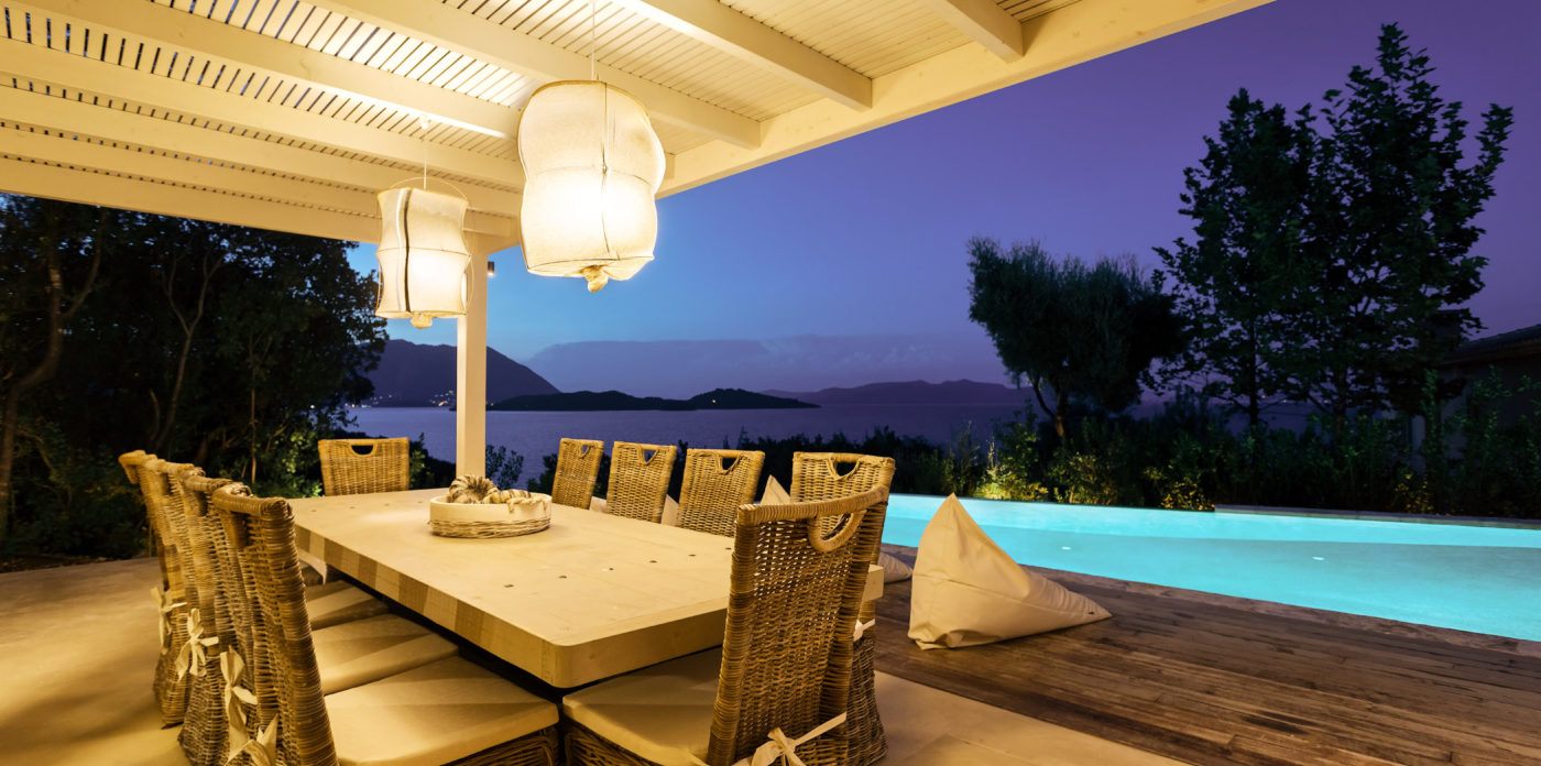 Emilyn is situated on the North-West of the island amidst lush vegetation. Its location, scenery and natural beauty of the area could not be more majestic. Set on a fabulous verdant plot with astonishing views to the Ionian sea, the villa is harmoniously integrated into the environment, combining traditional local architecture with innovative modern style.