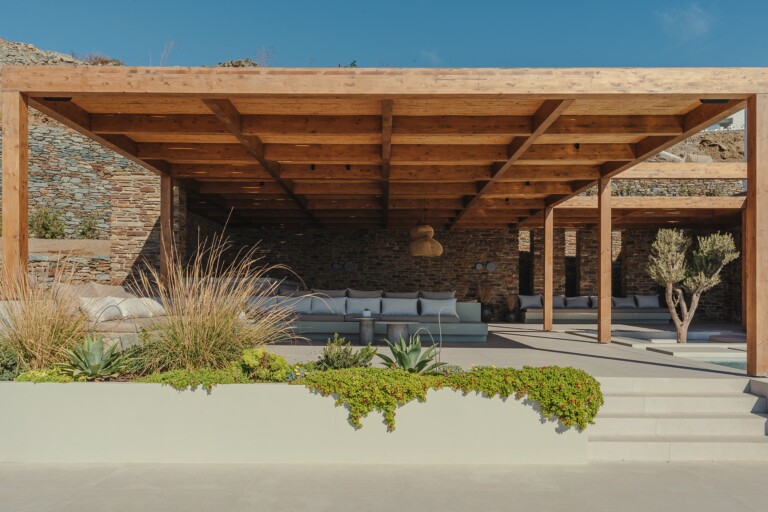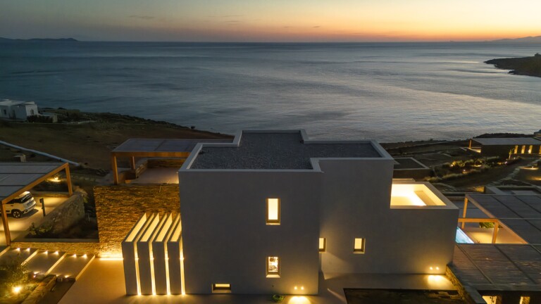 Framed by sweeping views of the Aegean, this contemporary brand new villa on the island of Tinos captures the essence of Cycladic design with clarity and restraint. Built from local stone and timber, it sits naturally within its terraced landscape, its horizontal lines and muted palette drawing attention to light, sea, and horizon.