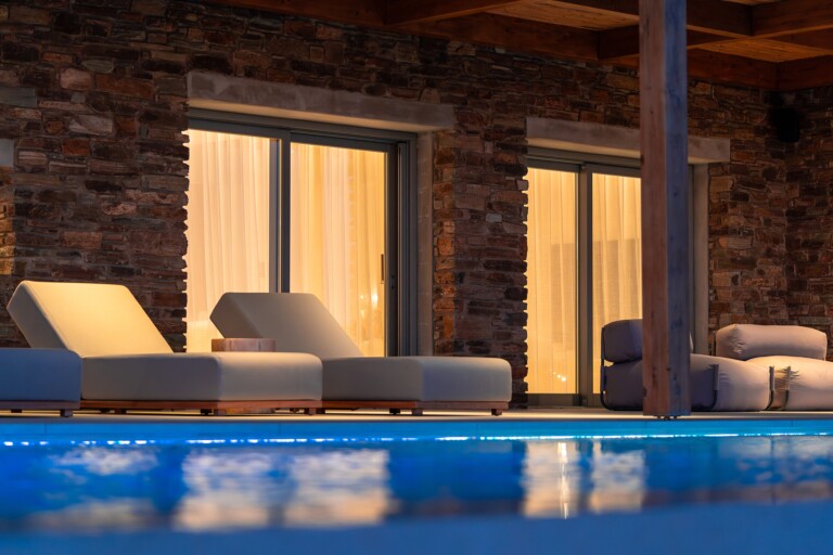 Eolia comprises seven elegantly designed bedrooms and features a range of contemporary amenities, including a jacuzzi, a hammam, and a fully equipped gym, combining comfort with a focus on wellbeing.
