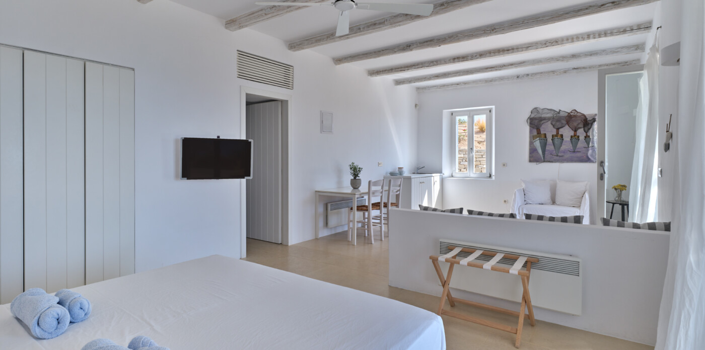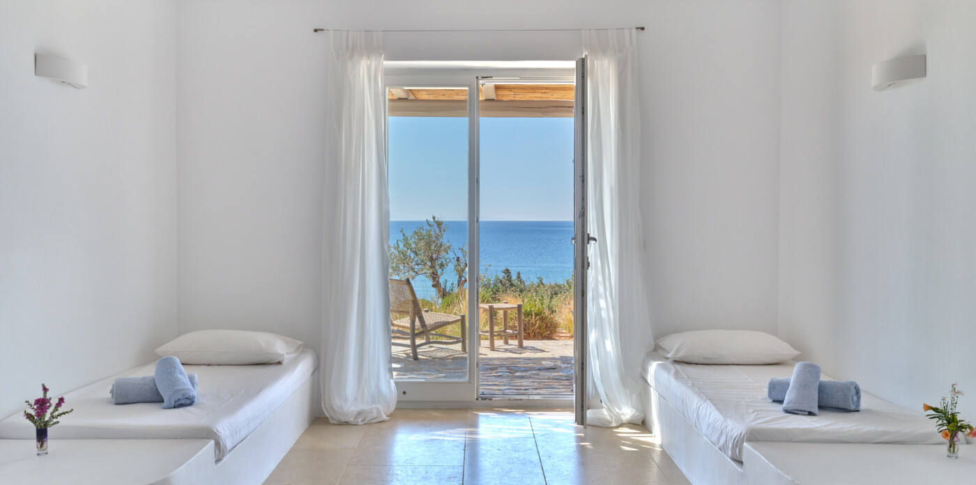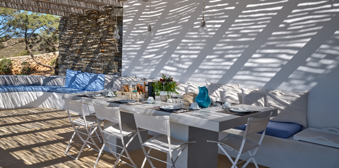 Situated just a short distance from the tranquil and protected sandy beach of Faragas, Erofili provides easy access to crystal-clear waters and pristine sands. The villa’s elevated position offers breathtaking views of the Aegean Sea and the neighboring islands of Ios, Sikinos, and Folegandros. The nearby village of Aliki, known for its authentic charm and local cuisine, is only a few kilometers away, providing a taste of traditional Greek island life.