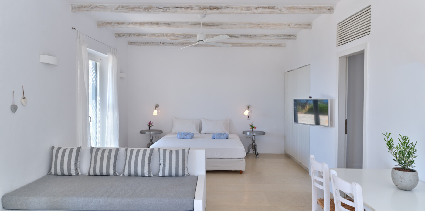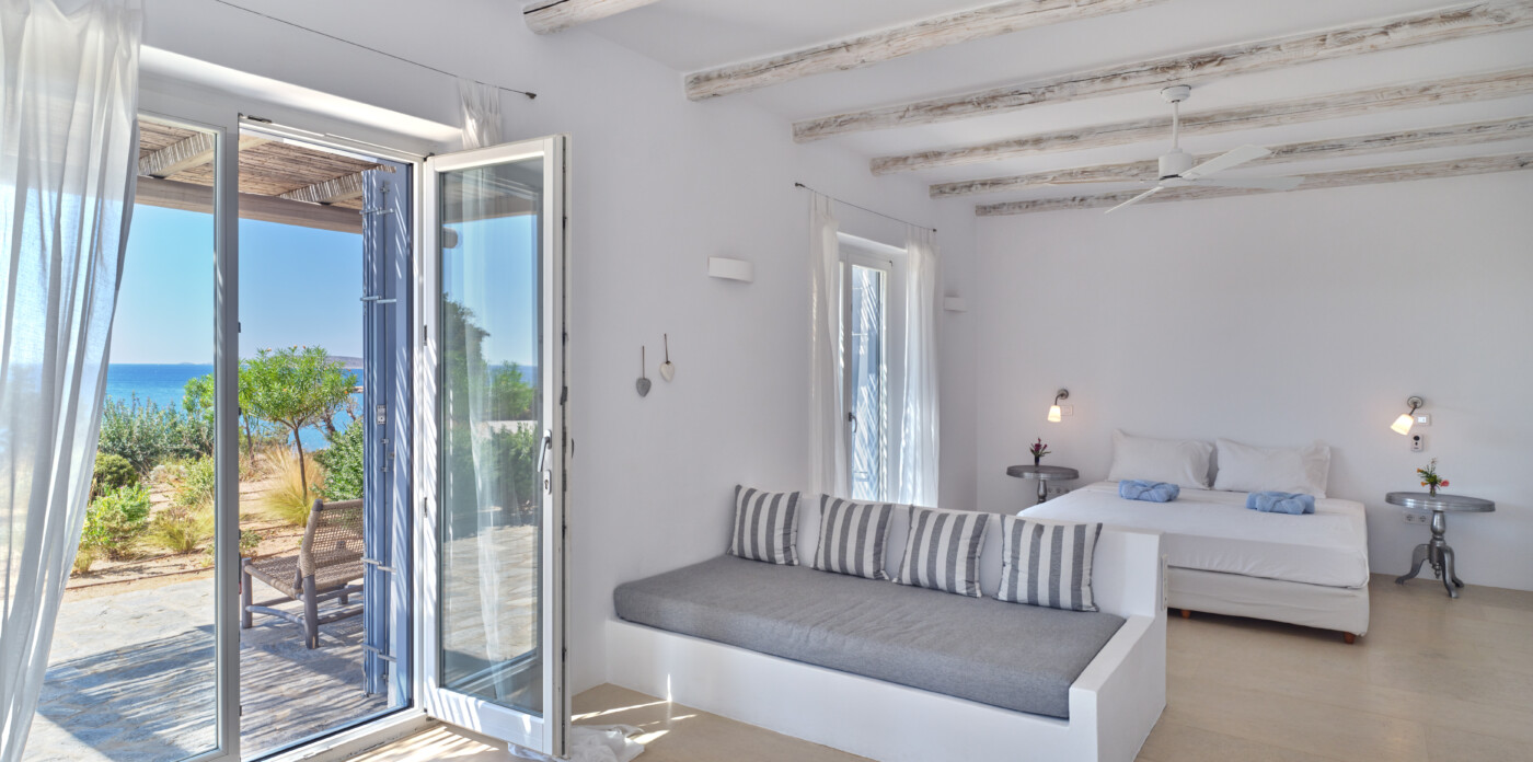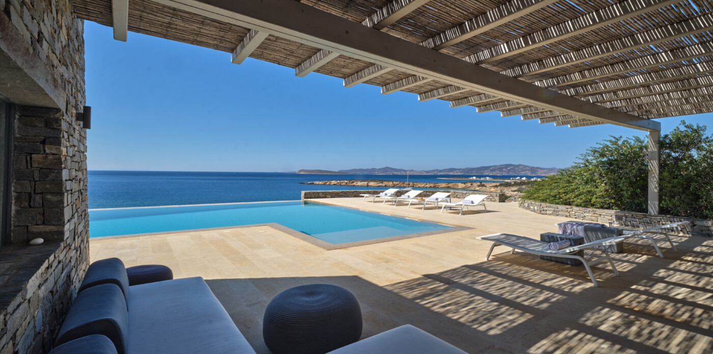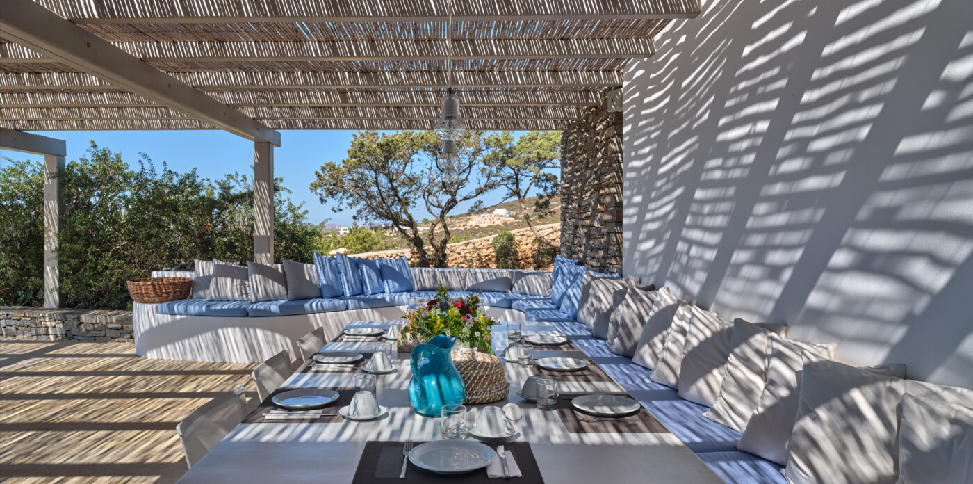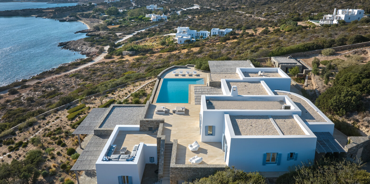 Erofili is a luxurious property located in Faraggas, Paros, offering a harmonious blend of modern comfort and traditional Cycladic architecture.
