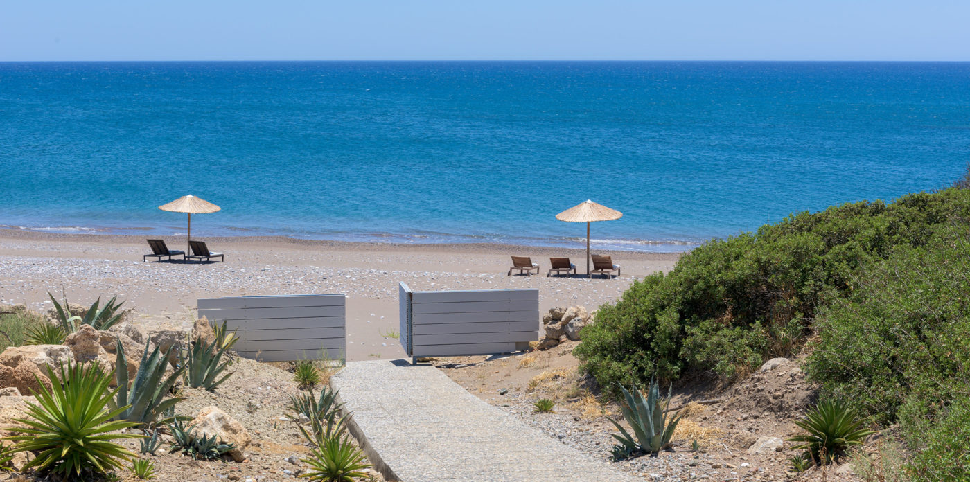 In this private setting, imagine the sea breeze and the golden sun slinking away from your window or the sense of freedom of stepping barefoot out of your room right on the beach…