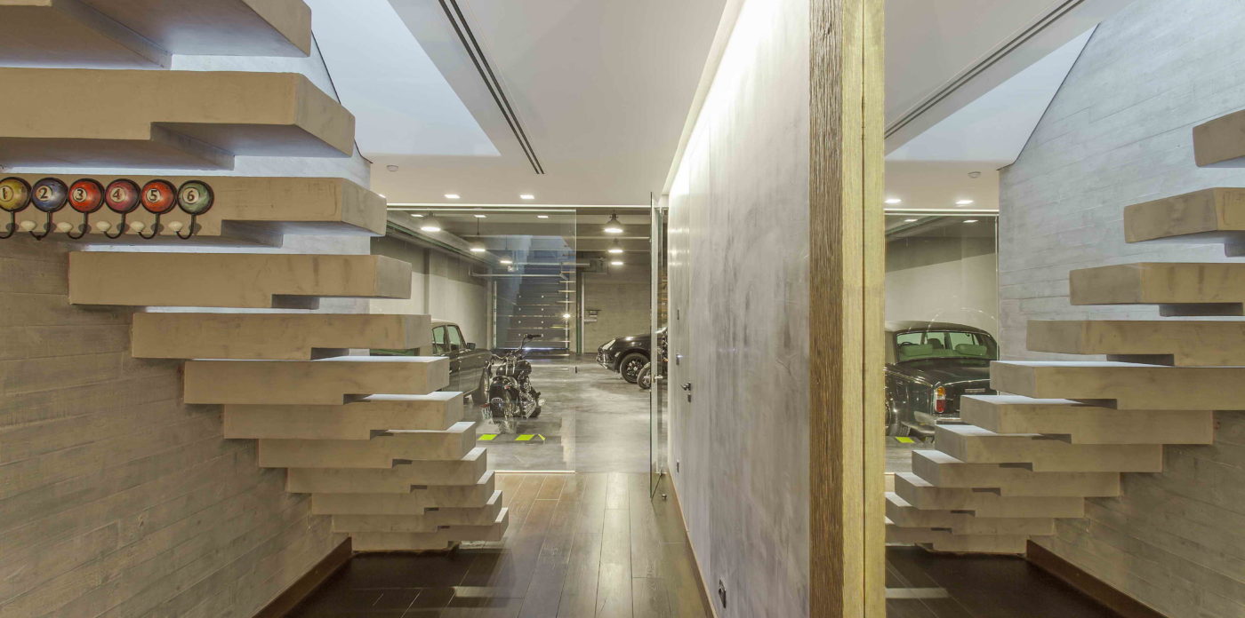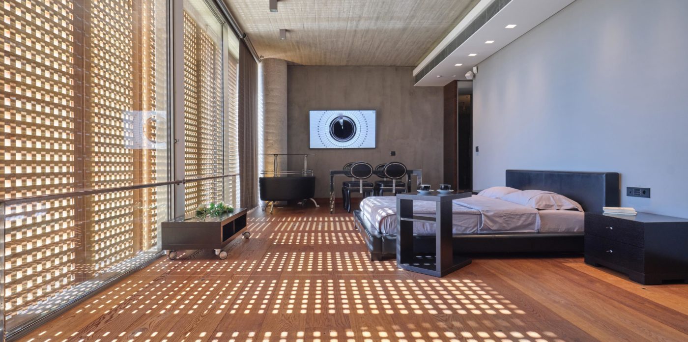 There is a spacious living room and kitchen with an impressive center island. A dedicated study/office area that connects to the ground floor via a concrete staircase and a private entertainment room featuring its own bar, billiards, sauna and separate sitting area come to complete this rare property. Worth mentioning is the glass elevator that connects all levels and the state-of-the art garage.
