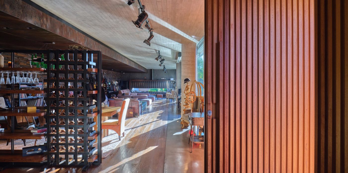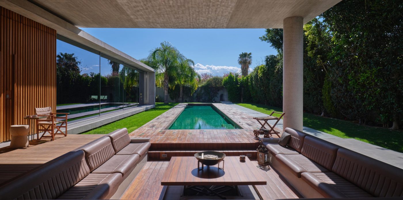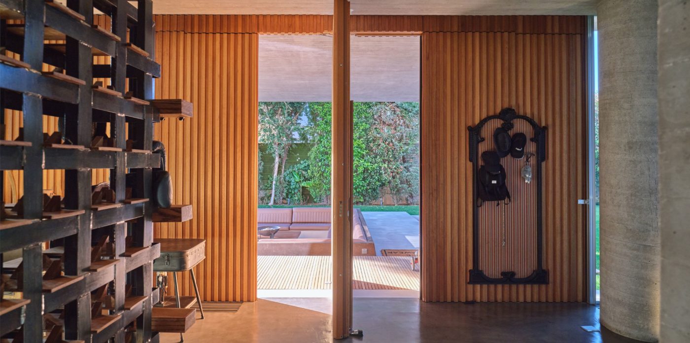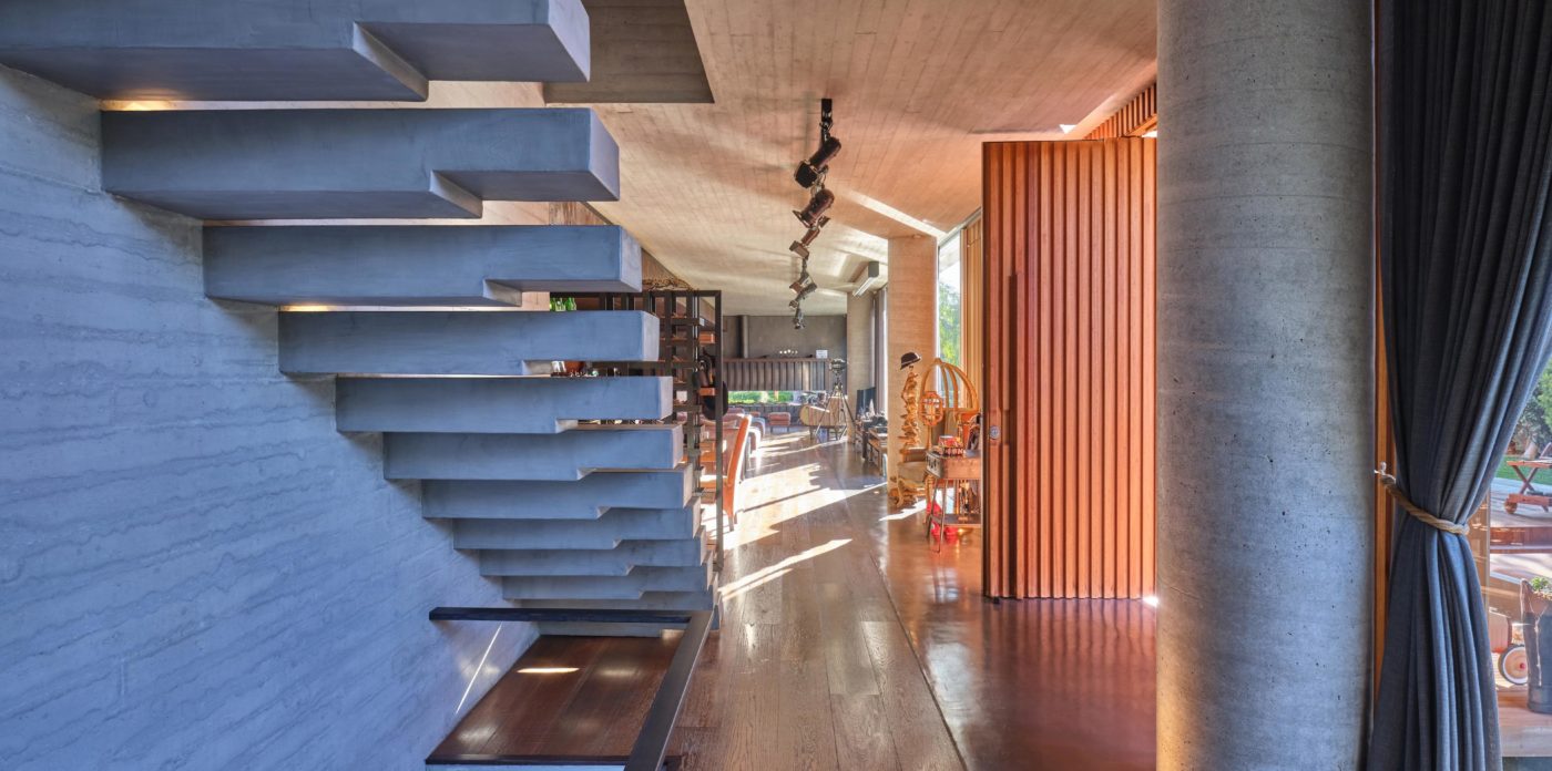 The 1180 sq.m open-plan residence boasts a geometric versatile architecture and is spread over four levels. Its spacious outdoors feature an enormous rectangular pool which perfectly complements the surrounding greenery, dining area, outdoor gym and BBQ.
