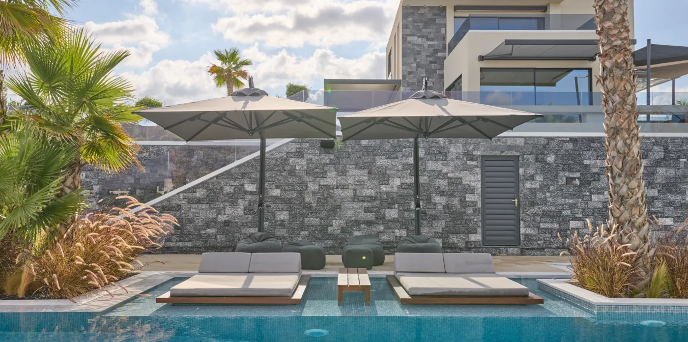 The estate, consisting of two identical villas, which can be rented as one, accommodating up to 14 guests, is the perfect choice for large groups.
