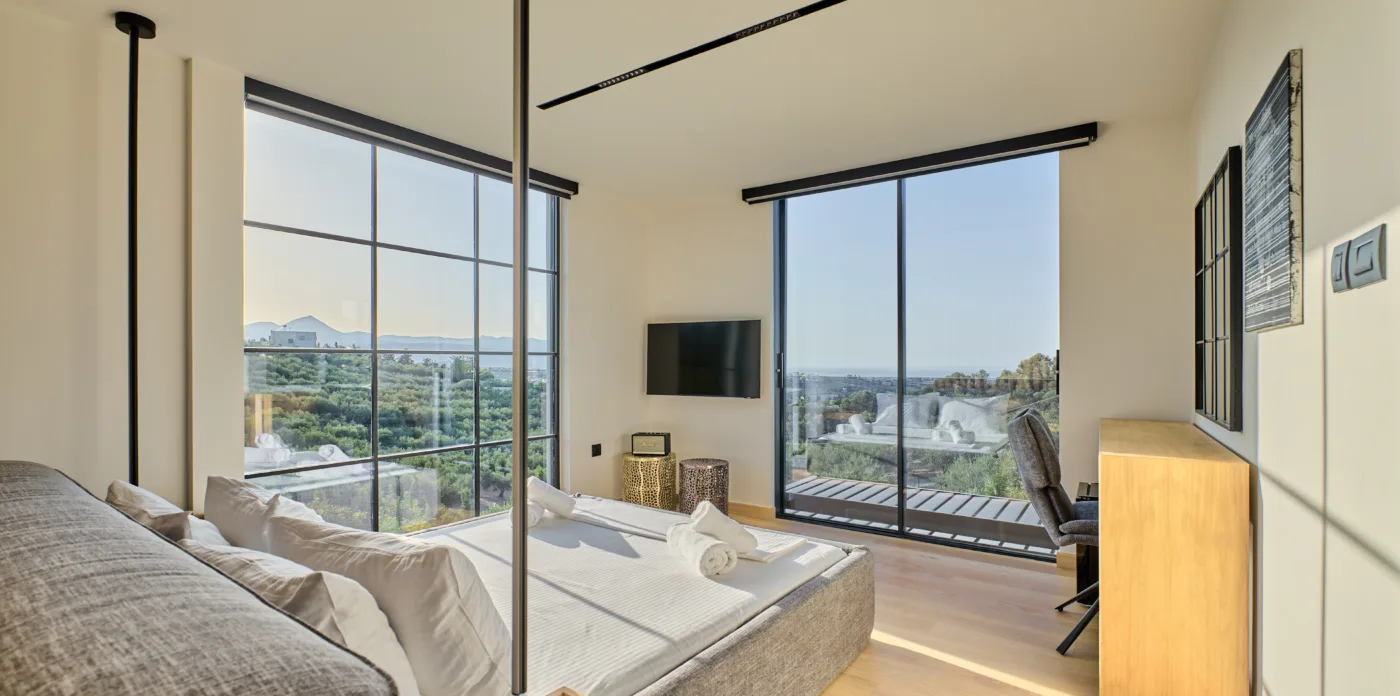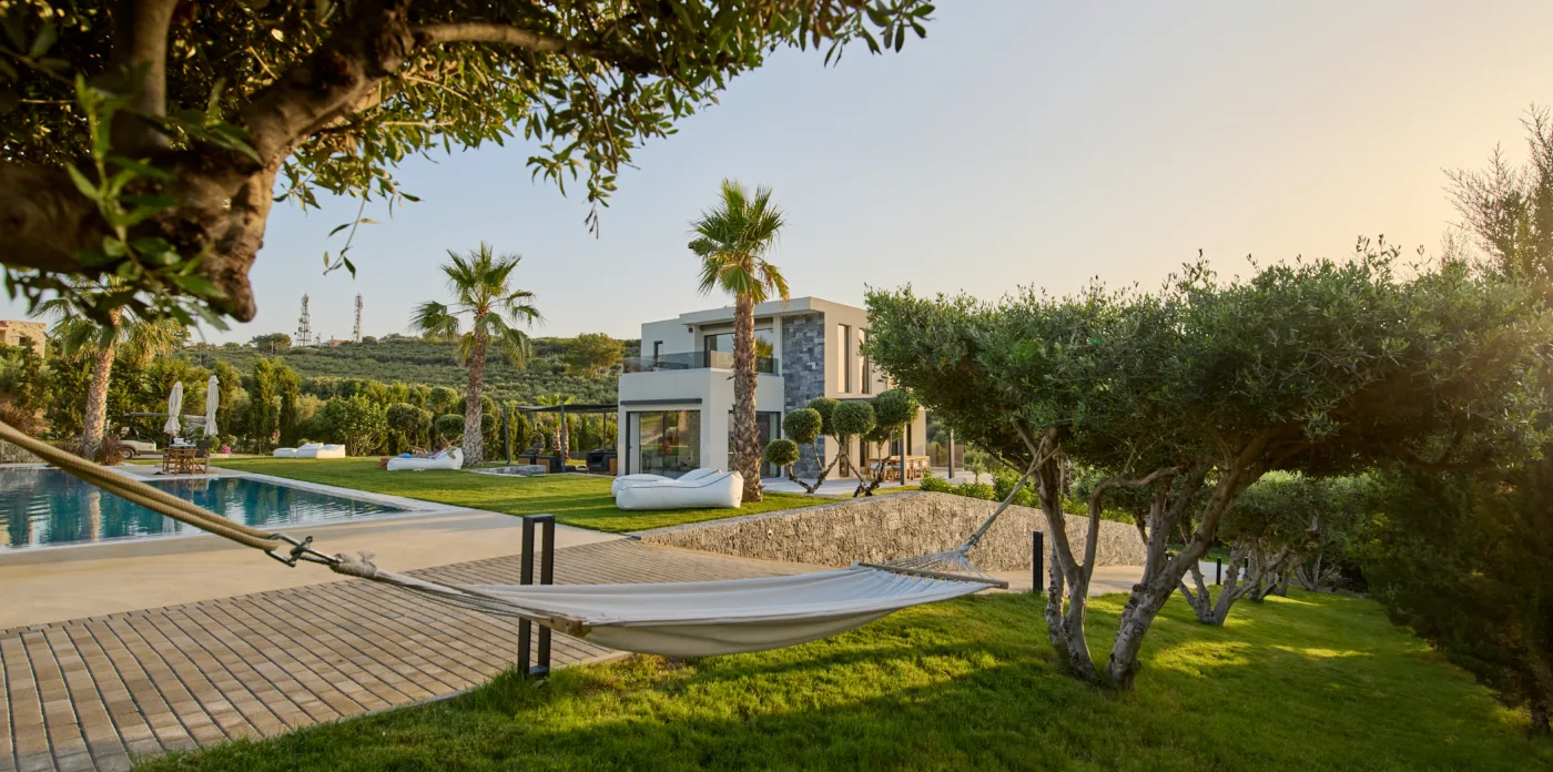 Set amidst a picturesque landscape adorned with olive groves and cypress trees, this brand new estate provides a unique accommodation experience off the beaten track, with panoramic views of the sea and Psiloritis mountains.