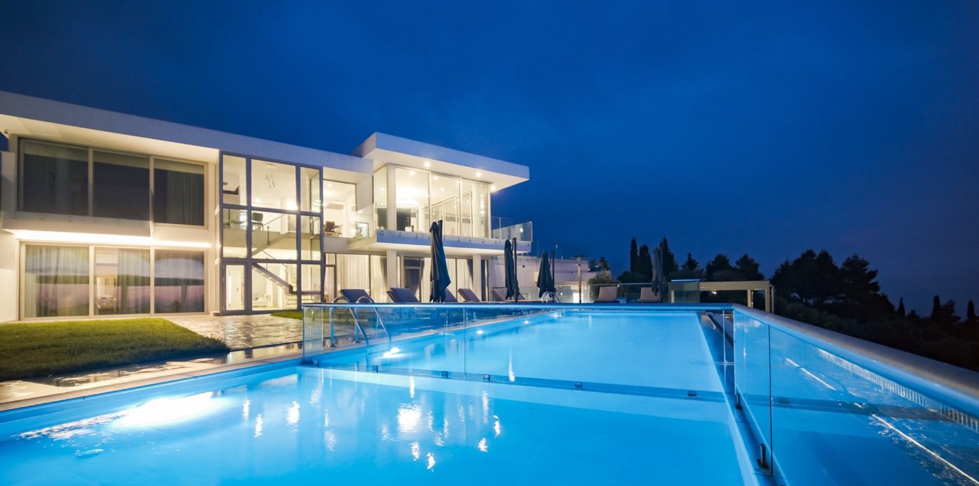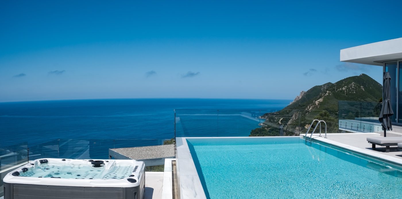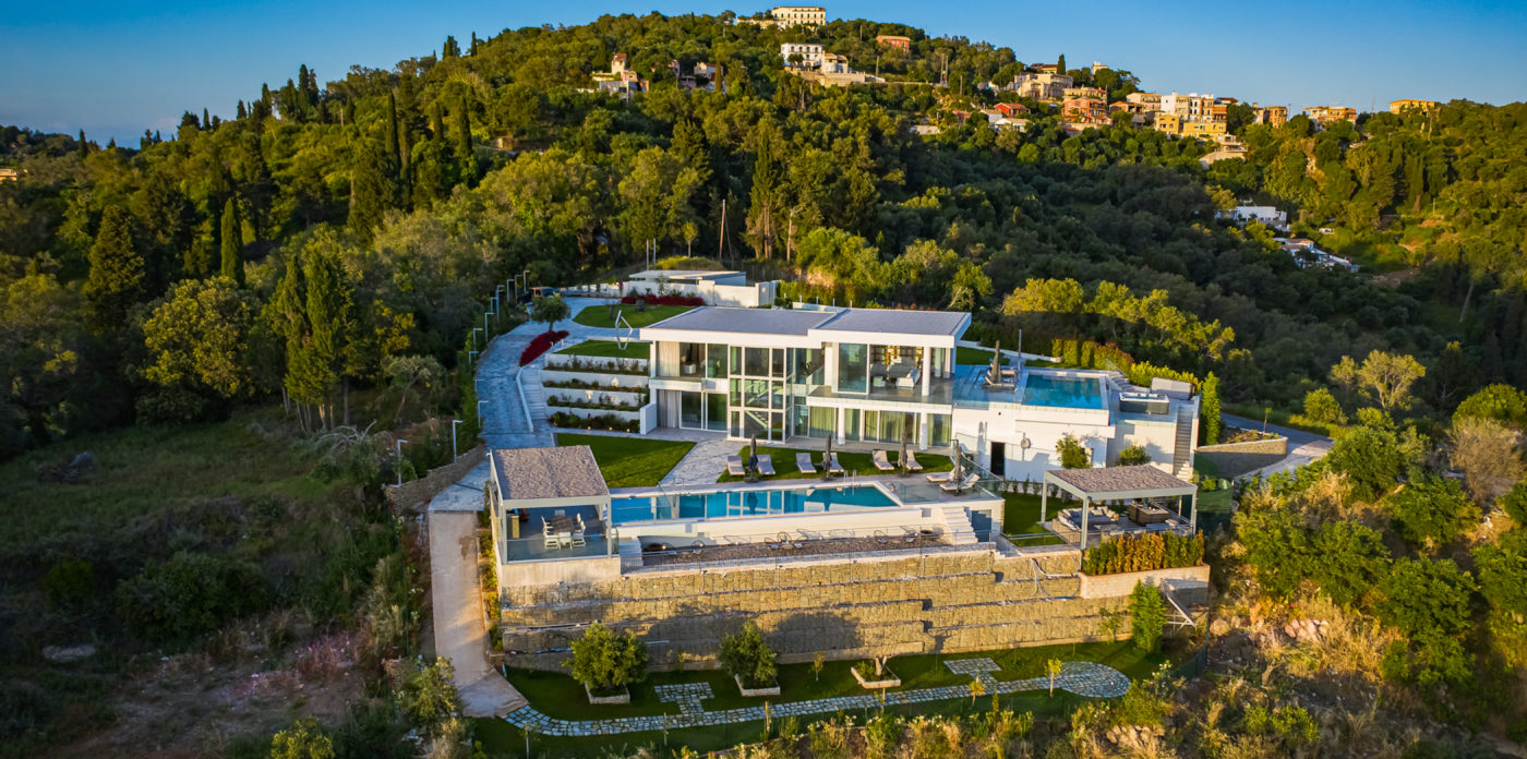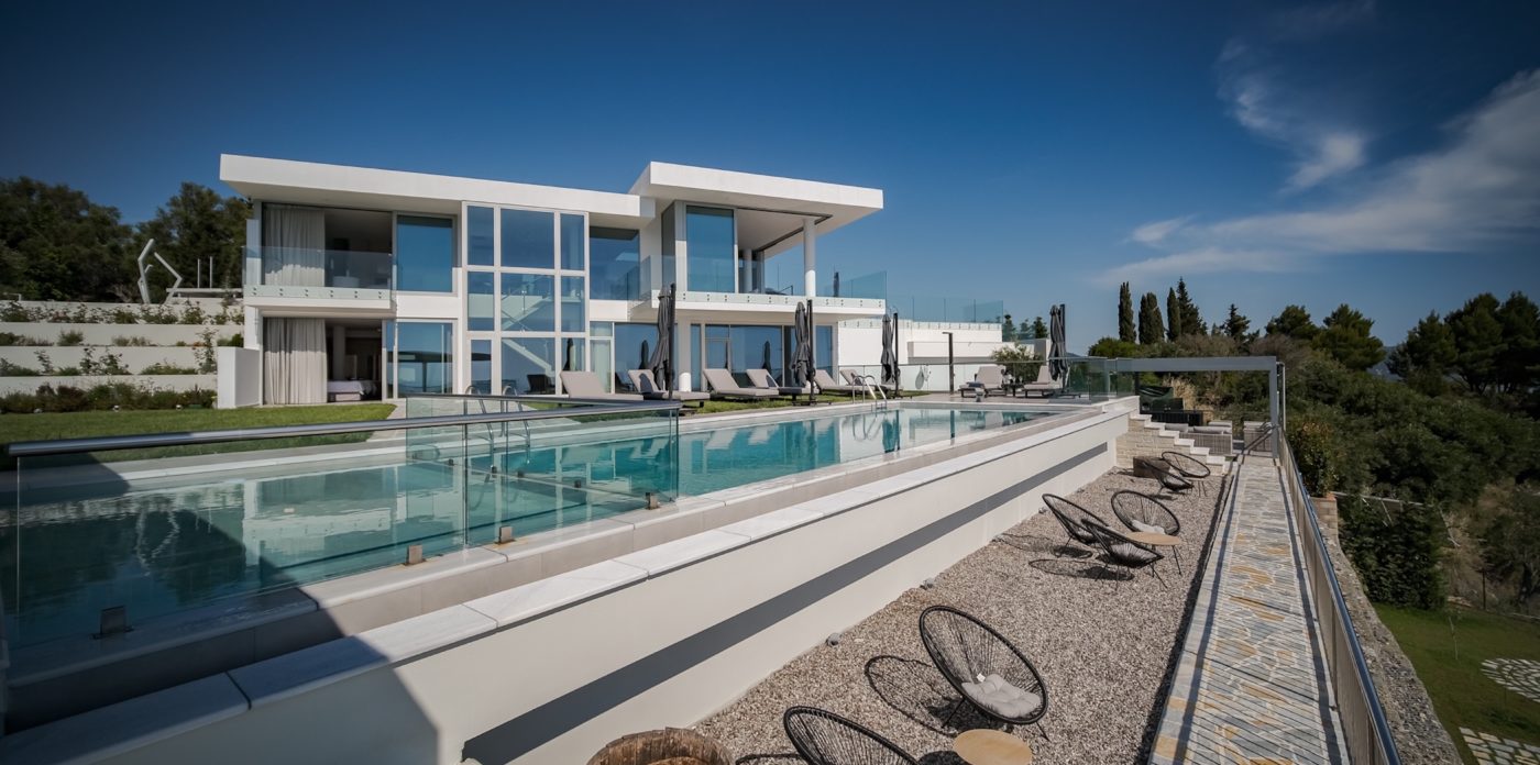 The 430 sq.m Luna enjoys a splendid position in Pelekas Hill boasting spectacular westerly views over the Ionian sea and Glyfada beach. The brand new villa offers amazing sunsets that will take your breath away and has been designed with large dining and seating areas both inside and outside.