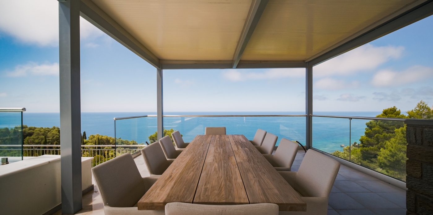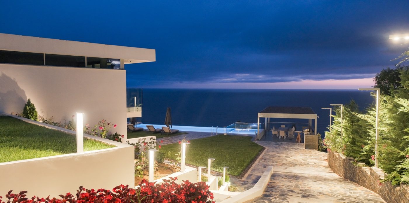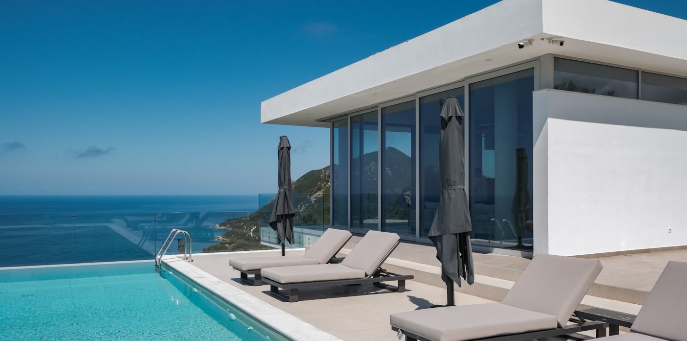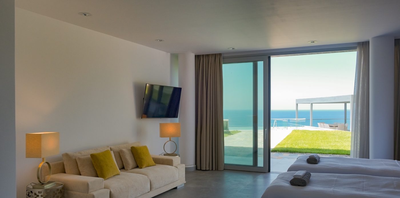 The 430 sq.m Luna enjoys a splendid position in Pelekas Hill boasting spectacular westerly views over the Ionian sea and Glyfada beach. The brand new villa offers amazing sunsets that will take your breath away and has been designed with large dining and seating areas both inside and outside.