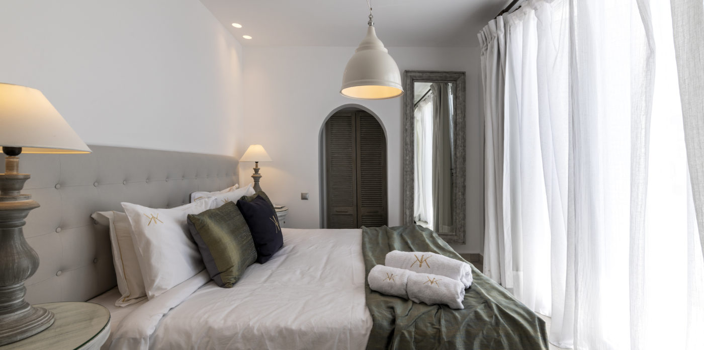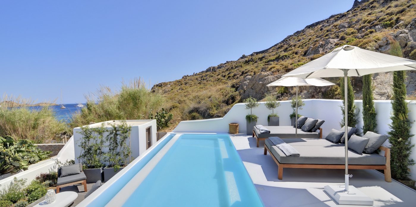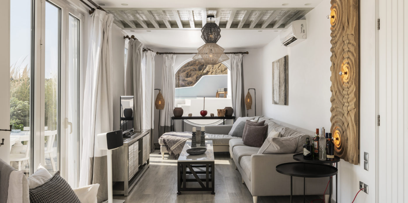 This 4-bedroom private luxury villa of 150 sq.m, features an additional 100 sq.m outdoor area with a private pool, garden and a massive terrace. Villa guests can pamper themselves with panoramic views over Psarou bay and enjoy the oasis of the eternal blue sea, framed by the Cycladic light, in a most desirable setting.