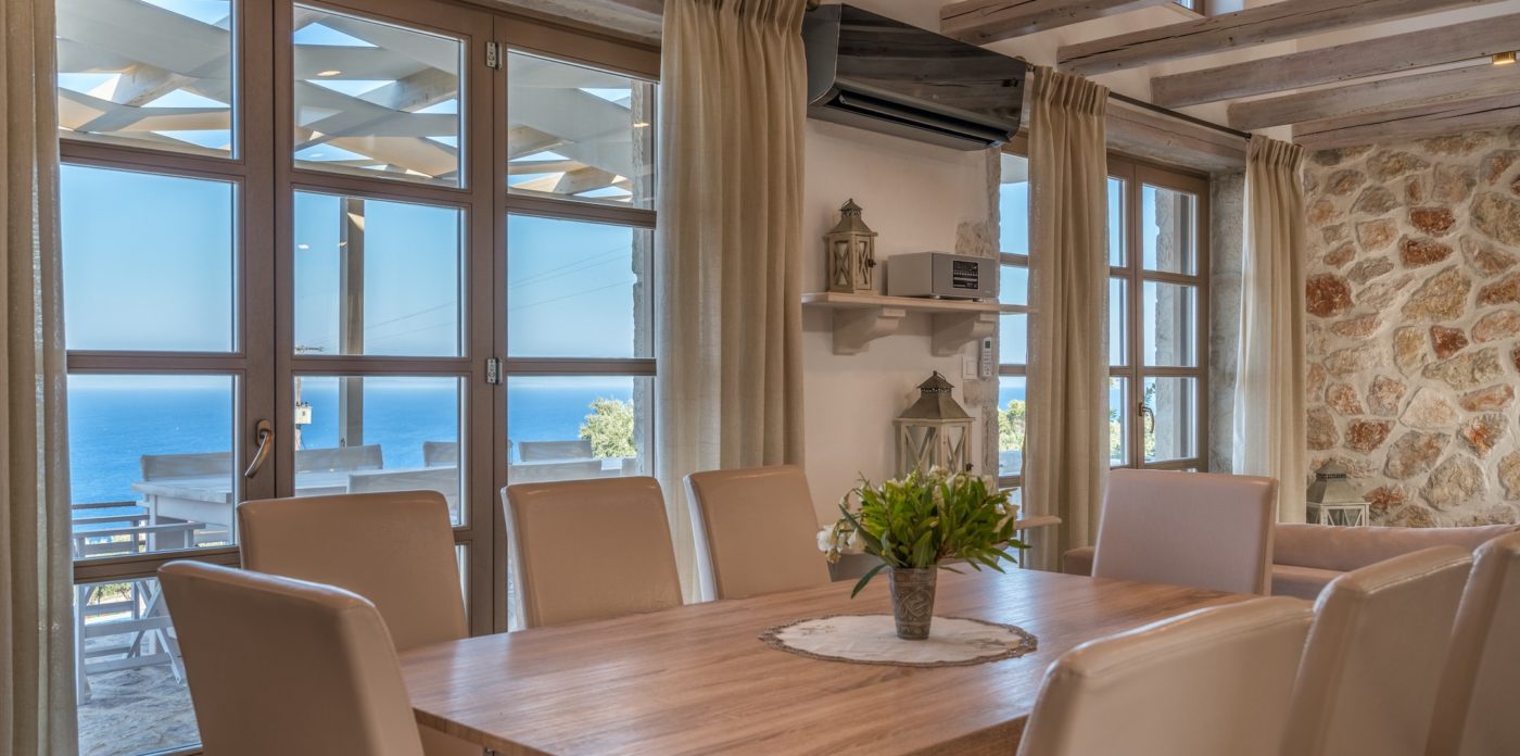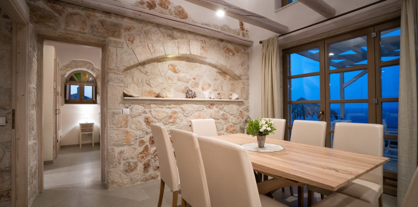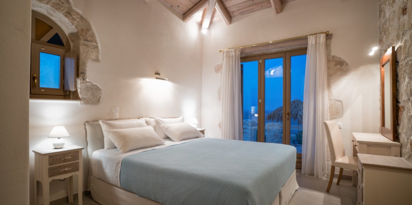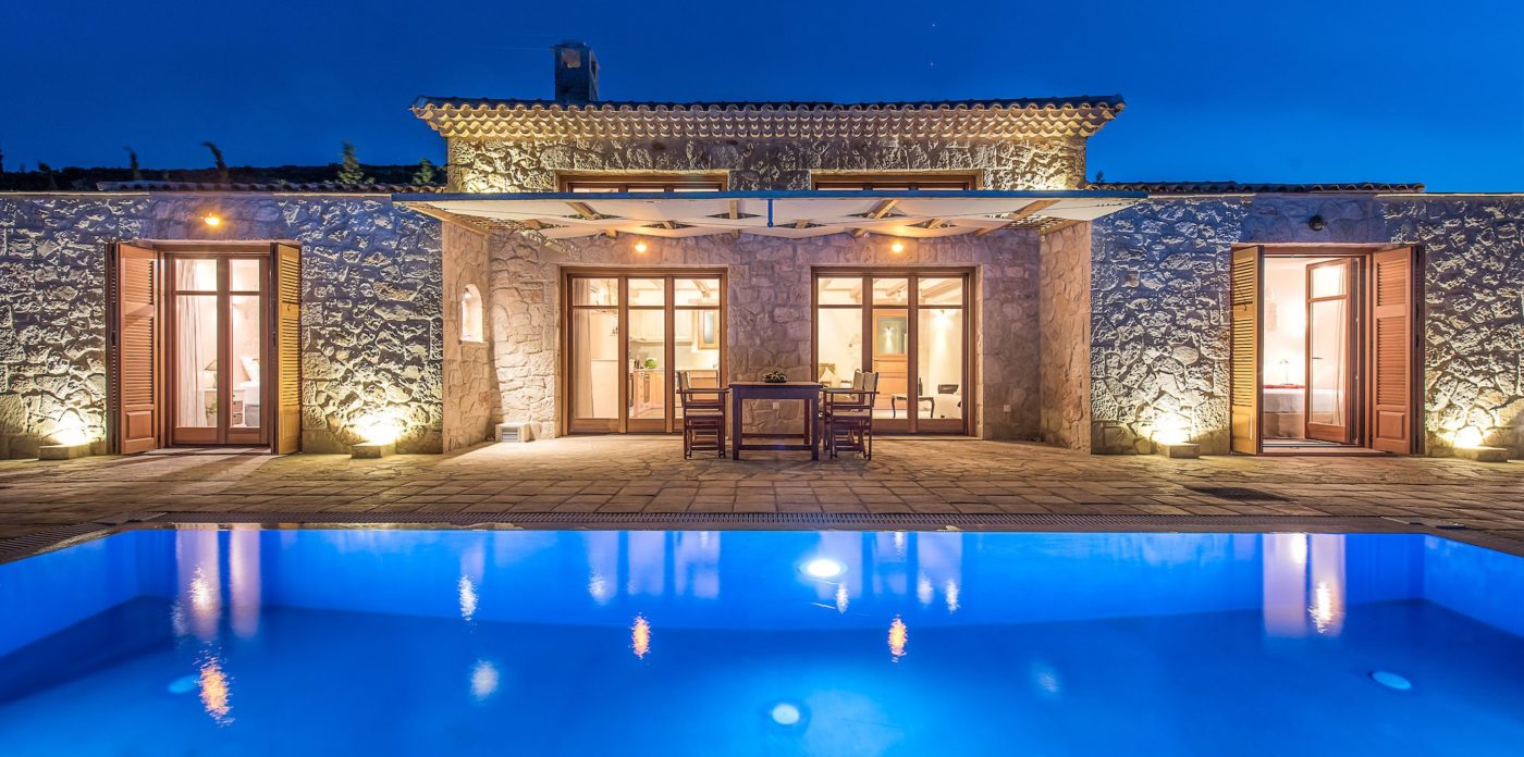 Odysseus Estate is a beautiful estate comprising of 6 villas across 42,000 sqm. Each villa showcases distinctive architectural features such as local stone walls, wood beam ceilings and floor-to-ceiling windows, with neutral decor inside providing a serene atmosphere. All come with a combination of bedrooms and en suites, alongside a full-equipped kitchen, private pool and patio area.