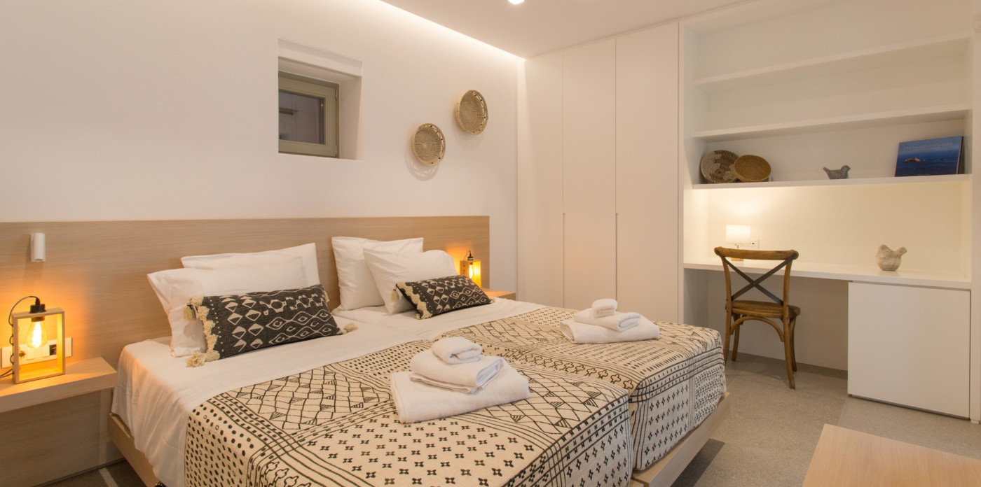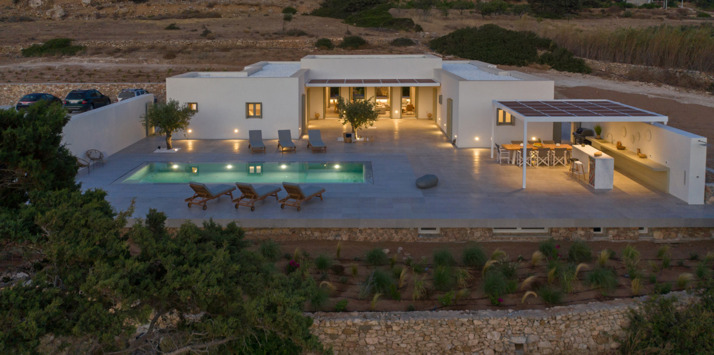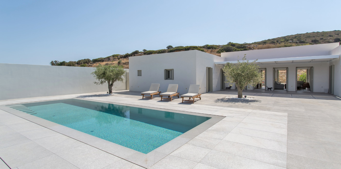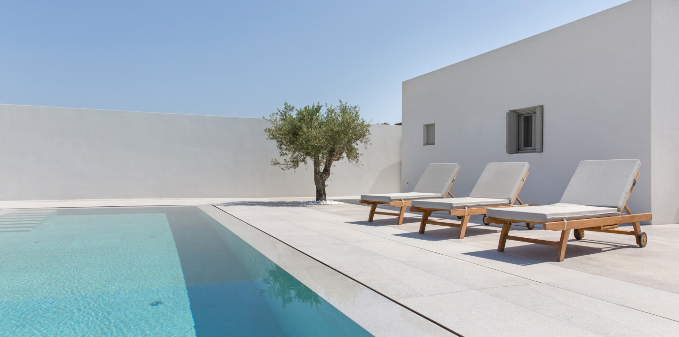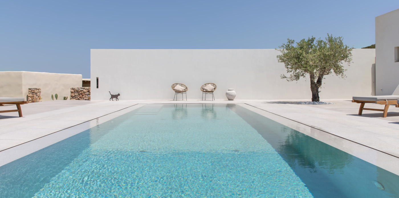 With 5 bedrooms, Olea has a relaxed feel. Indoors, fresh modern furnishings fuse with stylish, comfortable living spaces.Windows to either side bring in plenty of light and offer views of the Parian landscape and the front olive grove.The expansive outdoor area offers complete privacy.Here a large sundeck and sunbeds surround a lovely turquoise pool where you can enjoy endless dips in its refreshing waters.Two ancient olive trees draw in that Mediterranean element.