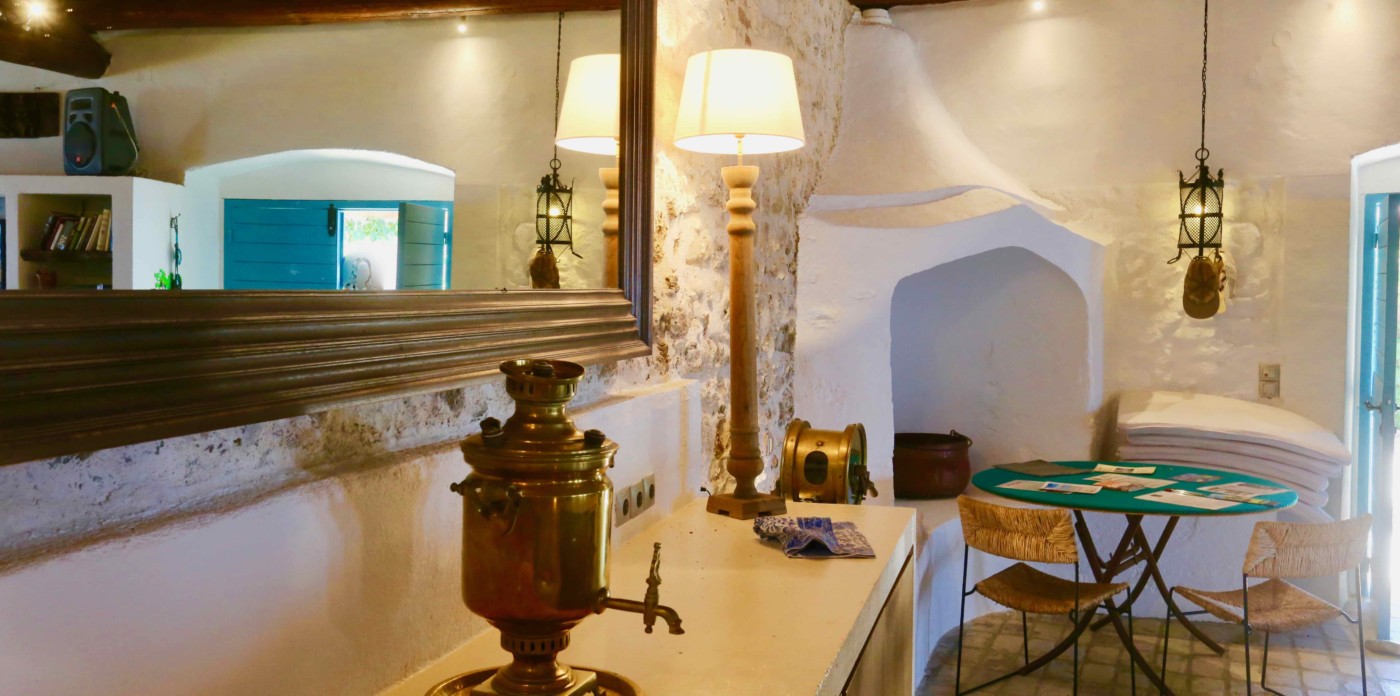 From the veranda, the gentle lapping sounds and beautiful vistas of the sea will be the backdrop for your days. Have your delicious morning breakfasts on the splendid ancient marble table, centre-piece of the veranda. Then, relax or read in the chaises longues till evening when you’ll witness the breath-taking sunset.