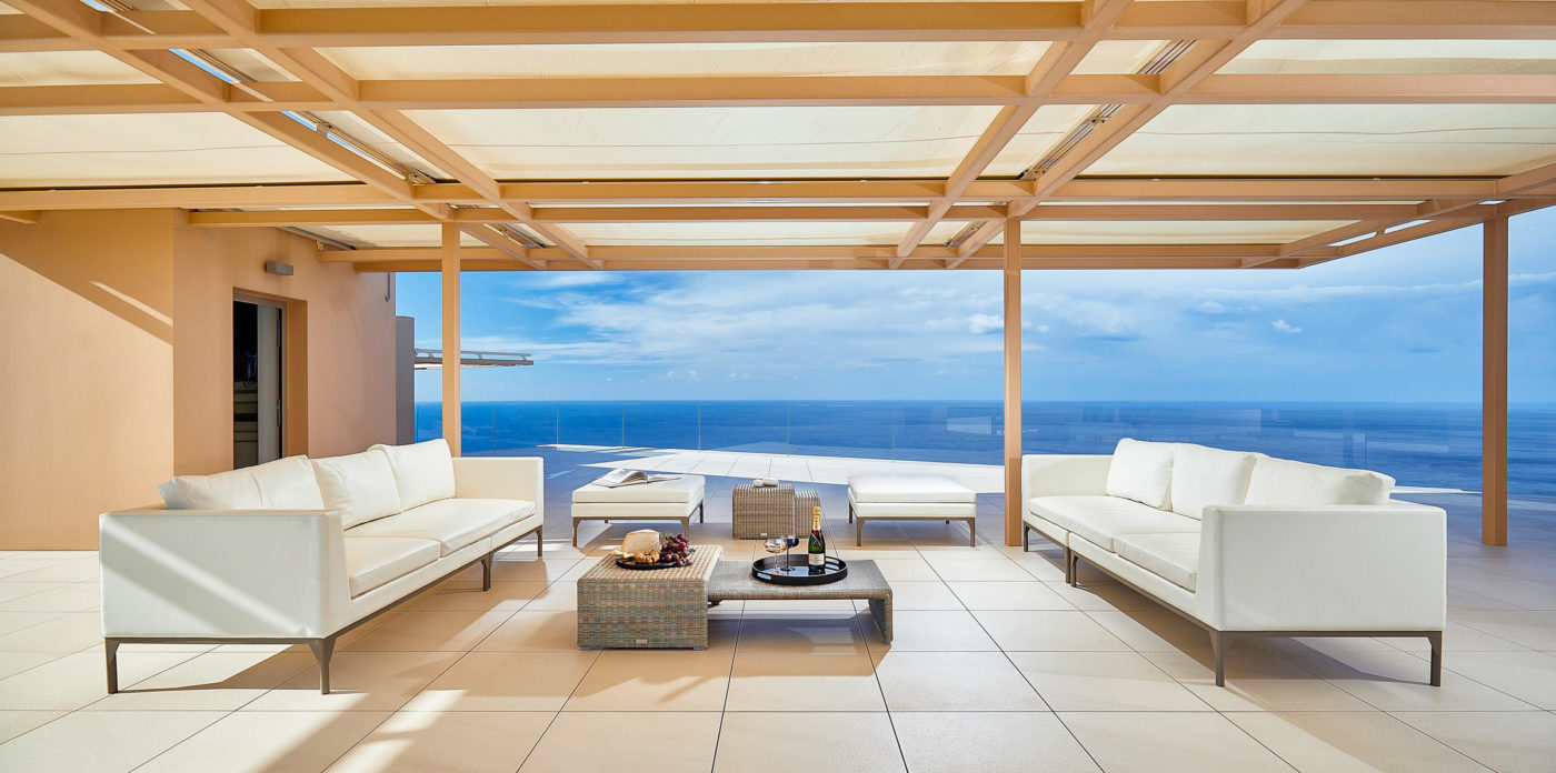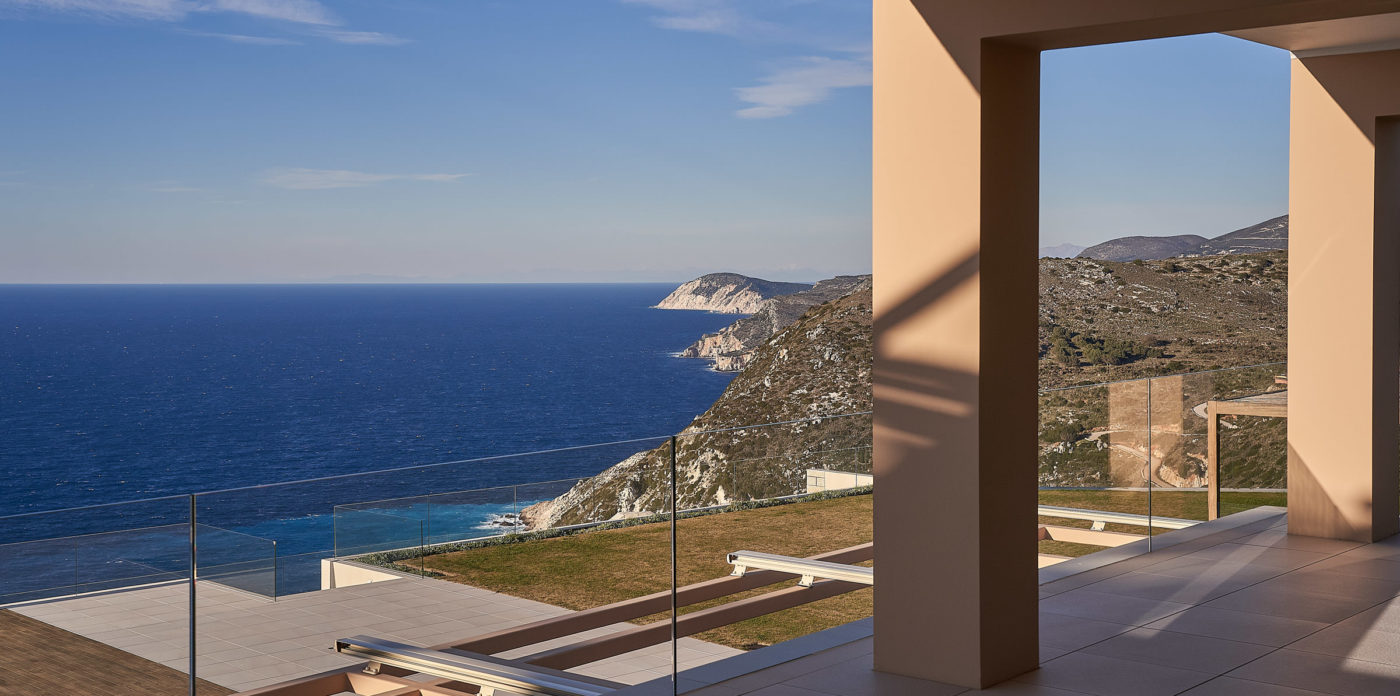 Located directly above Petani Beach the villa looks out upon the sapphire blue Ioanian sea and precipitous mountains behind. A unique area of beauty with protected forests and unspoilt beaches harmoniously blending with historical monastery ruins and nature.