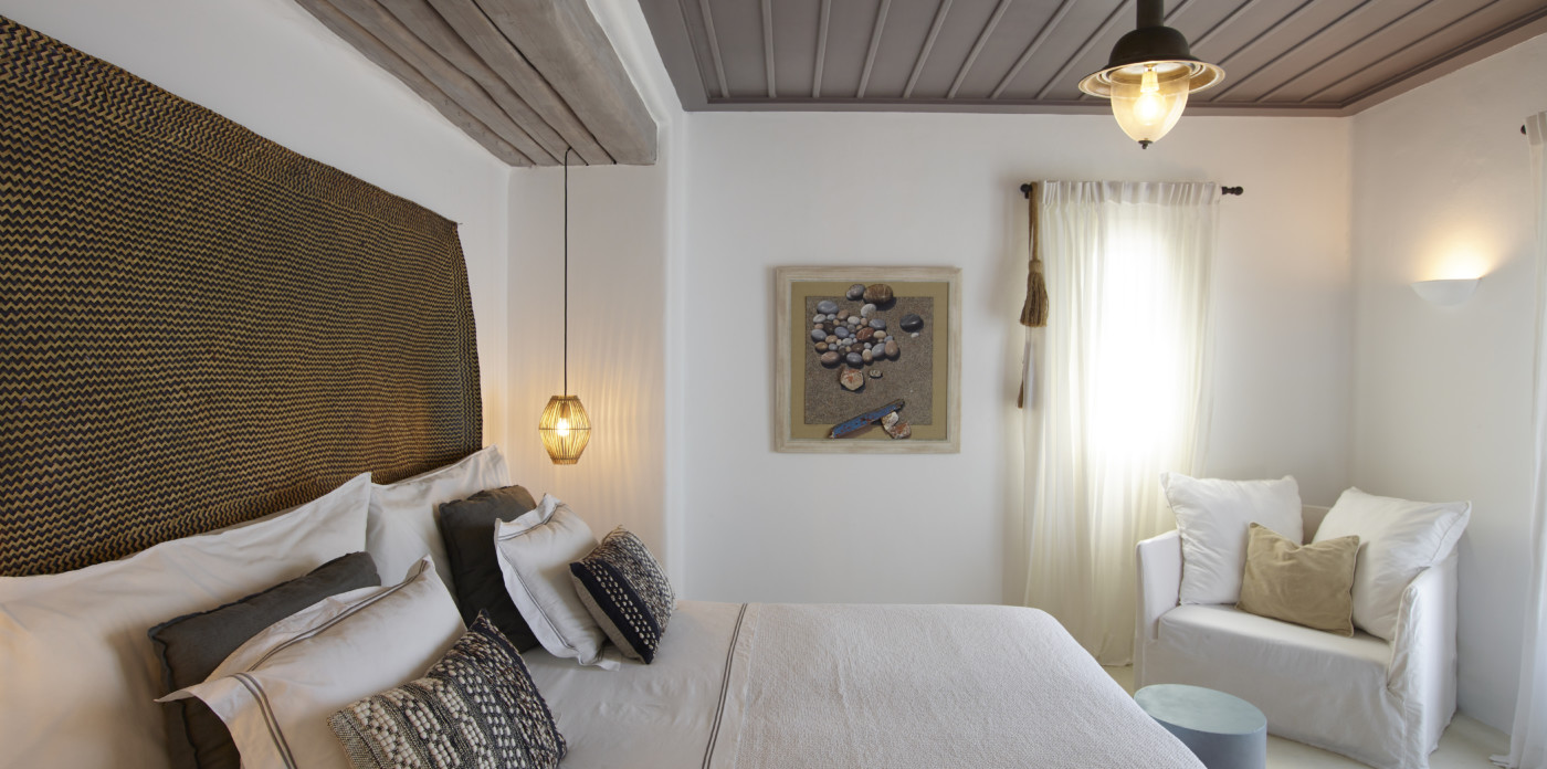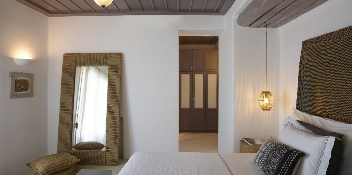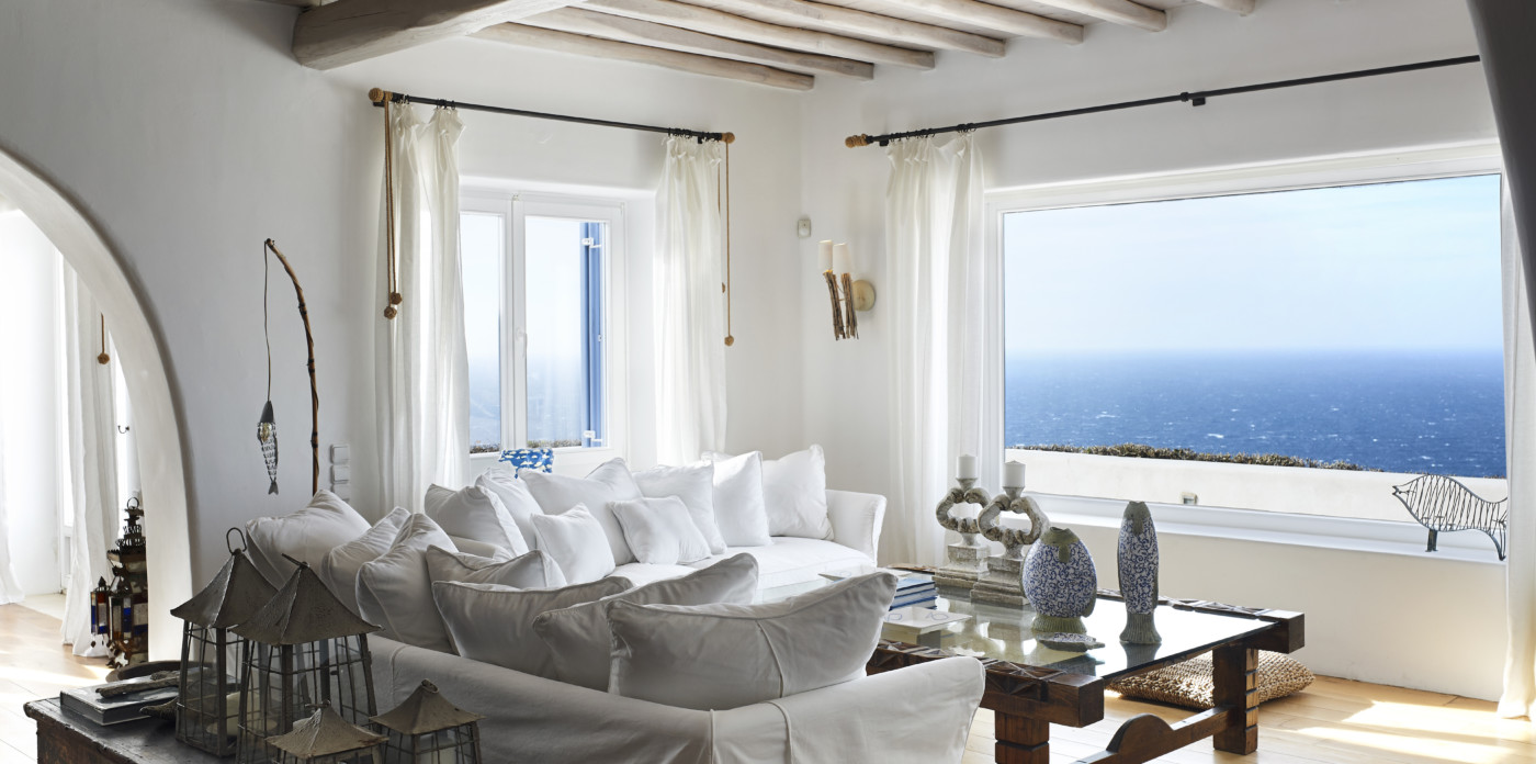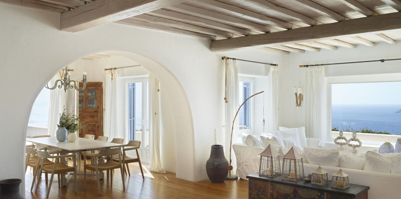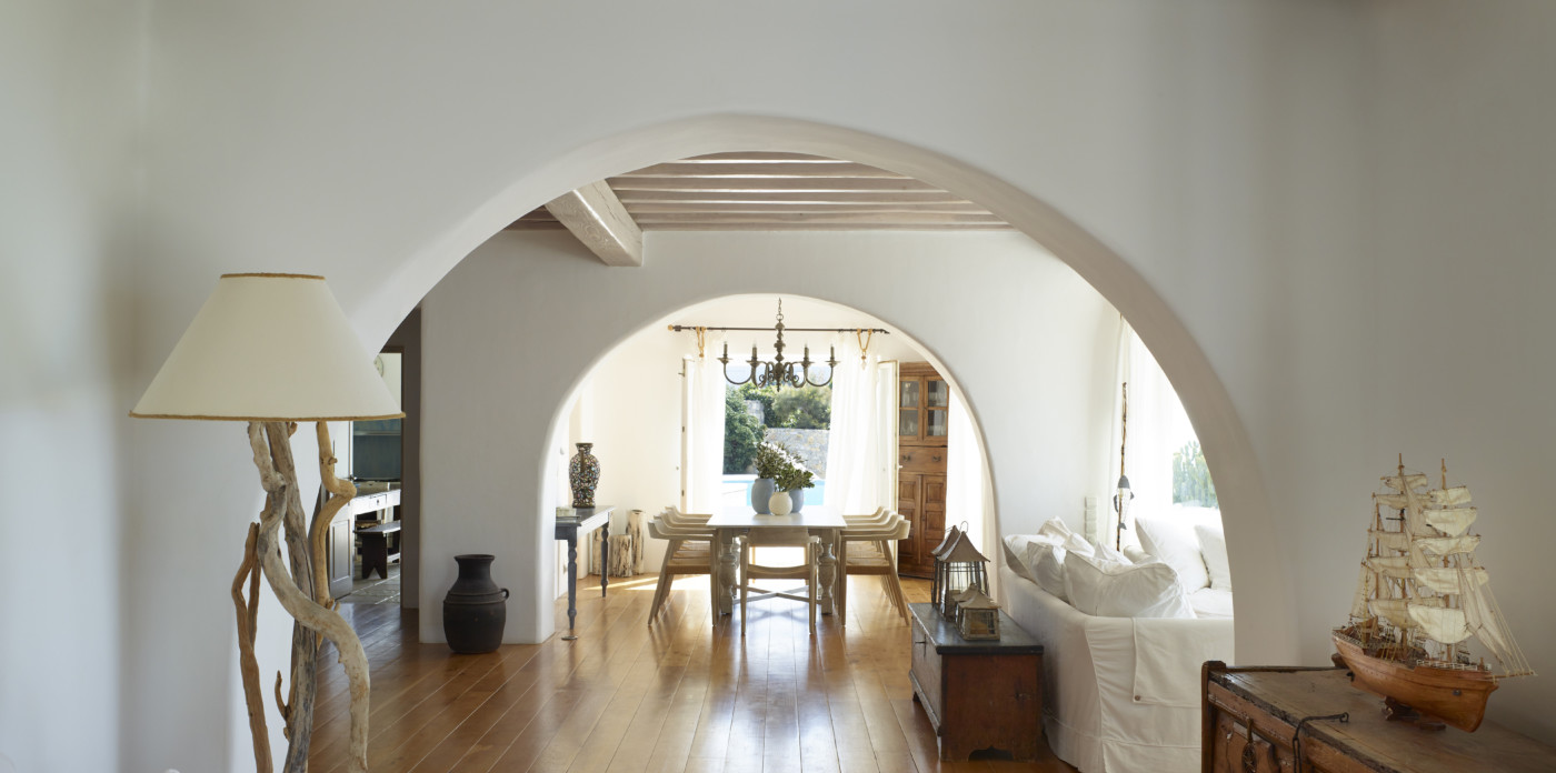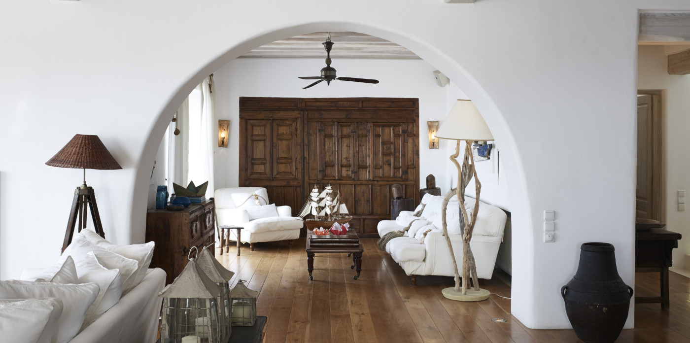 The traditional 700 sq.m property boasts breathtaking views over the Aegean Sea and enjoys the privileged location you seek in the south west part of Mykonos. The distinguished home, offers unique island elegance, and it is obvious at first sight that it is filled with the loving devotion and refined taste of a bon-viveur family. Its handpicked furniture are made of quality wood and premium fabrics and have been chosen to carefully transform all areas to earthy and welcoming spaces that feel like home. Art and antiques refine the ambience and underline an authentic personality.