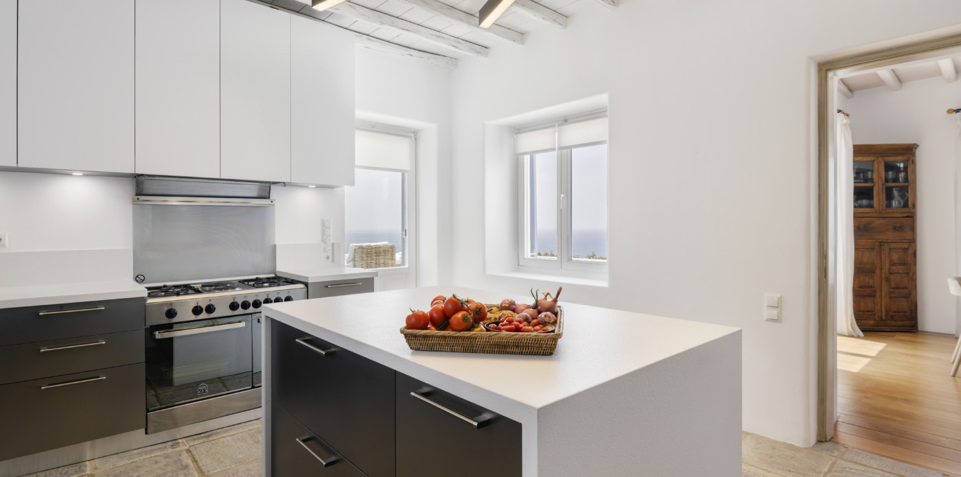 Renée consists of the main residence and a modern brand new independent guesthouse. The property is set to entertain an extended family with friends in diversified living spaces, which are exceptionally well maintained and make sure that privacy, comfort and entertainment are at their prime. You will be fully enchanted by the generously cushioned sitting areas framed by perfect sea-views and warmed by wonderful wooden floors.