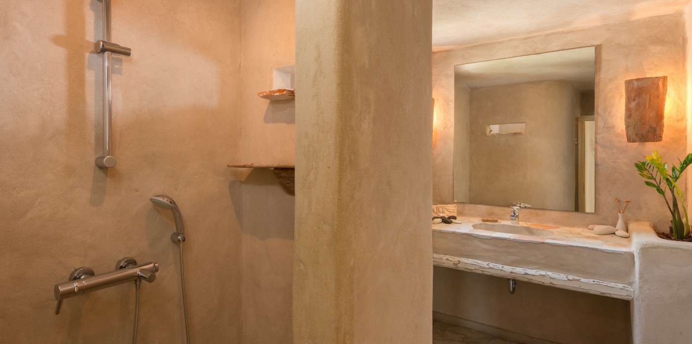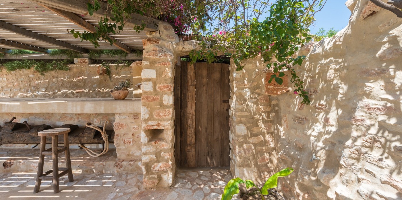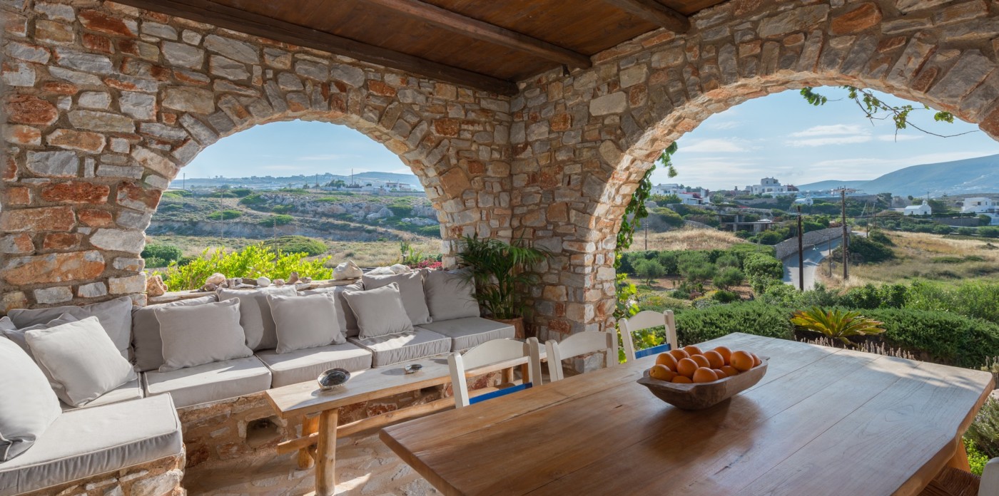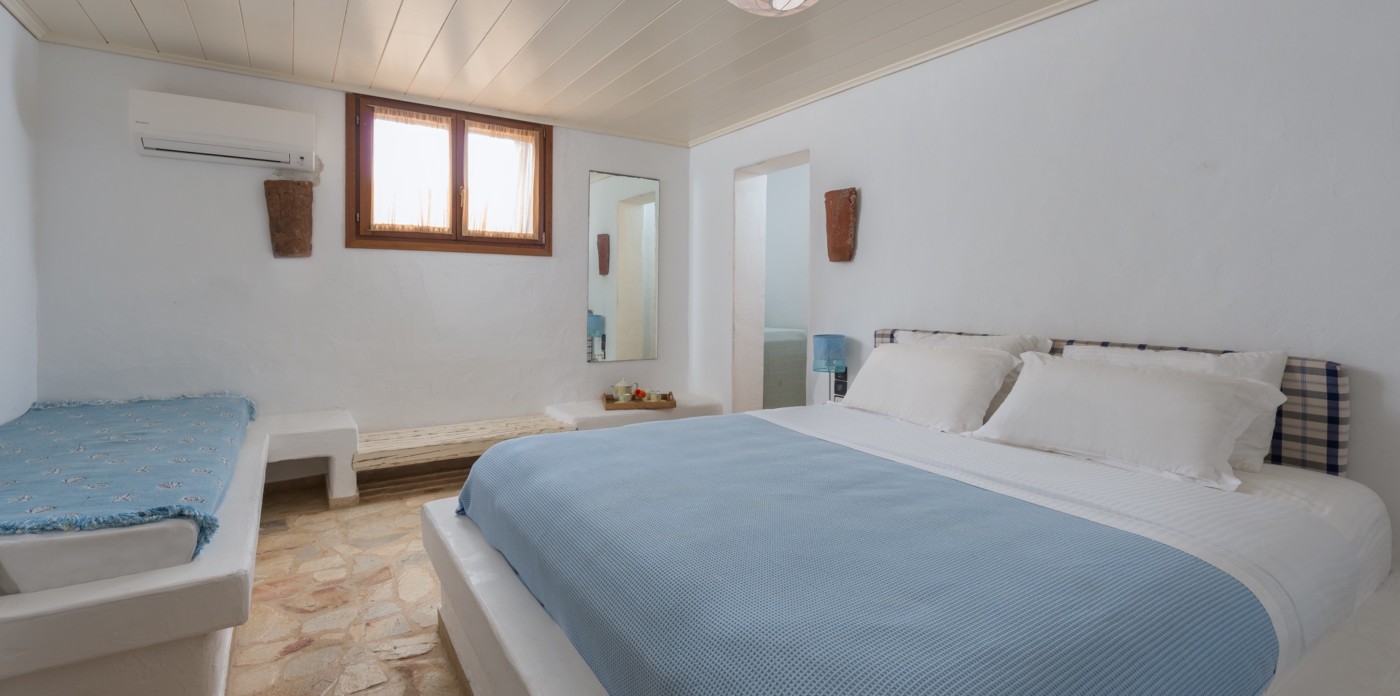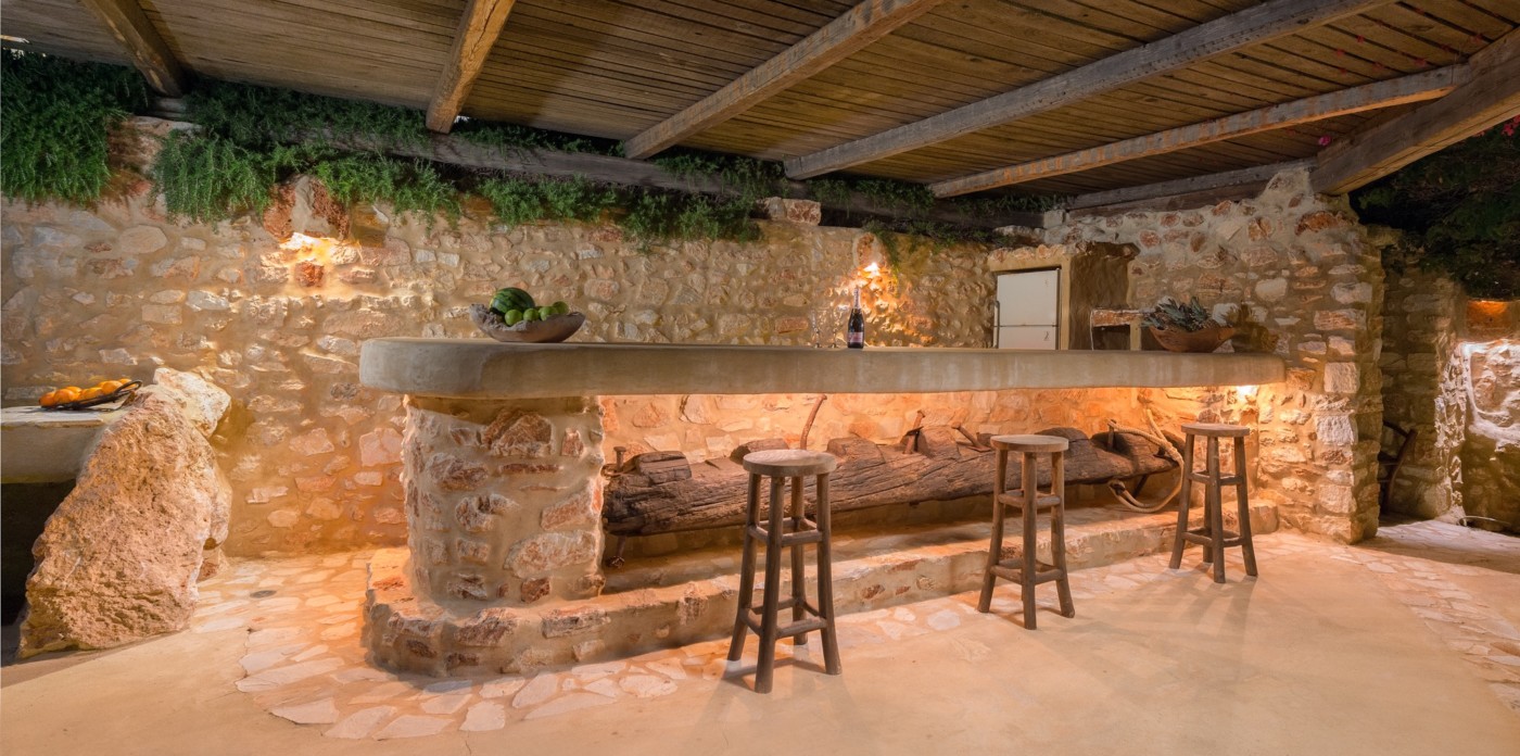 Its interior features stunning displays of fine stone and wooden finishes providing an exquisite character to the traditional Cycladic decoration.